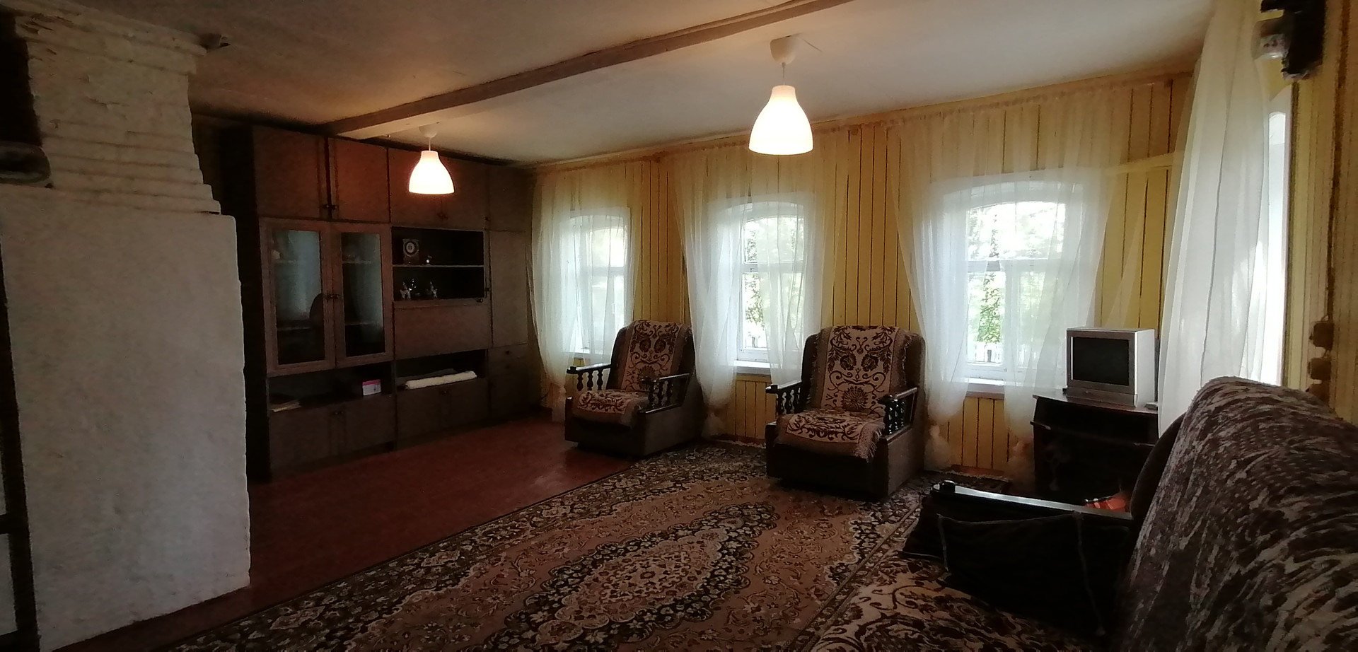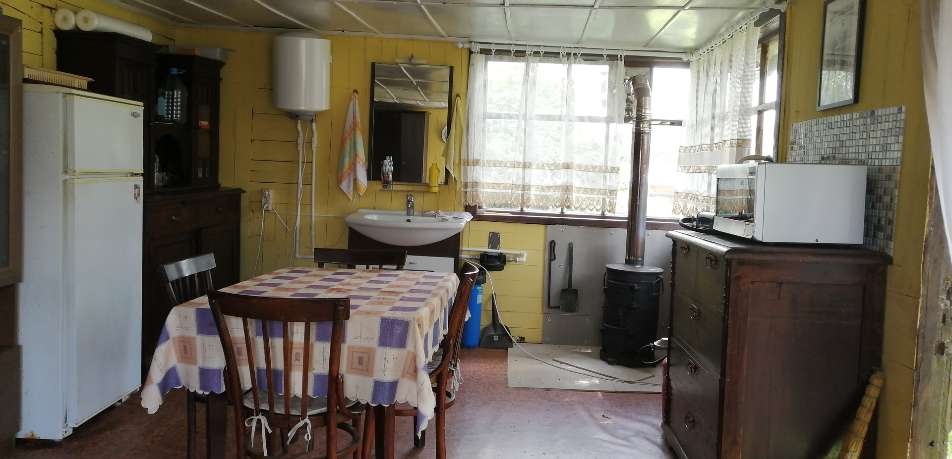 Дом деревянный одноэтажный с чердаком, площадь 31,3 кв.м,(по ЕГРН). Фактически 73,7 кв.м. Фундамент бетонный. Дом реставрирован из старого деревенского дома. Кухня- веранда 23,5 кв.м, большая жилая комната 31,3 кв.м. Подсобное помещение 18,9 кв.м. Дом больше дачный, но можно жить и зимой. Санузел и душ на улице кирпичный, современный. Вся мебель и бытовая техника в подарок.