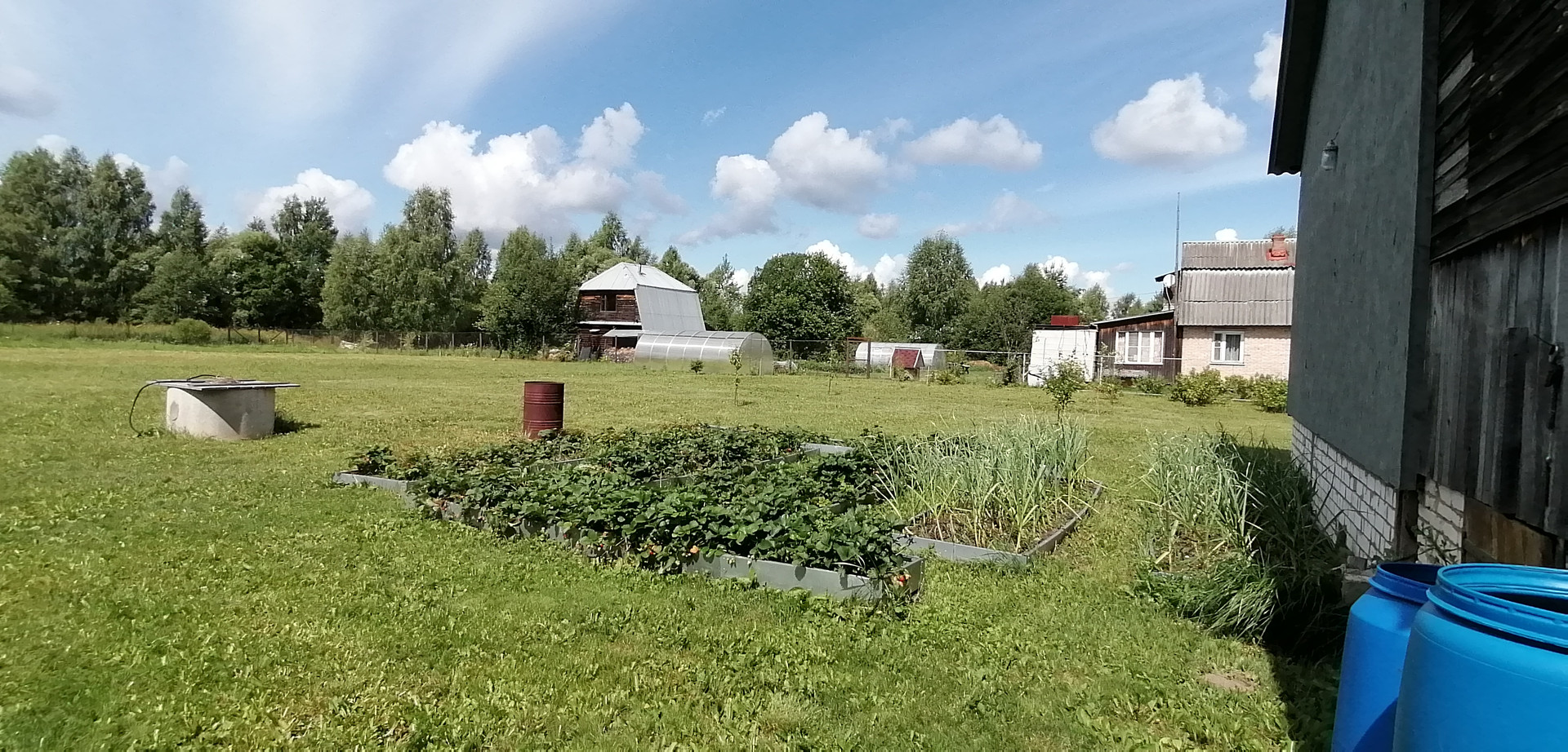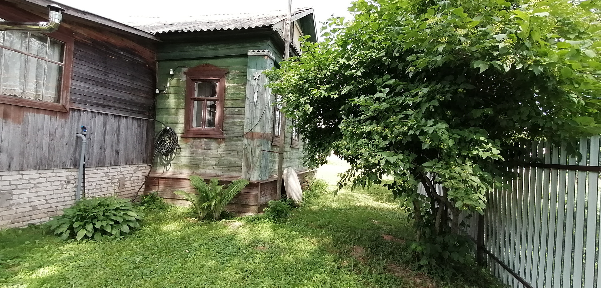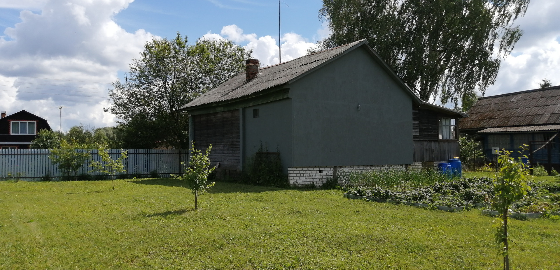 На участке расположены: Жилой дом, Баня с пристроенным гаражом, теплица, два колодца, туалет с душем, плодово - ягодные насаждения, газон, огород. Участок огорожен хорошим забором. На участок два заезда – двое ворот.