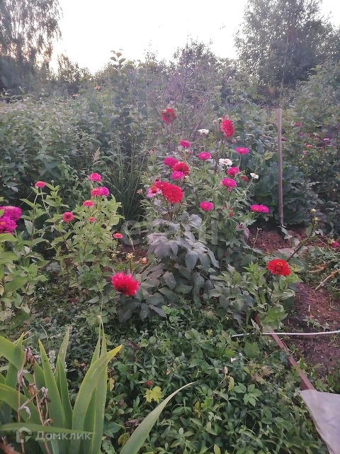 Участок обработан. Имеется многолетний плодоносящий сад, огород с теплицей, кусты. Всё растёт, цветёт и даёт обильный урожай.