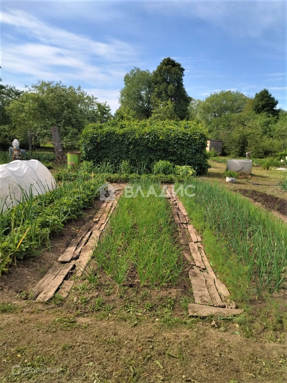 Много садовых и декоративных насаждений. Плодородная земля позволяет собирать богатые урожаи овощей и фруктов!