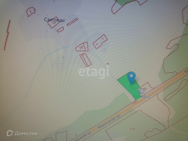 Участок граничит с АЗС есть трансформаторная будка. Половина участка разработана- завезен песок, вторая половина лесная полоса. В 100 м есть автобусные остановки.