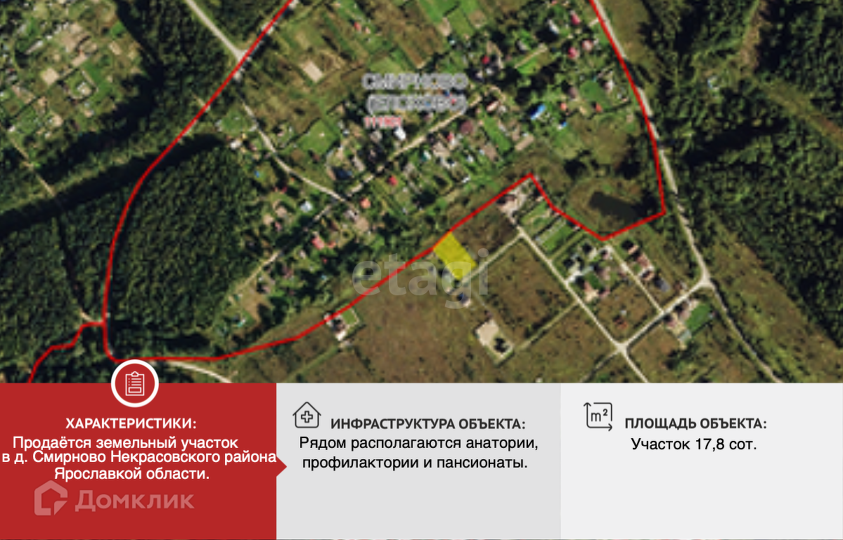 Продаётся прекрасный земельный участок правильной прямоугольной формы в новом коттеджном поселке, который располагается вблизи деревни Смирново Некрасовского района Ярославкой области. Посёлок по периметру огорожен, вокруг ухоженная территория, дороги отсыпаны щёбнем. Много уже построенных жилых домов. Земля предназначена для индивидуального жилого строительства. Рядом река Солоница.
