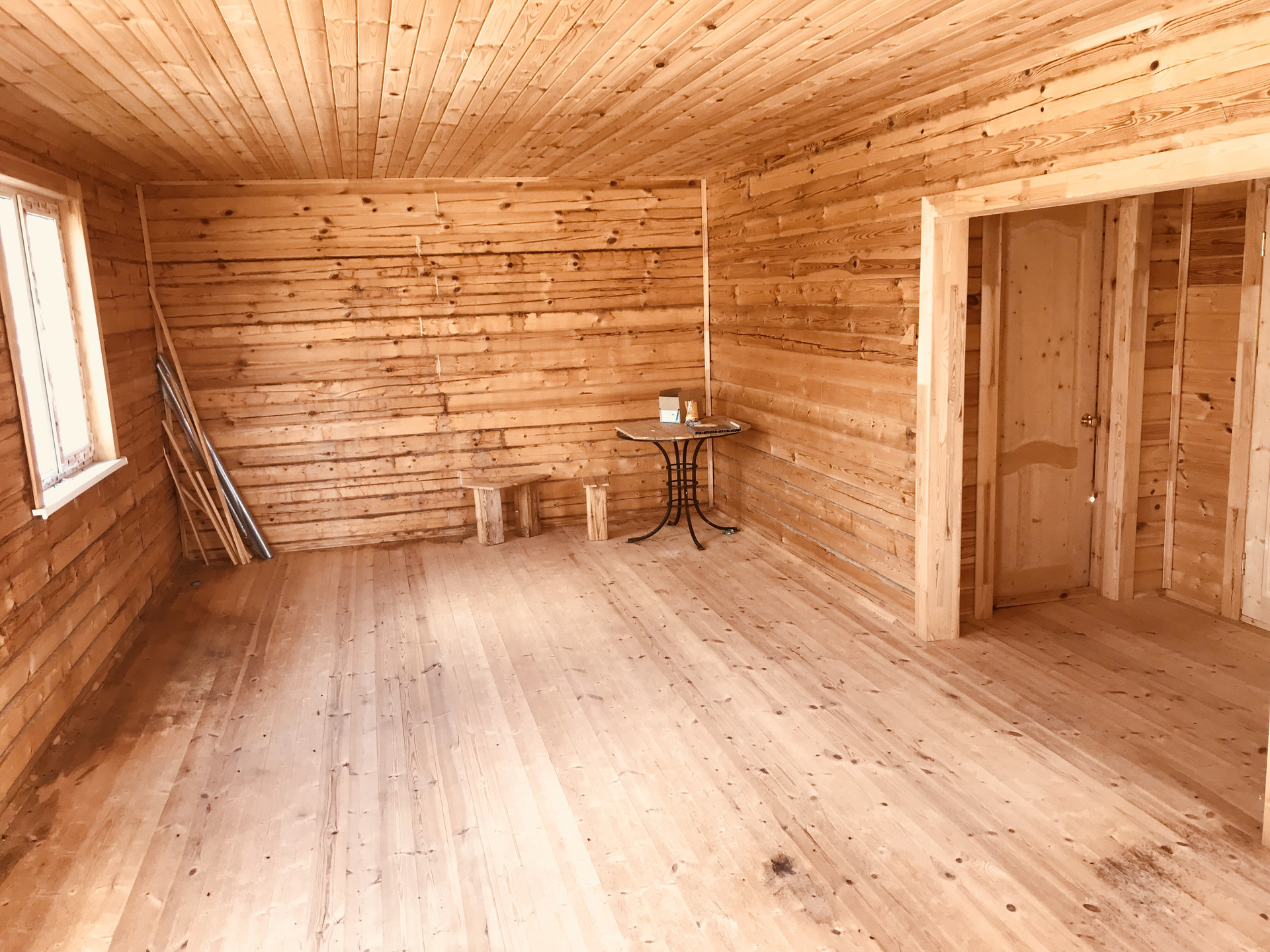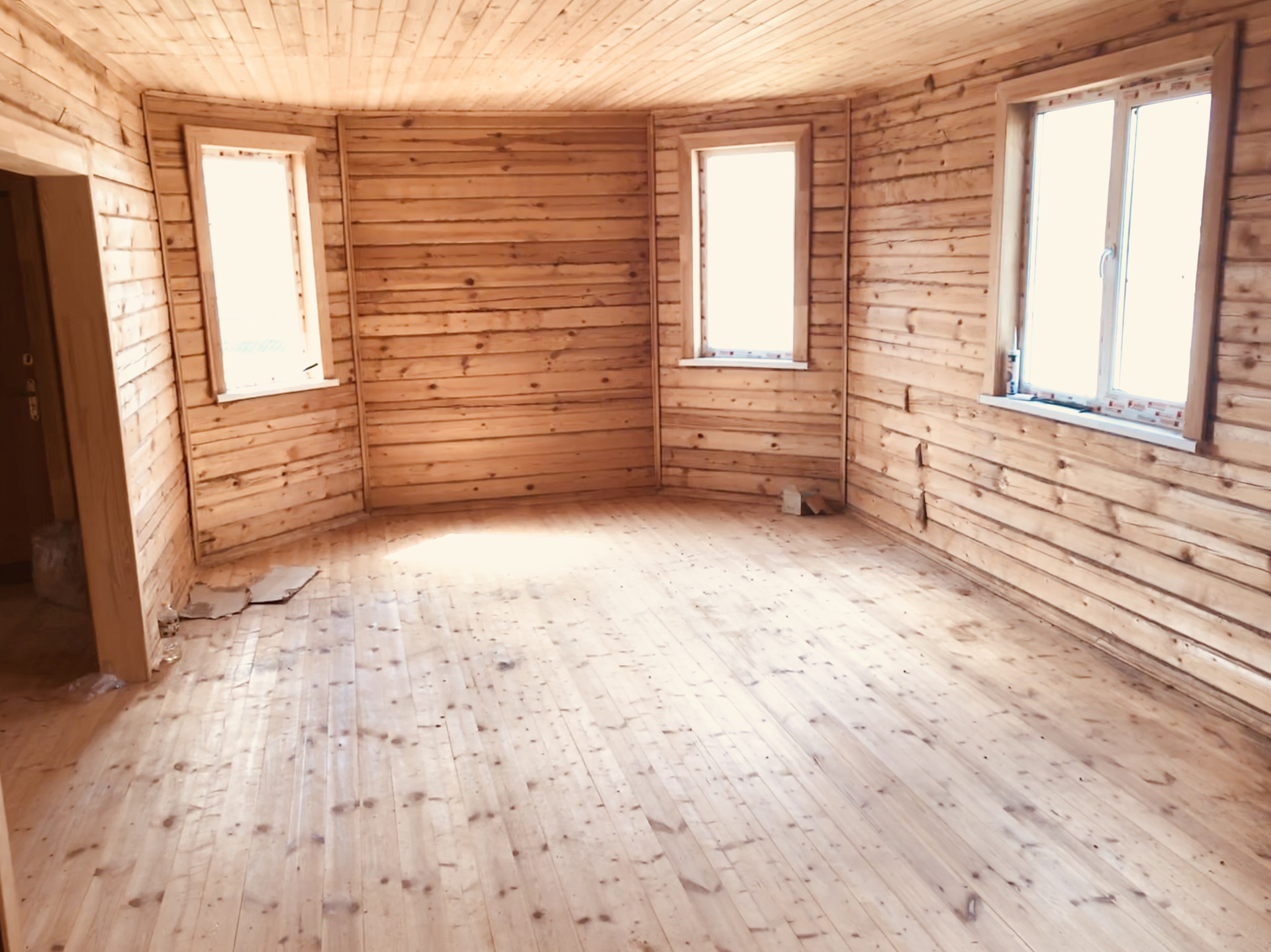 1-й этаж - отделка, двери, пол, потолок, окна, выводы под водопровод.