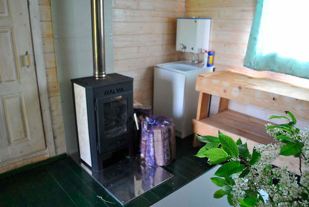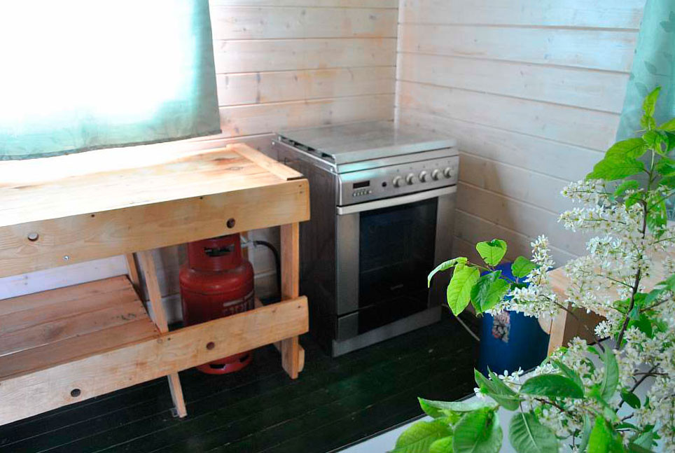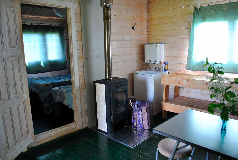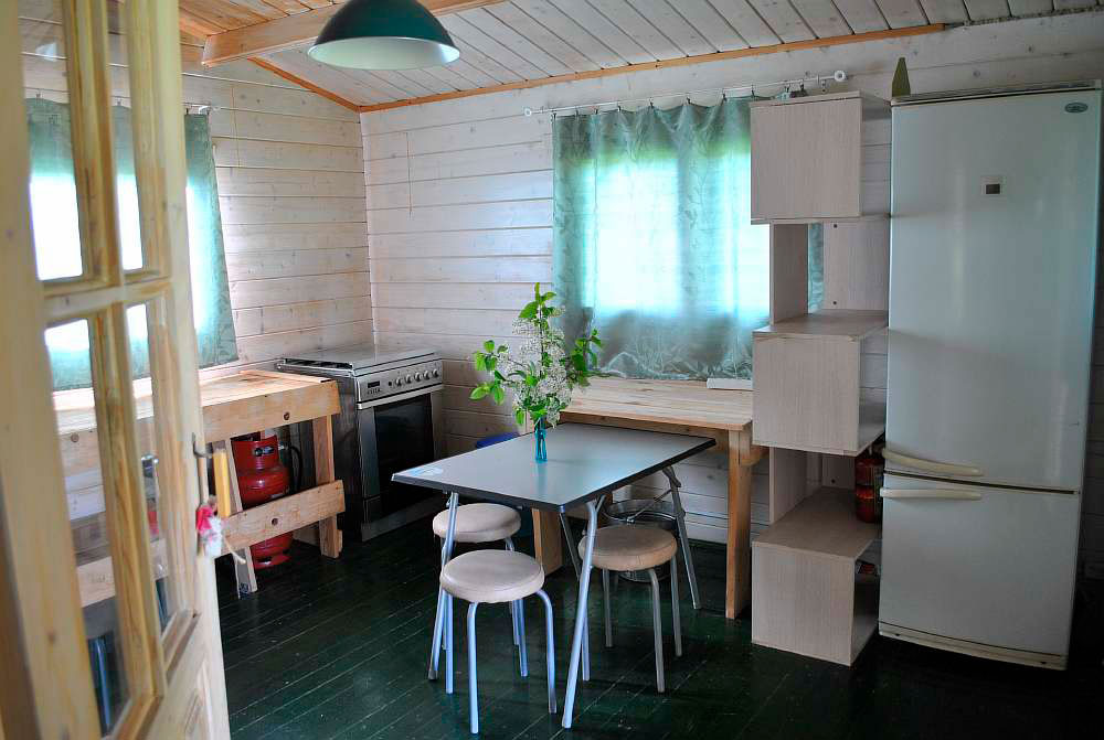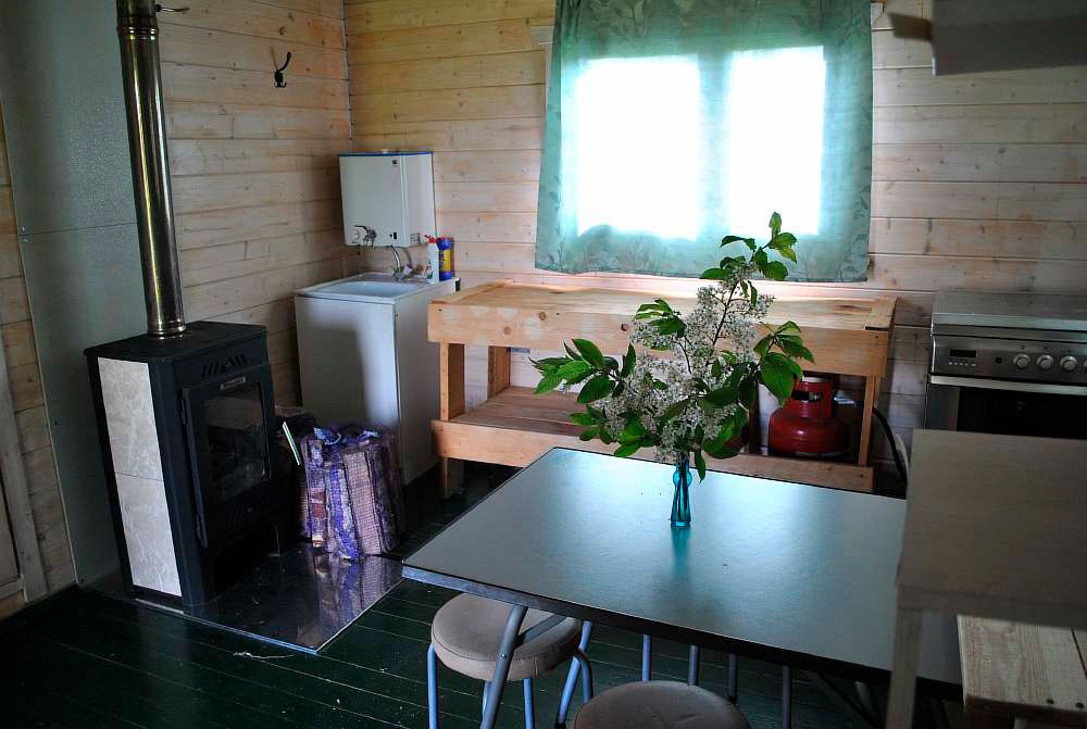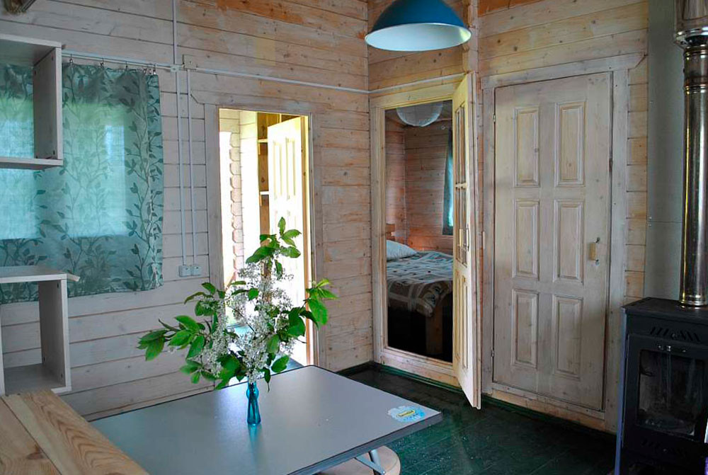 Одноэтажный летний домик 36 кв. м 2014 года постройки из профилированного минибруса 45x145 мм. Фундамент свайный. Кровля - мягкая черепица. В доме две раздельные спальни и кухня-столовая. Интерьеры меблированы. В спальнях кровати и полочки для одежды и белья. В кухне-столовой умывальник с электрообогревом воды, холодильник, газовая плита (газ баллонный), стол, стулья. Отопление осуществляется с помощью металлической печи-камина на дровах и электрообогревателей. Все имущество в аккуратном состоянии. Электричество 10 кВт. На участке собственный колодец глубиной 9 колец. Вода в дом не заведена. Туалет - уличная уборная. В ближайшей перспективе планируется газификация д. Смолино по государственной социальной программе.