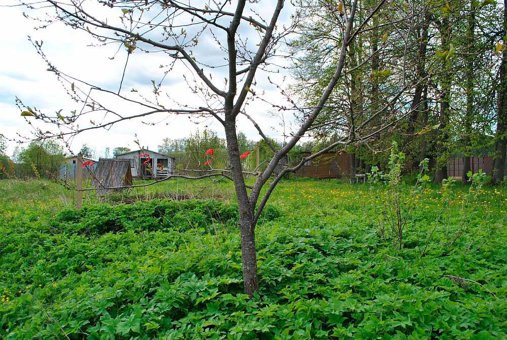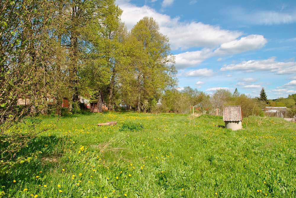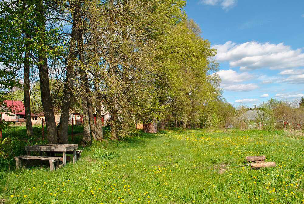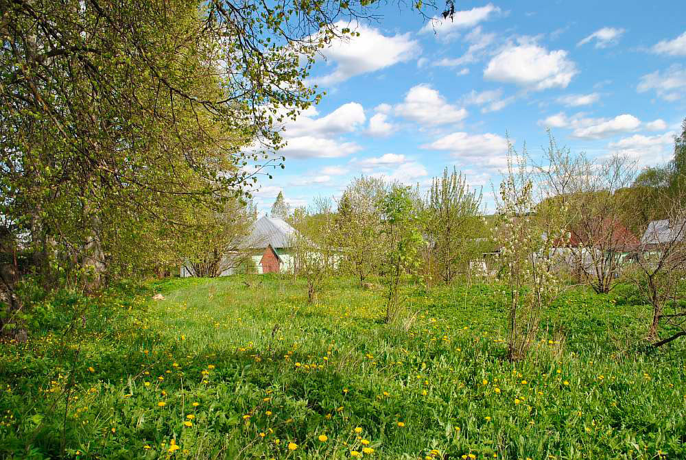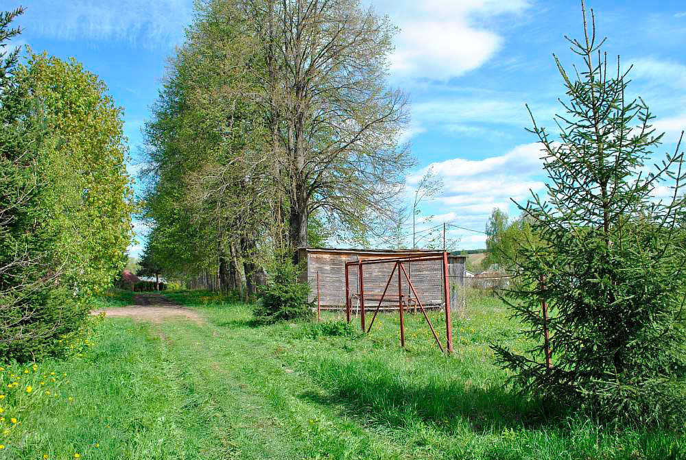 Общая площадь земельного участка 32 (12+20) сотки. Размер: 139х23 м. Участок на возвышенности, с панорамным видом на живописные окрестности деревни. Рельеф участка относительно ровный, с небольшим уклоном поверхности по направлению к реке. Территория участка сухая, поскольку лишняя влага после дождя не скапливается, а уходит самотеком. Со стороны трех застроенных соседей огражден сеткой-рабицей. С улицы - ворота и калитка. На территории участка растут молодые плодовые деревья и ягодные кустарники лучших сортов Тимирязевского питомника: яблони, алыча, сливы, черешня, вишни, смородина, малина, ежевика, крыжовник, колерованный фундук. На участке бытовка для хранения садового инвентаря и инструментов, также сохранилась часть старинного подземного погреба. С северной стороны участка вдоль деревенской дороги великолепная вековых лип.