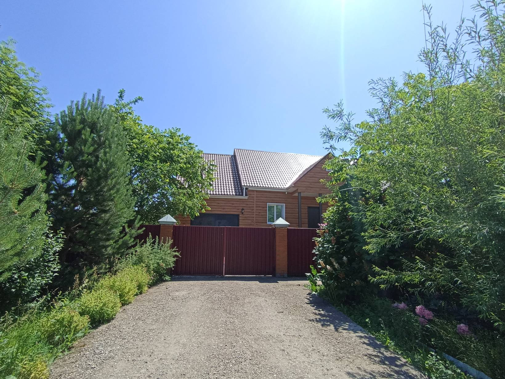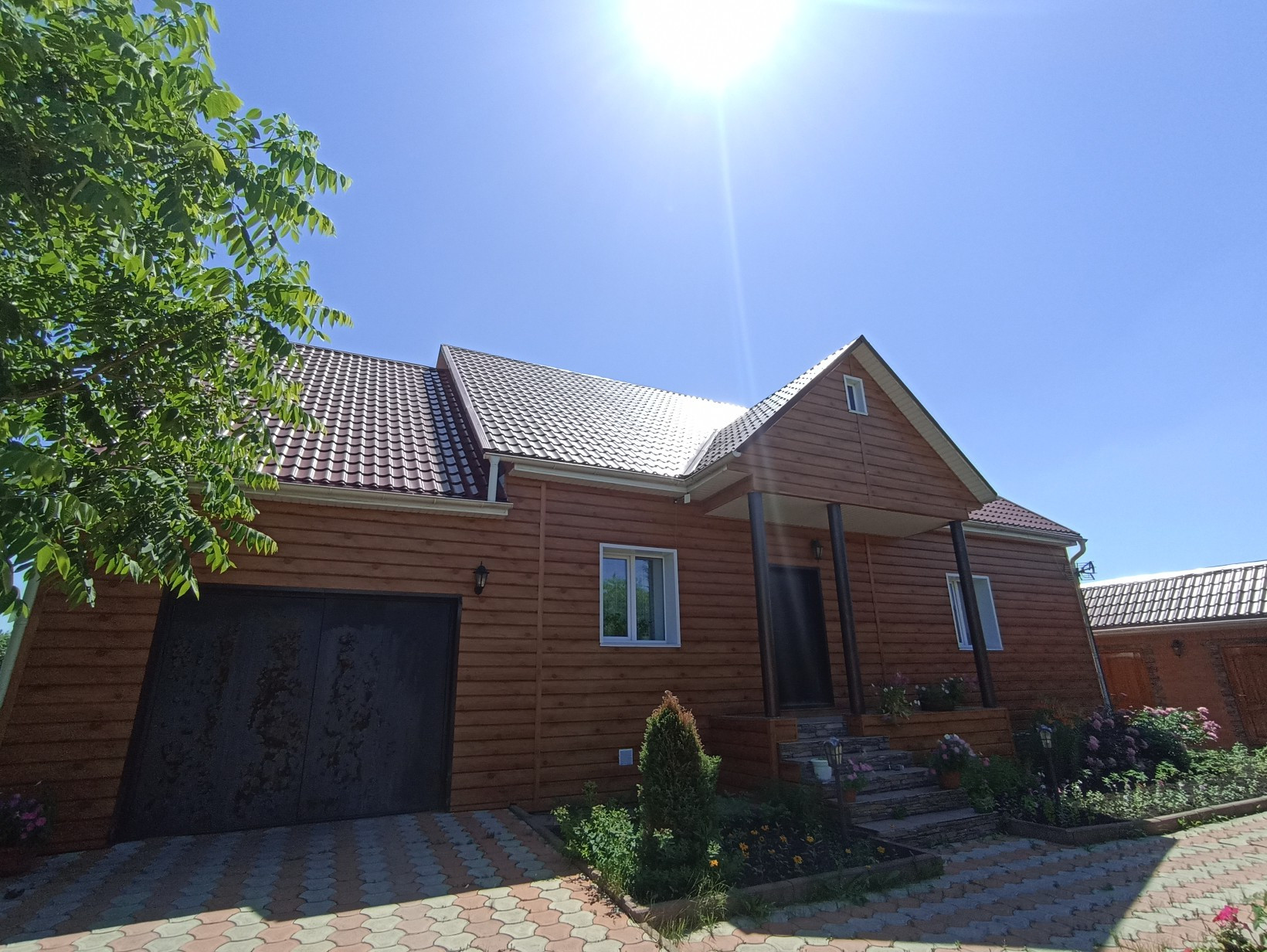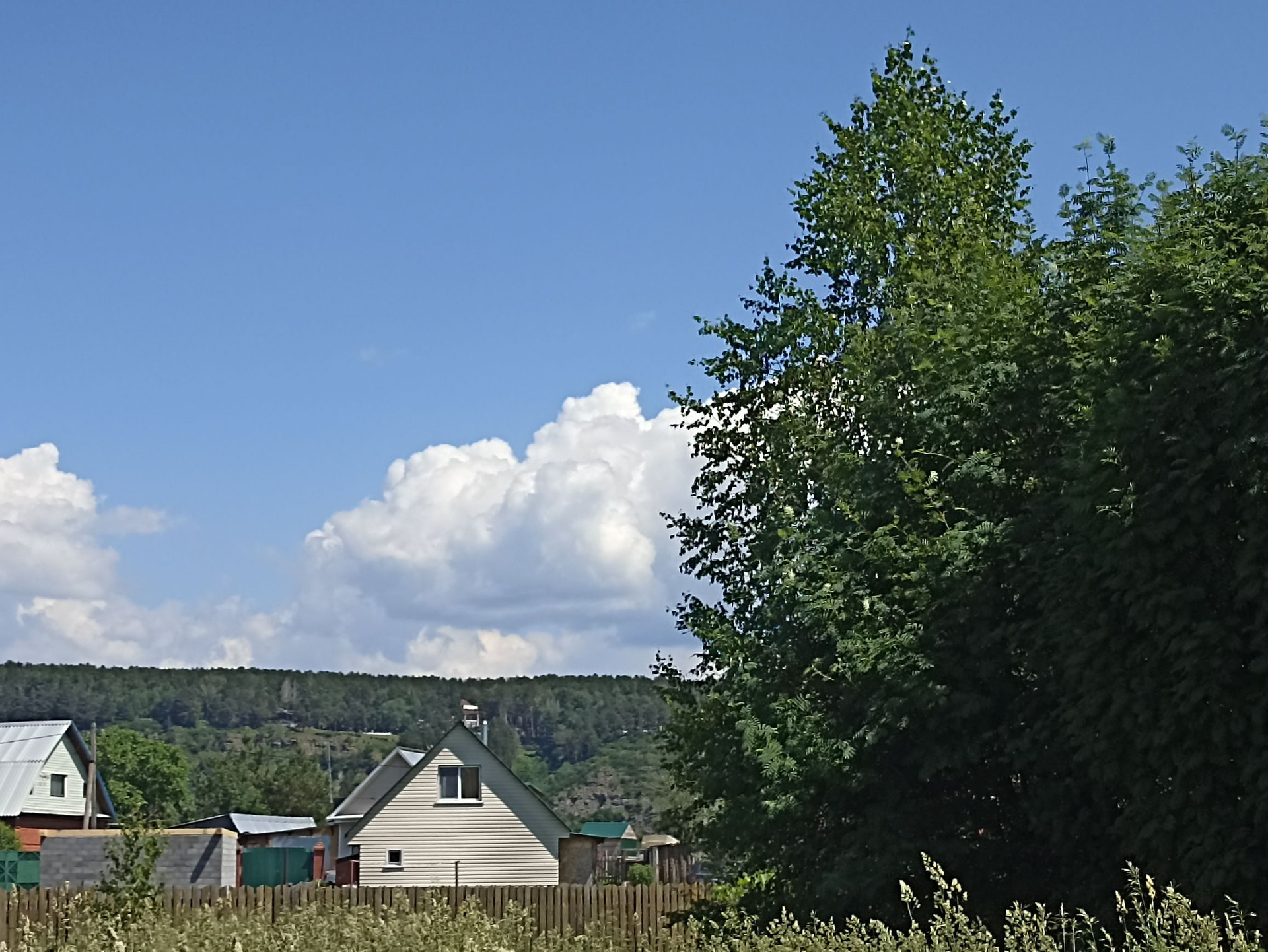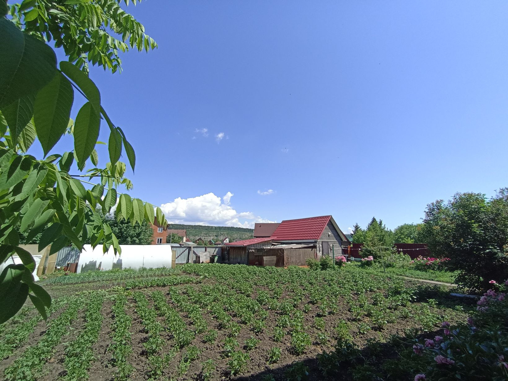 Добротный, кирпичный Коттедж, утопающий в зелени, пионах, с видом на противоположный высокий берег Томи.