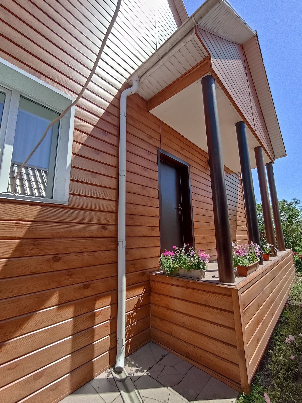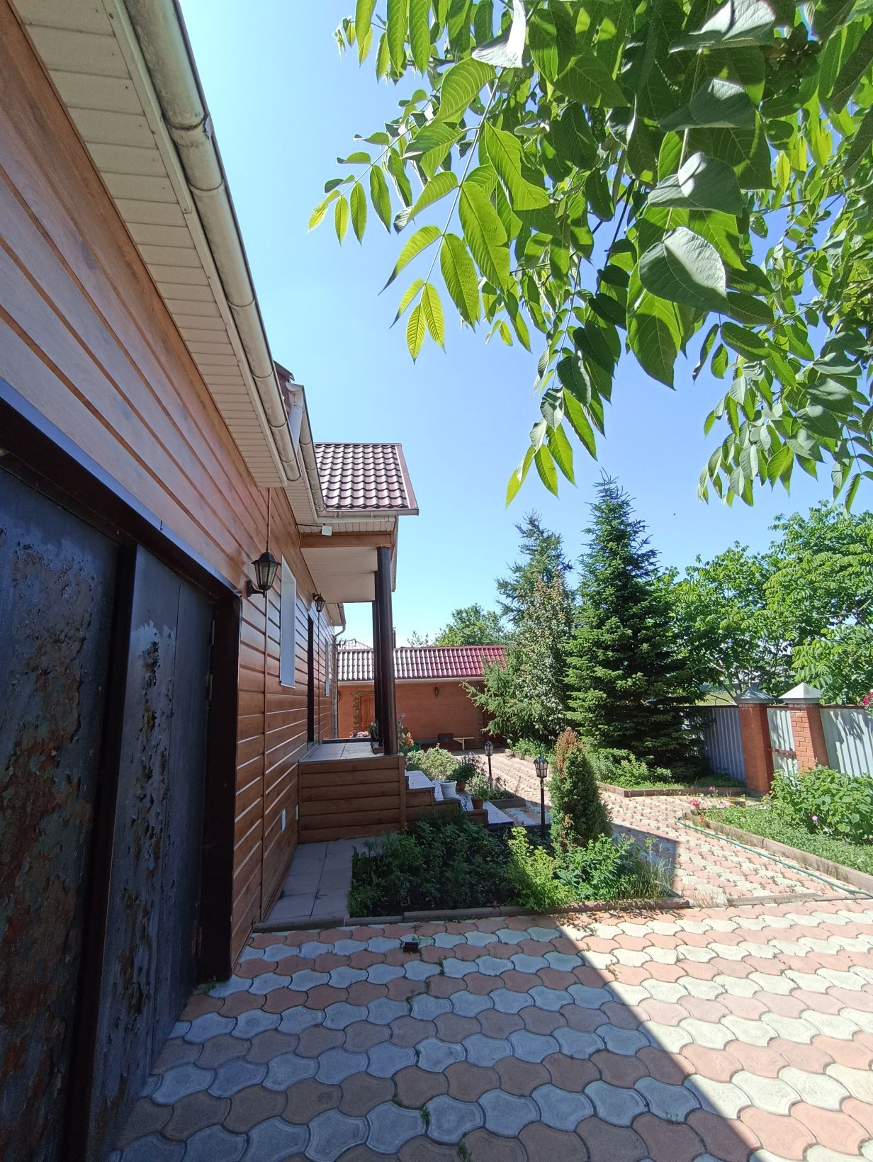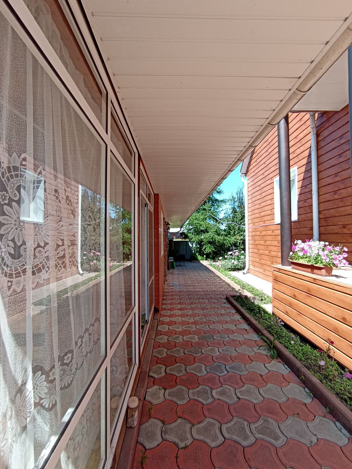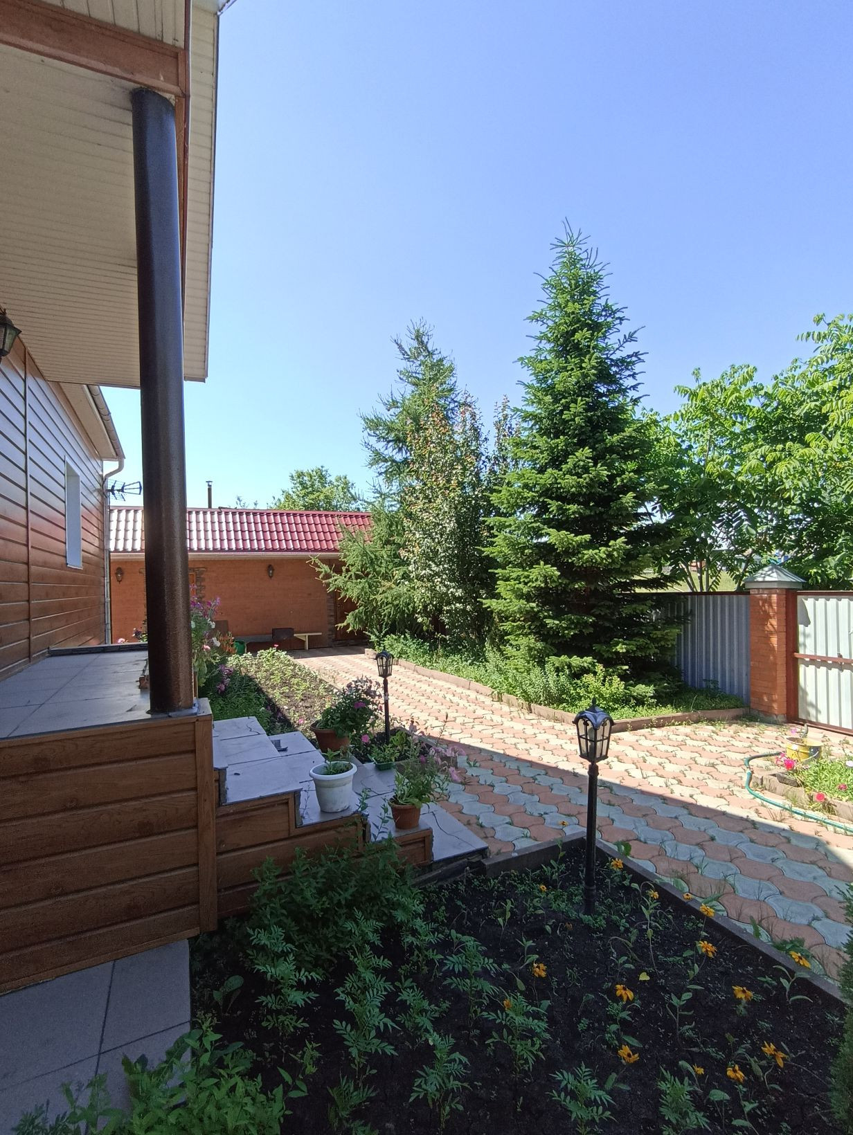 На прилегающей территории выложена тротуарная плитка, Во дворе чисто, ухожено.