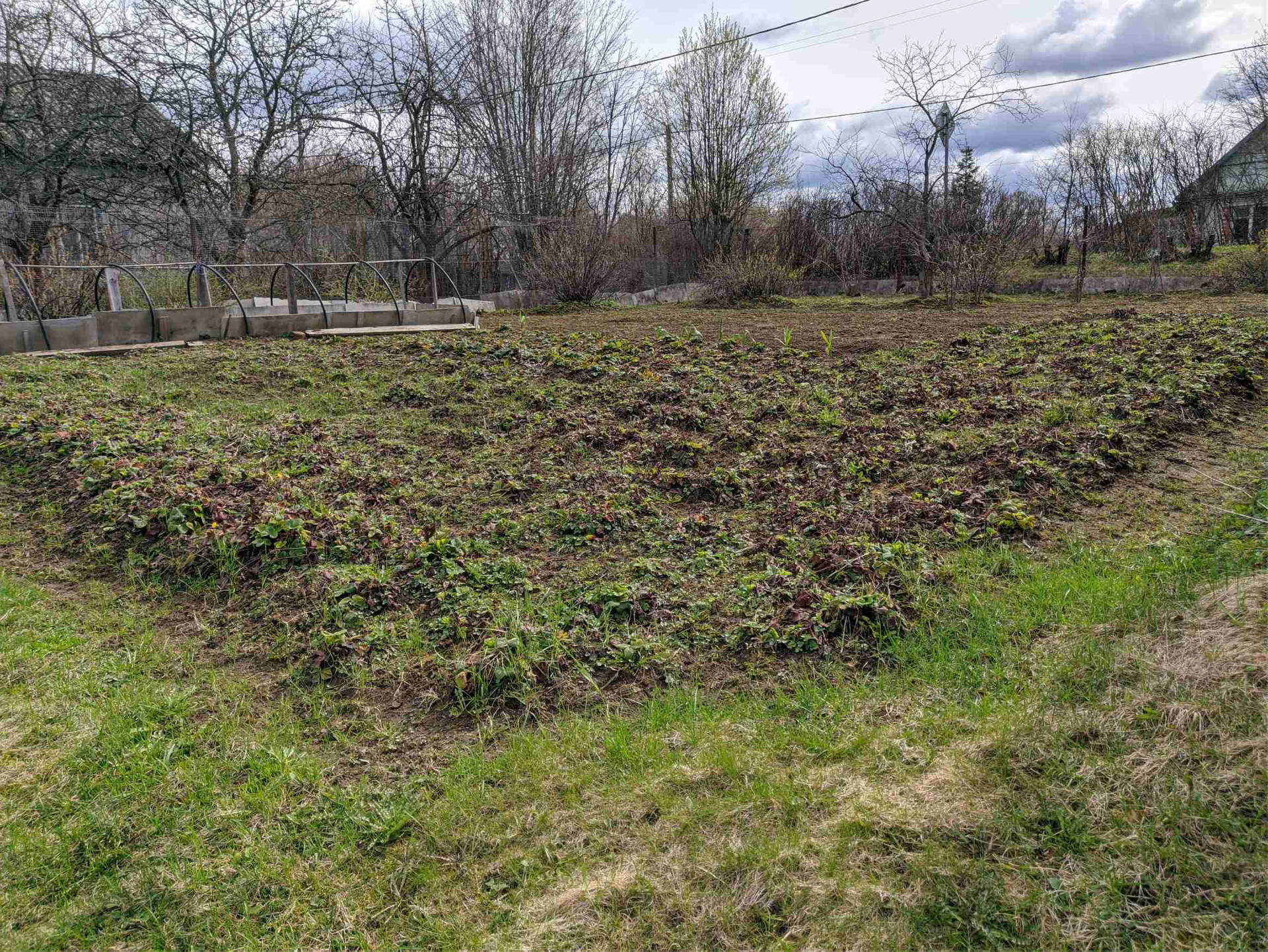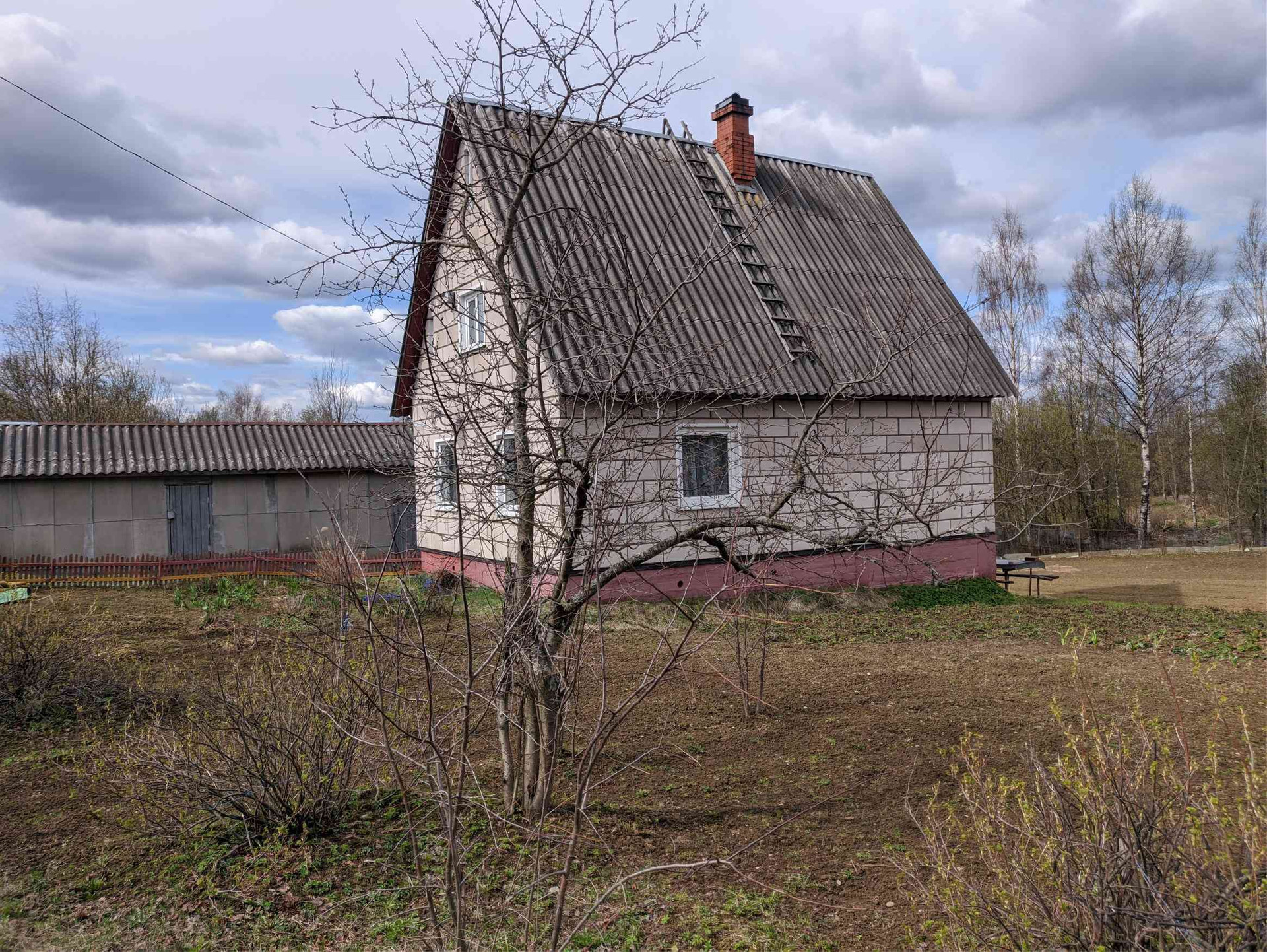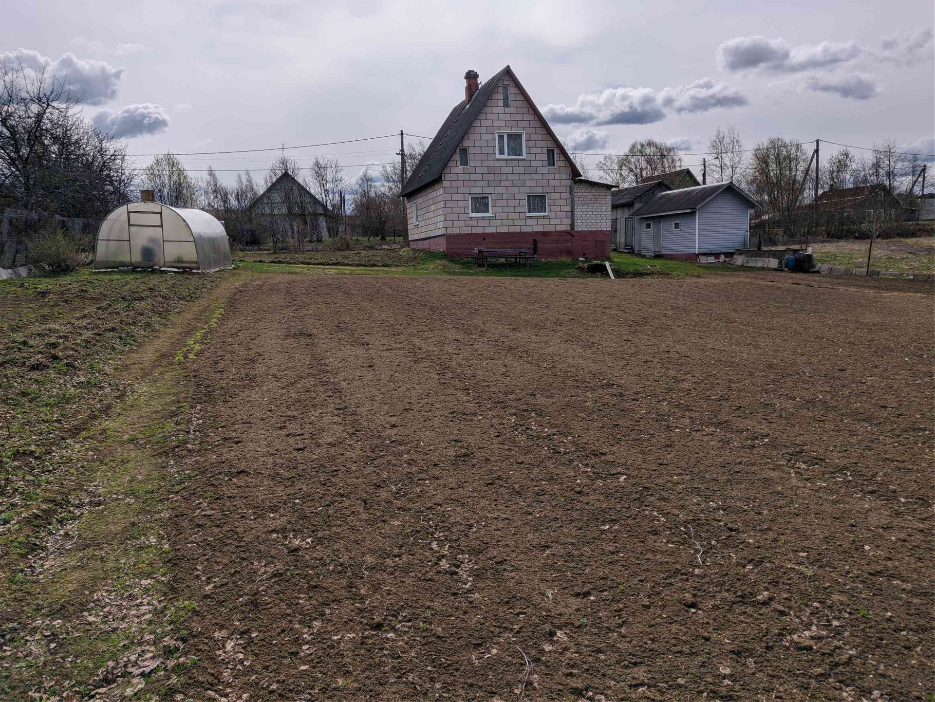 Участок ухоженный, полностью разработанный, плодовые деревья и кустарники, большое поле клубники.