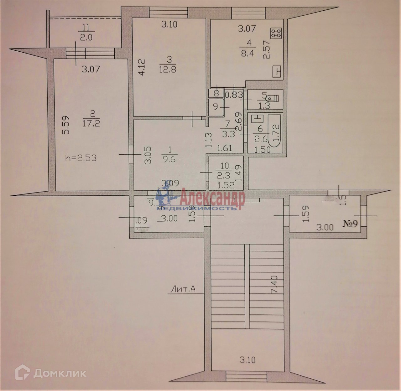 Высота потолков 2.53 м