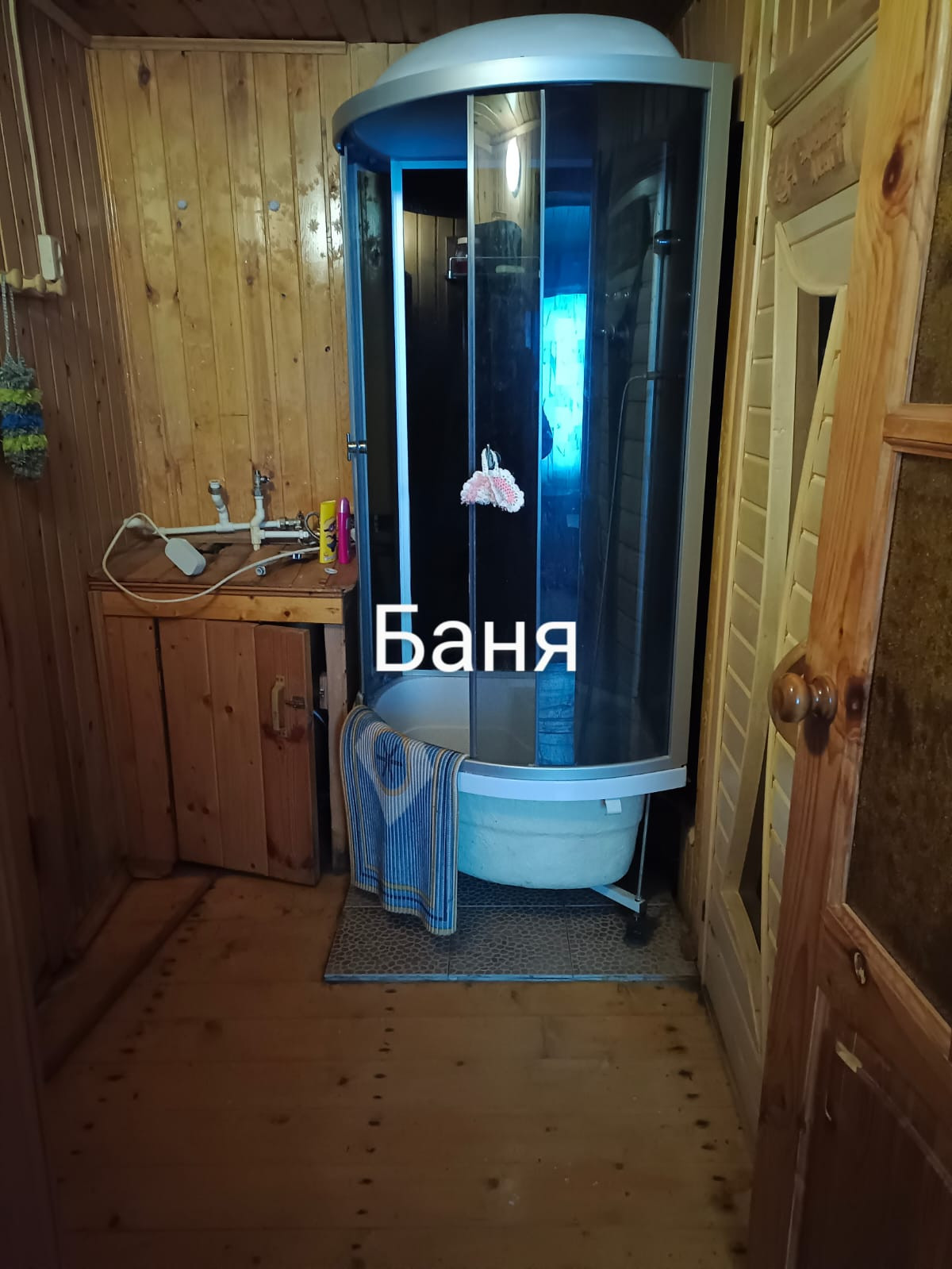 БАНЯ 6.25Х 6.75 42.2 кв.м. 2004 г постройки имеет 5 комнат : кухня, комната отдыха, парная, помывочная, бытовая комната с туалетом. Построена из бруса на ленточном фундаменте. Заведена вода из колодца, канализация. На кадастре баня не стоит.