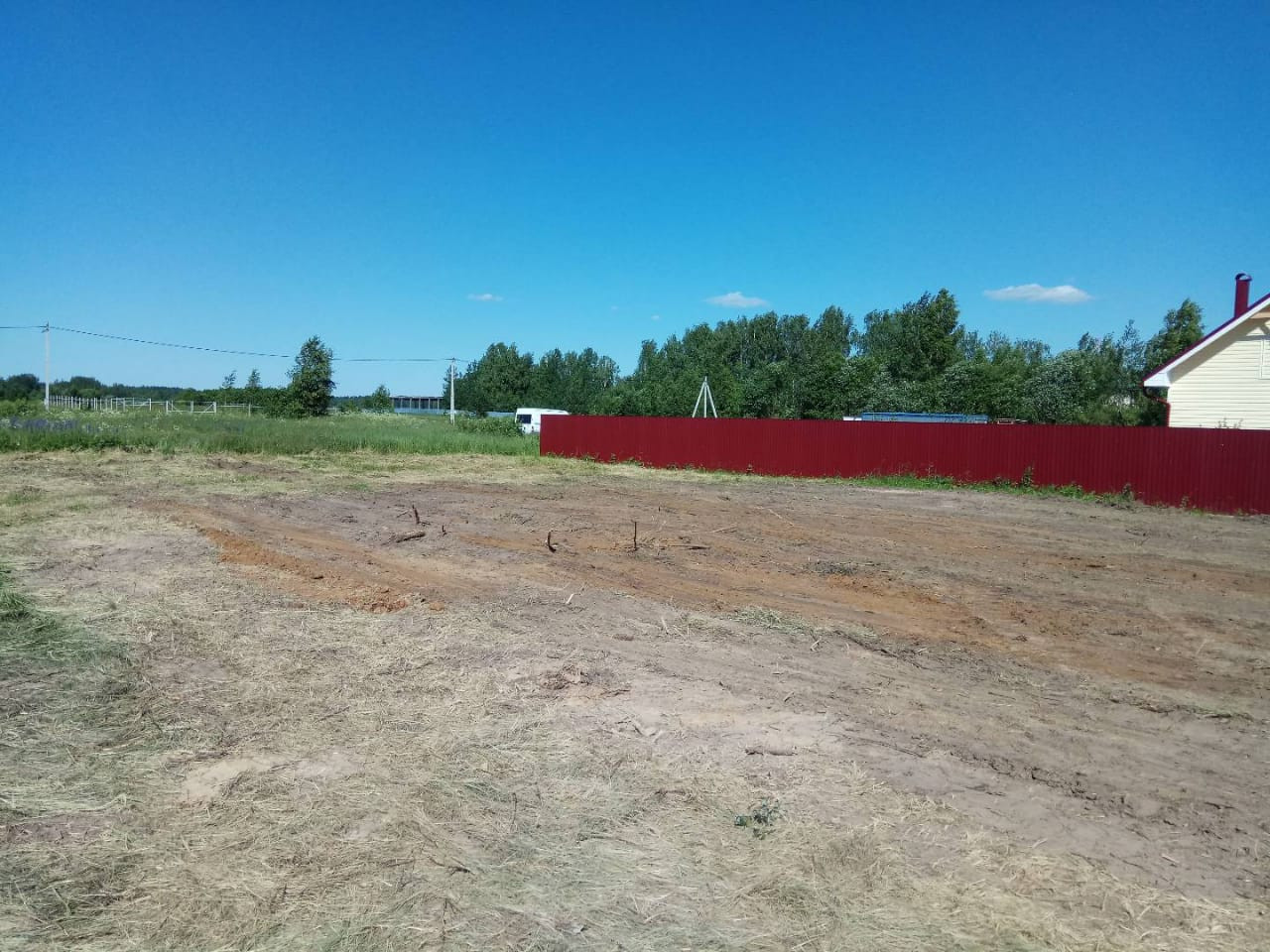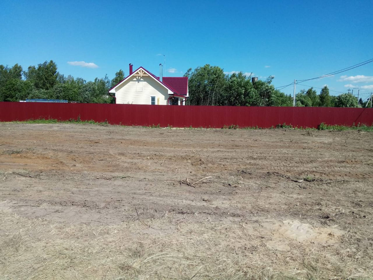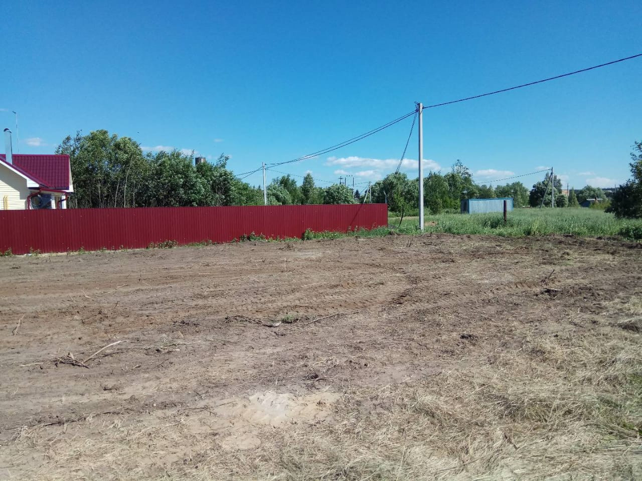 Земельный участок правильной формы, ровный. отмежеван, имеется электрический столб.