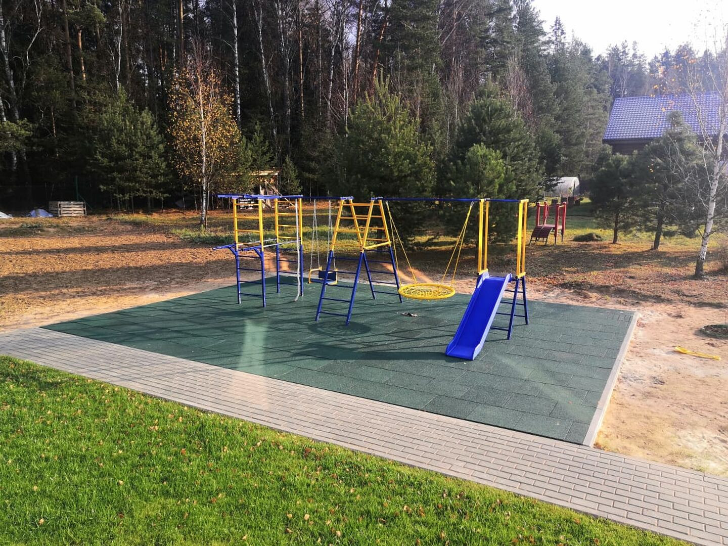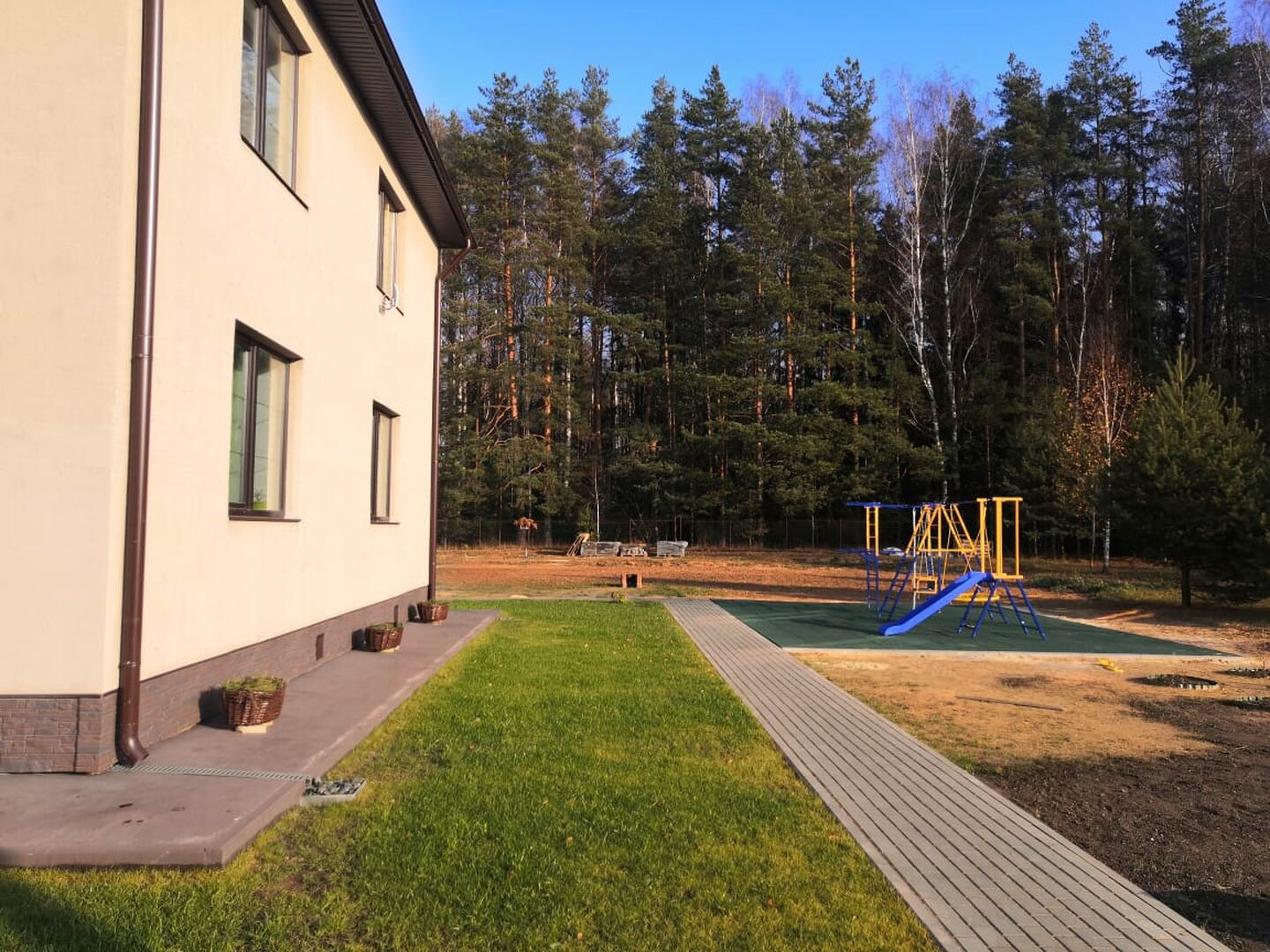 Выложена зона барбекю и сделана детская площадка.