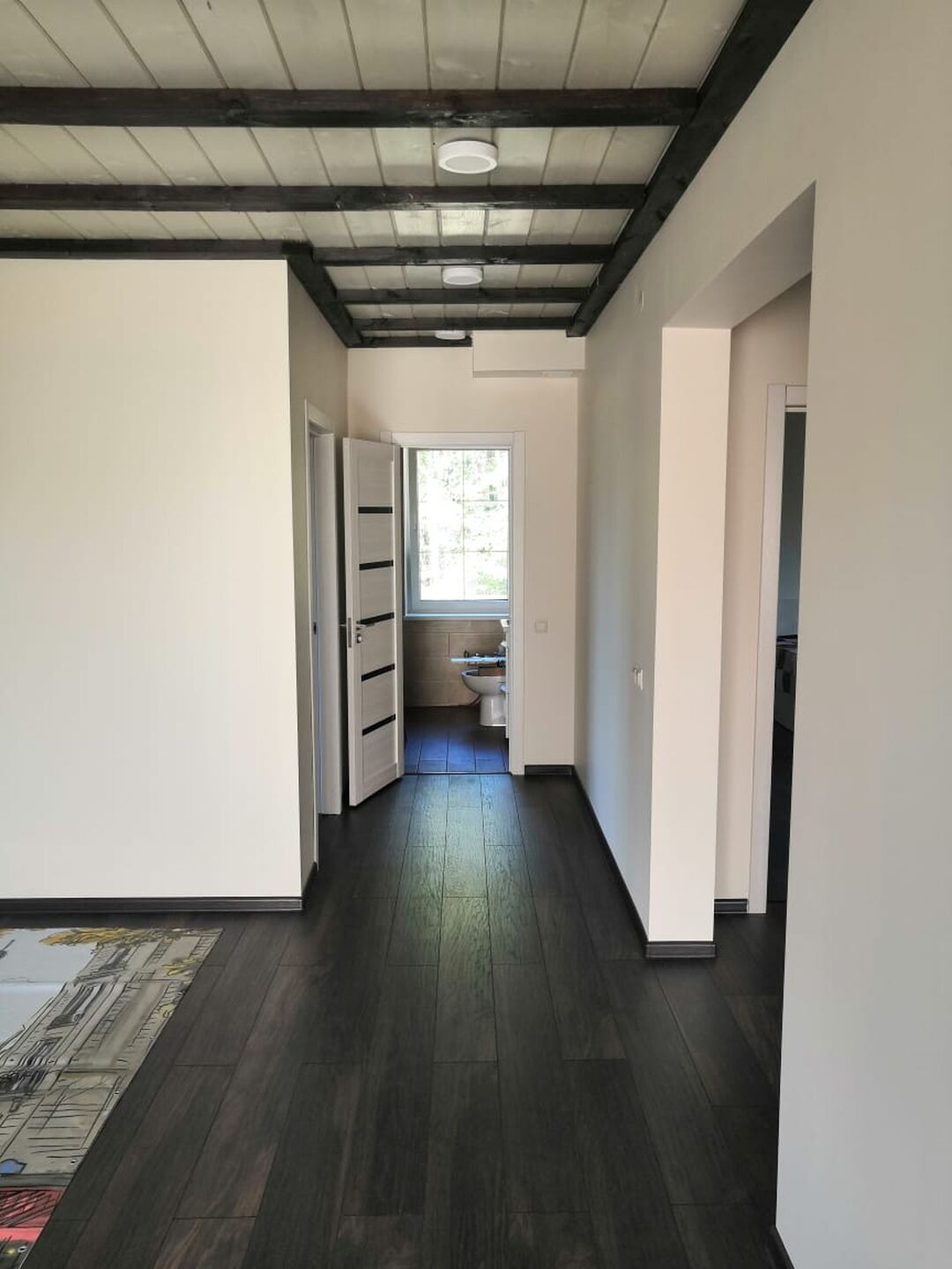 Дом состоит из двух этажей, на 1-ом этаже располагается: просторная кухня-гостиная, гостевая спальня, с/узел с ванной, тамбур и тех помещение. На 2-ом просторный холл-зал, три изолированные спальни, туалет и большая гардеробная.