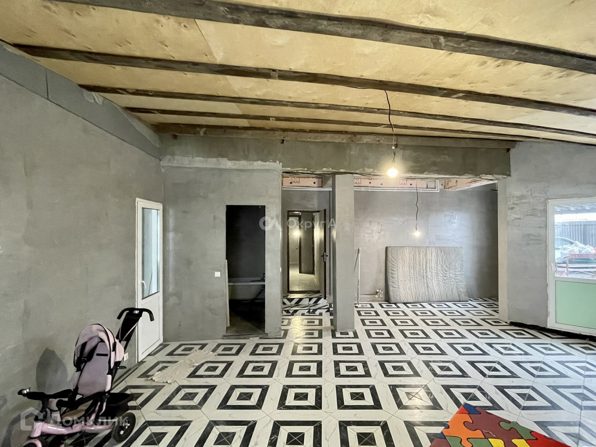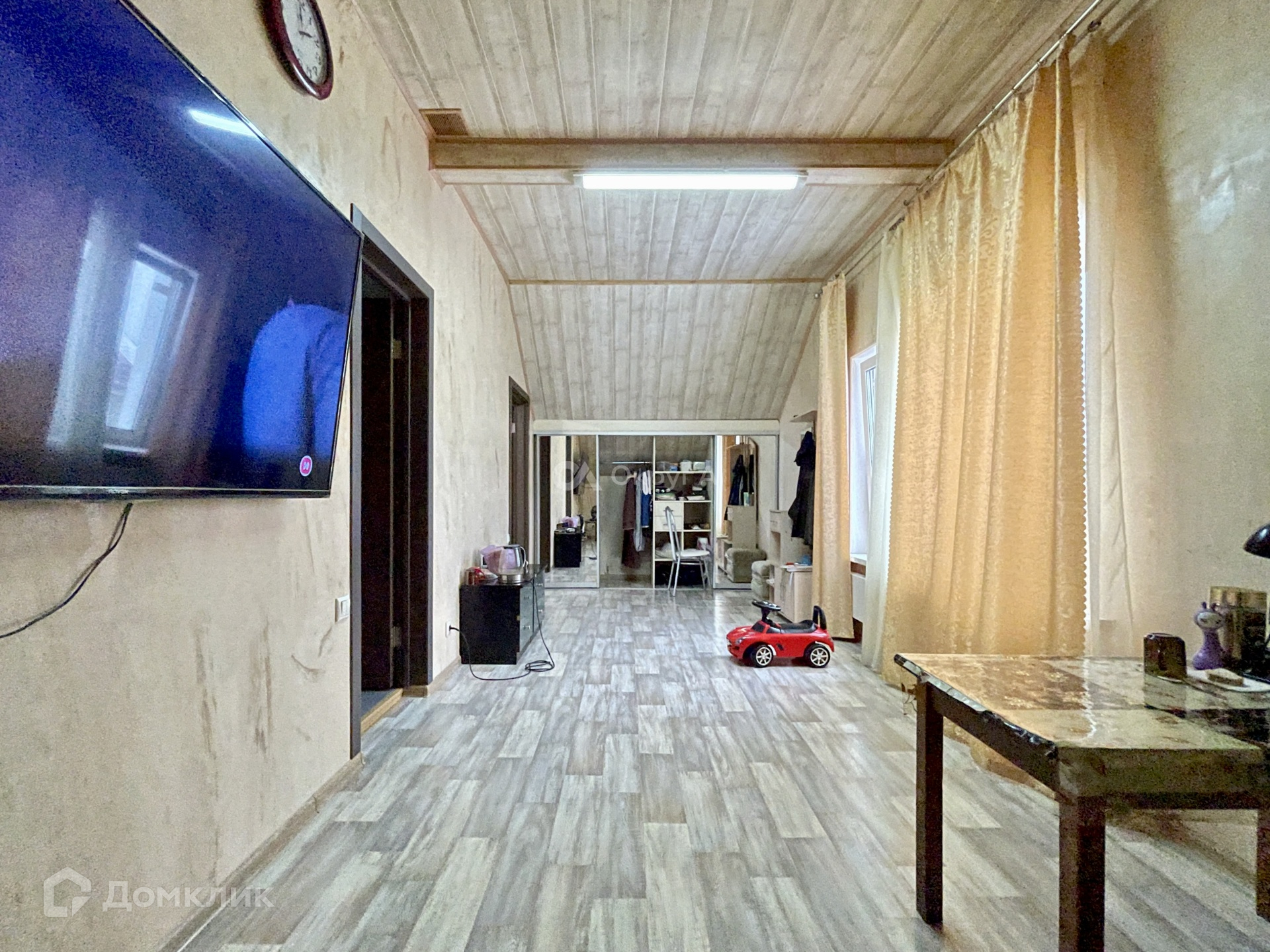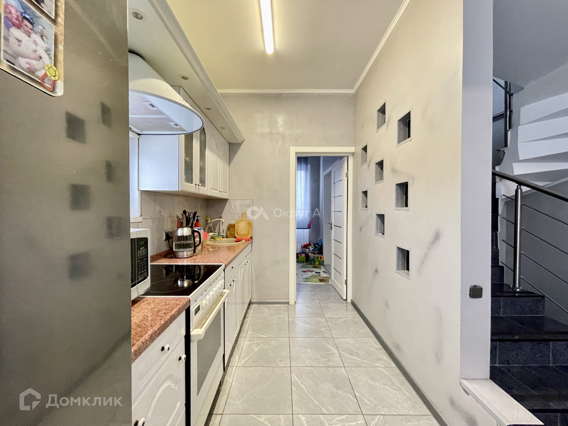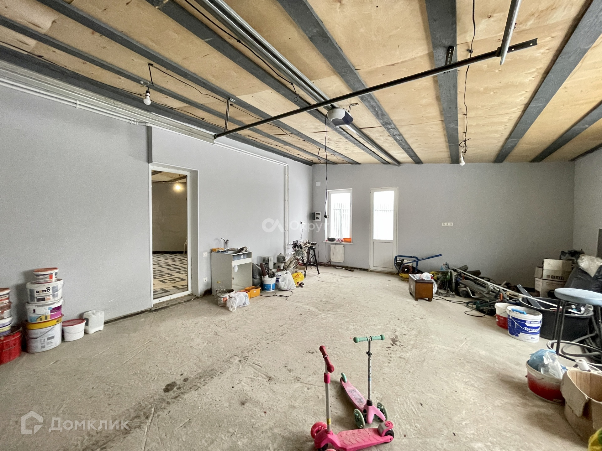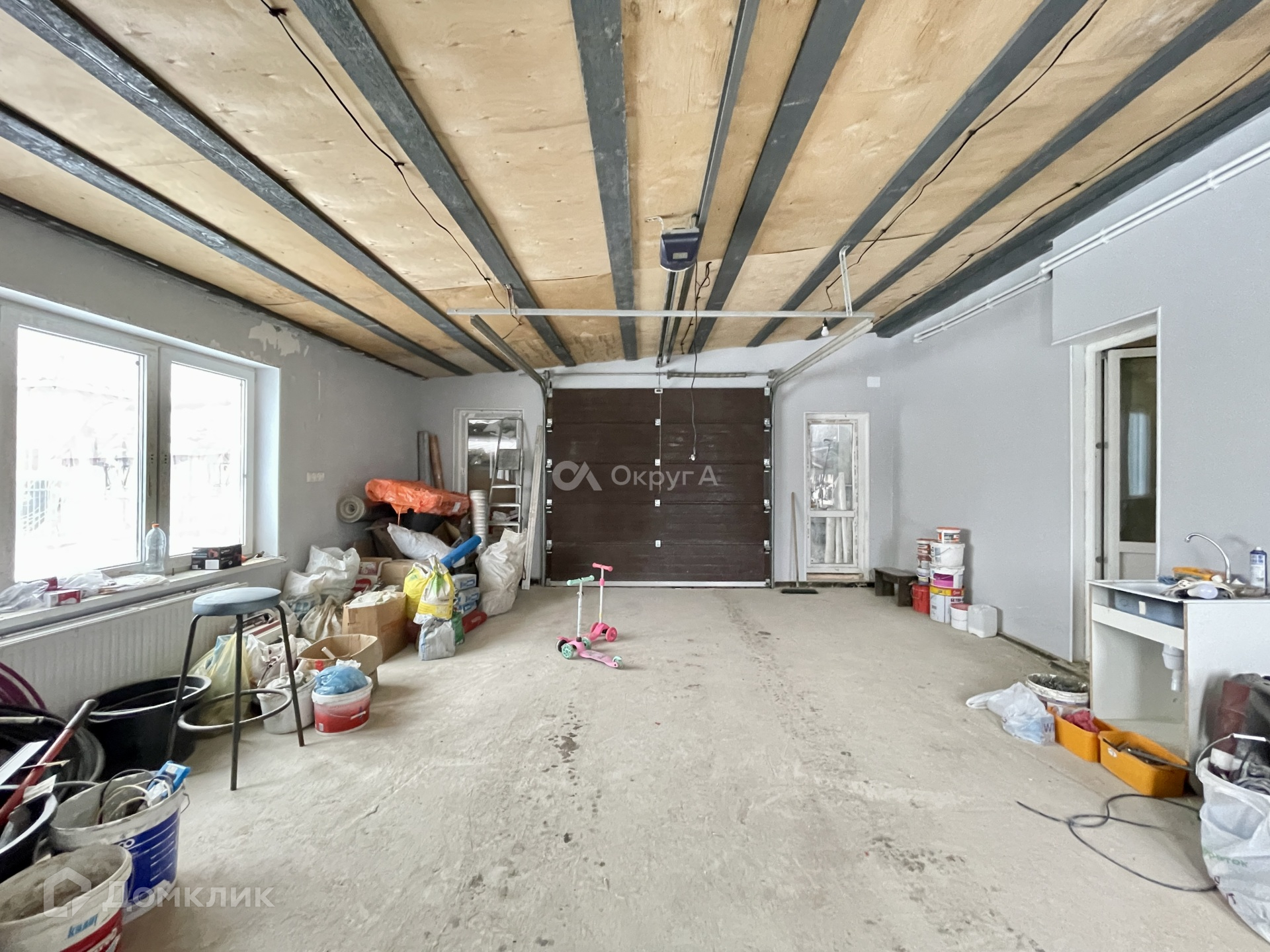 На первом этаже располагается просторная кухня-гостинная, бойлерная, два санузла, прихожая, есть место под обустройство гардеробной, комната, имеется выход в теплый гараж с автоматическими воротами.
