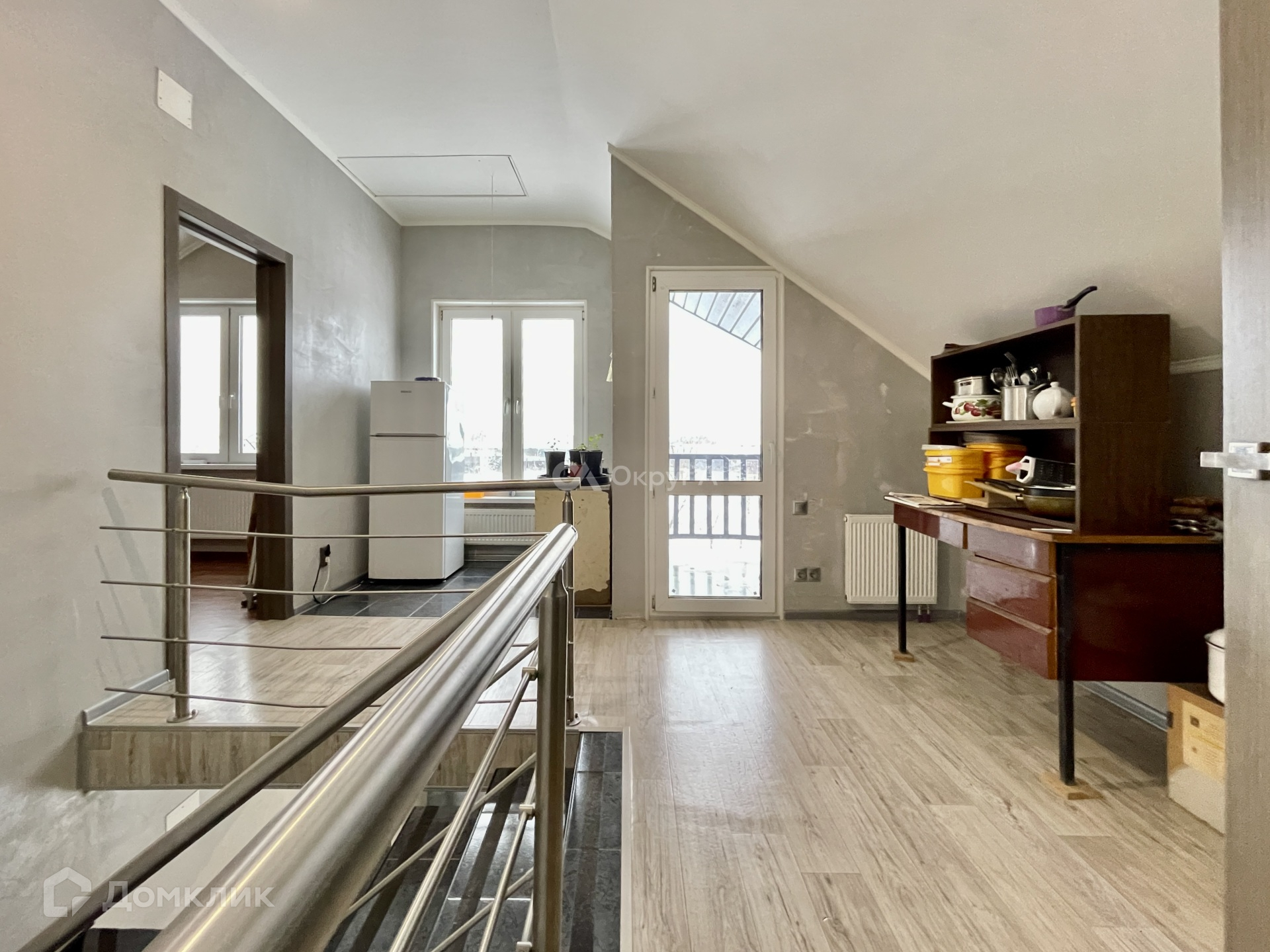На второй этаж ведет удобная монолитная лестница, второй этаж вмещает в себя кухню, кабинет, просторную комнату, гардеробную и санузел.