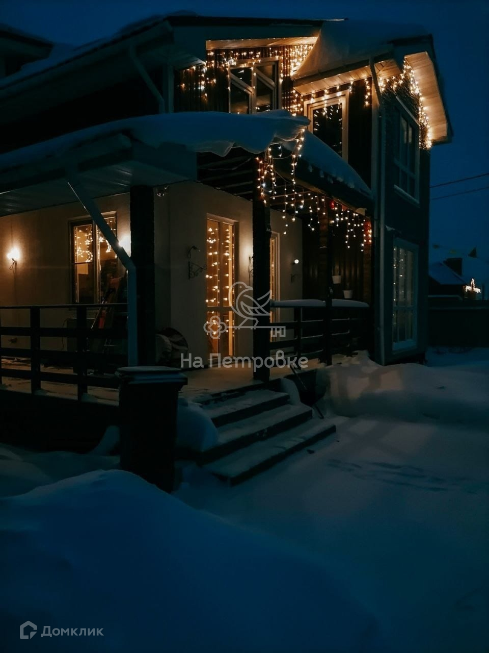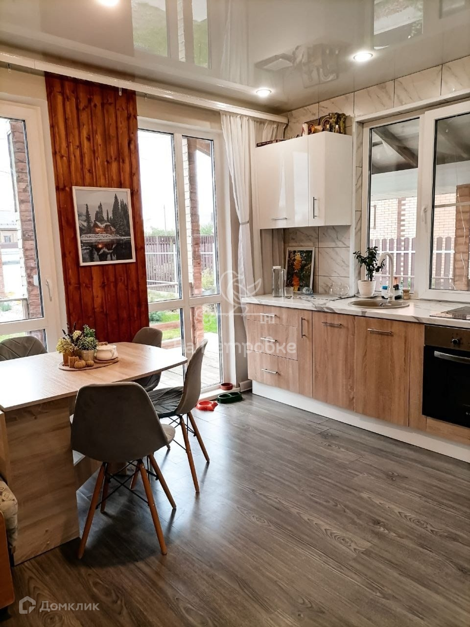 Фундамент железобетонные сваи, дом - сип панели. Дом надежный и теплый, есть просторная веранда (выход из столовой зоны). Участок 6 соток.