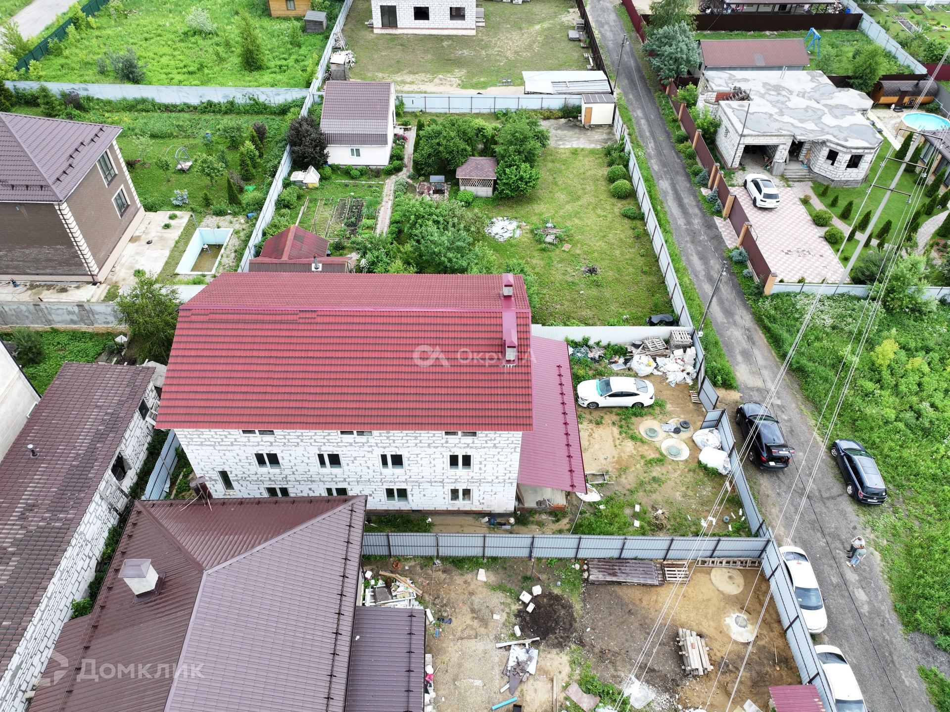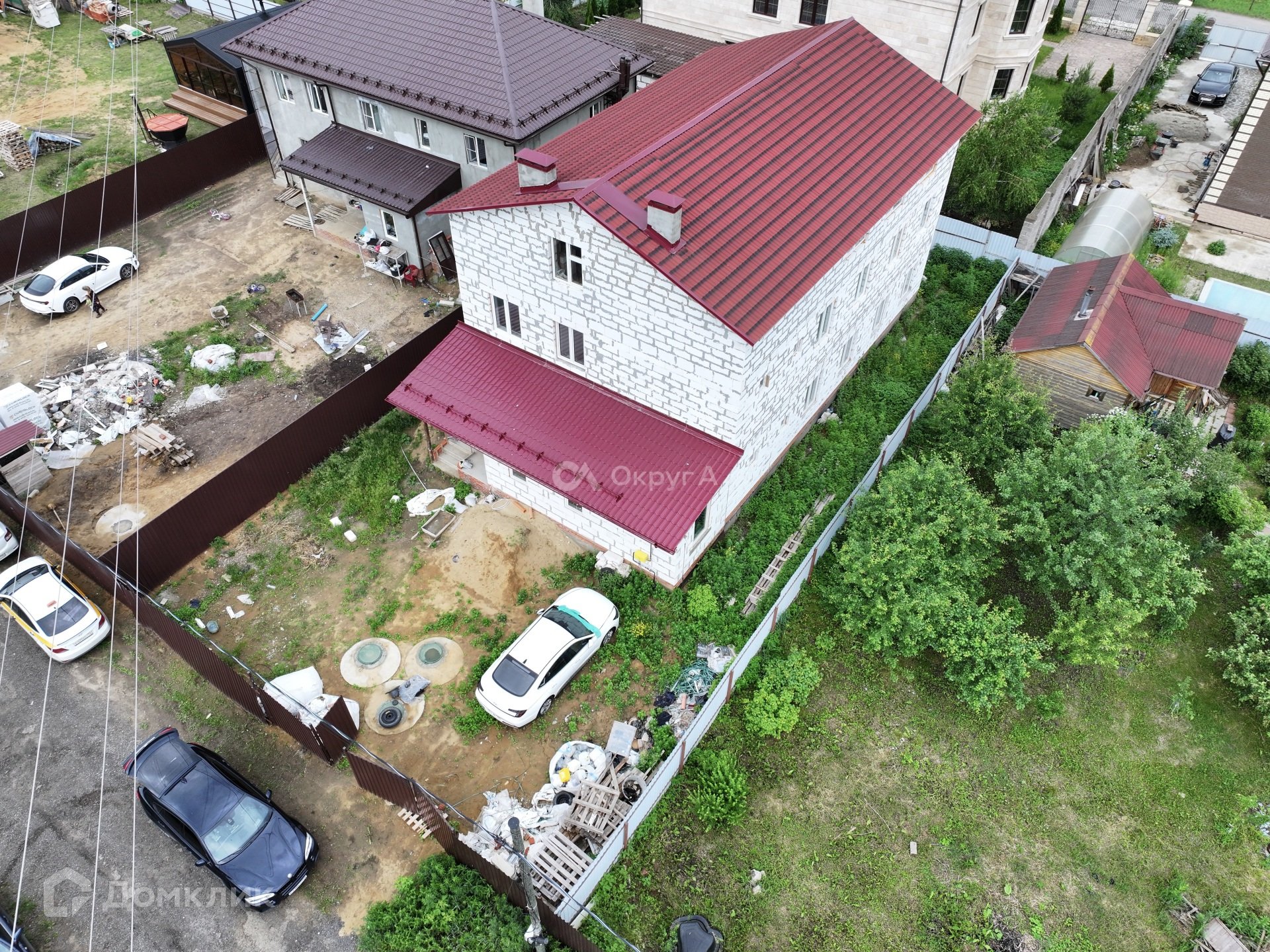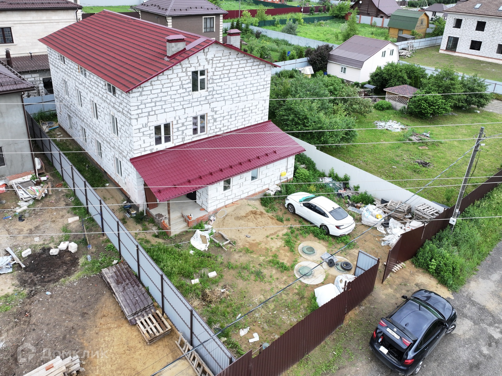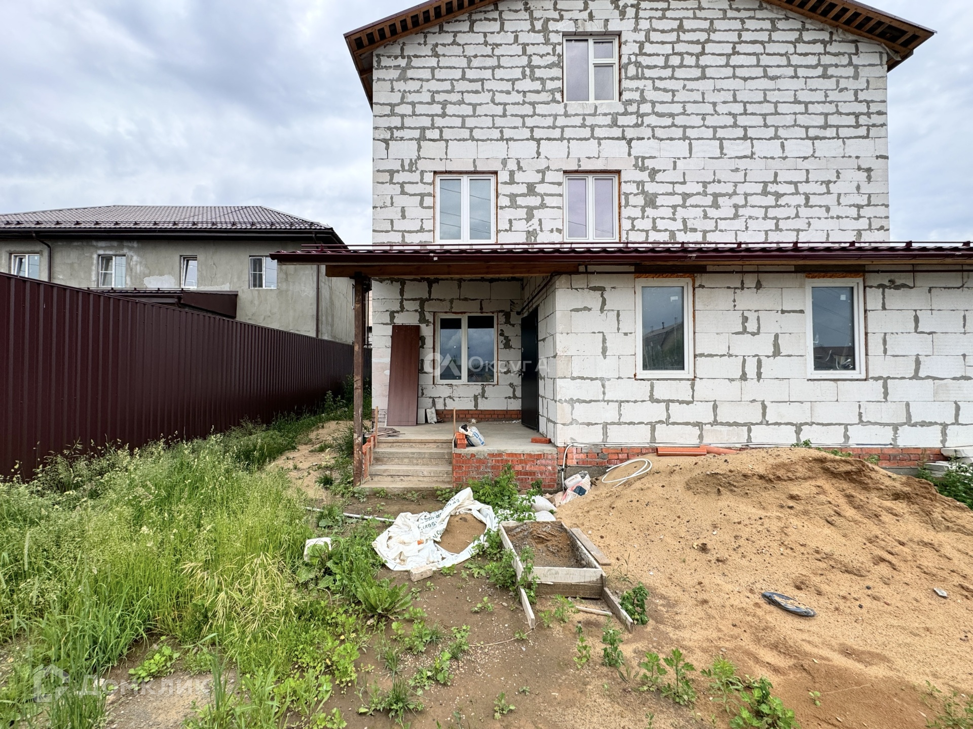 Дом 3 этажа, общей площадью 463,2 кв м, построен из высококачественных материалов с соблюдением всех современных технологий. Фундамент – монолитная армированная плита 50см, стены – газоблок D400, крыша – ондулин. По плану на 1 и 2 этажах расположены: большой коридор, просторная кухня, 2 с/у и 7 комнат. 3 этаж свободной планировки.