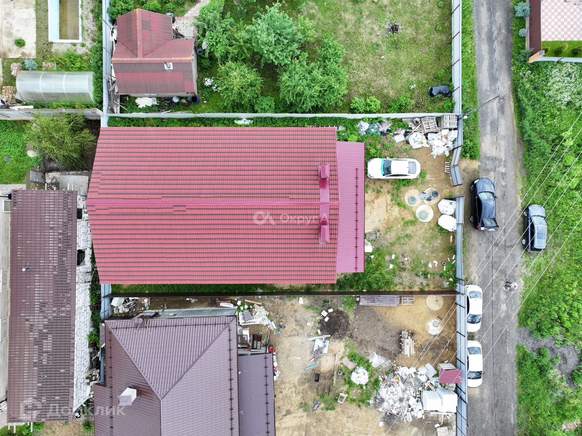 Участок 5 соток, правильной формы, ровный, сухой, приподнят, по периметру огорожен забором с въездными воротами.