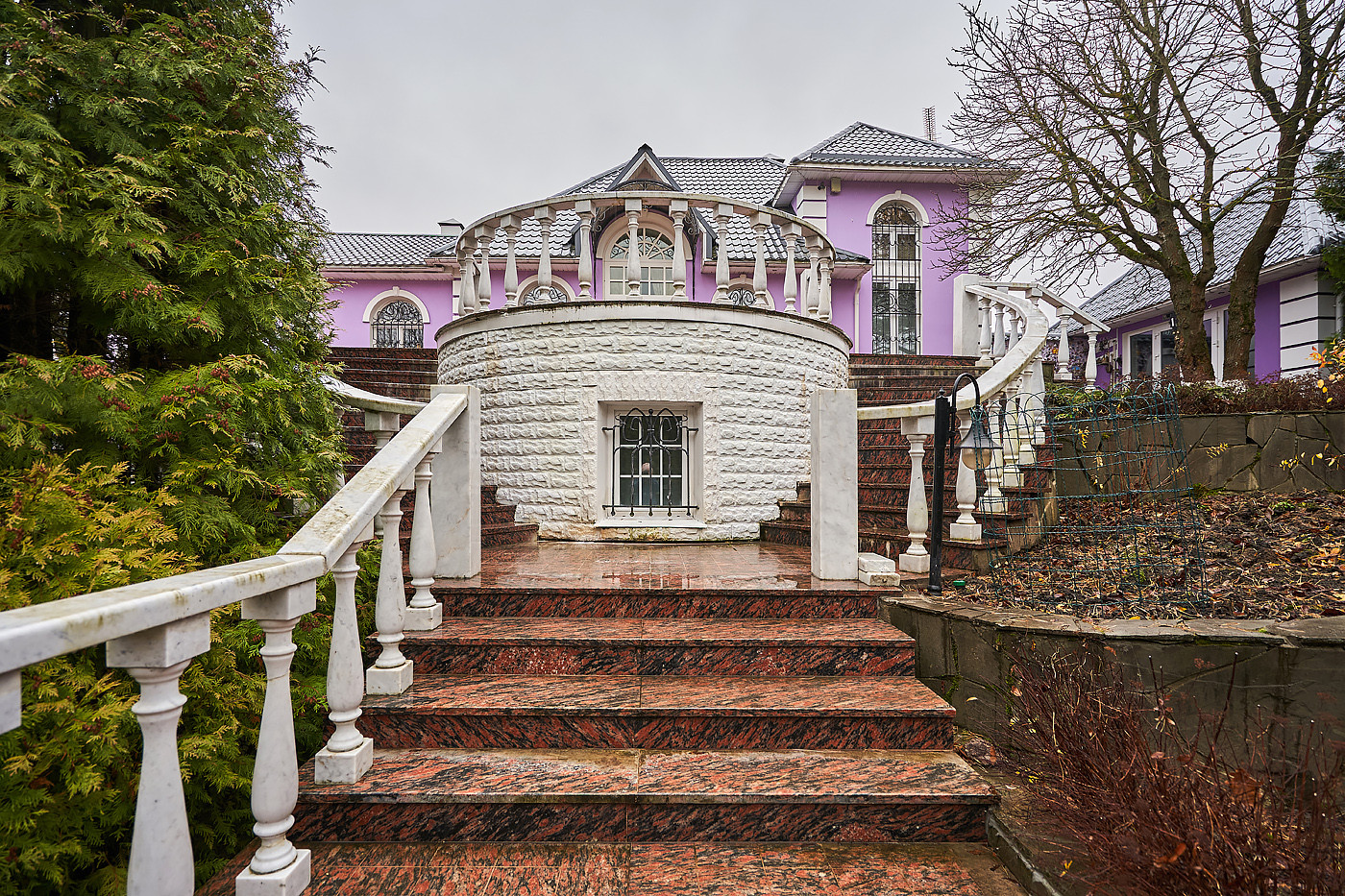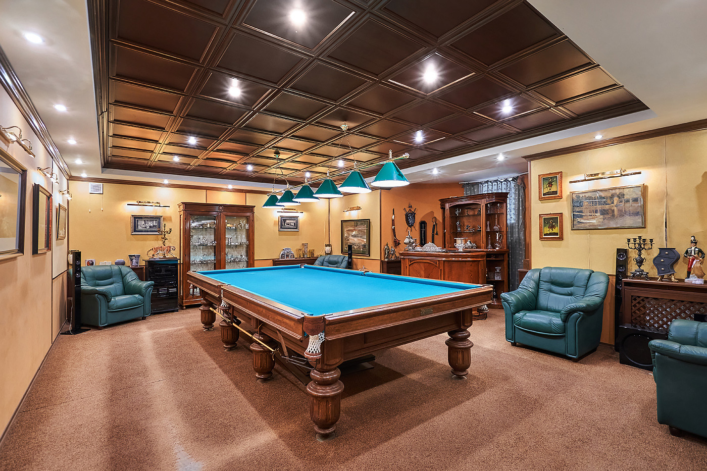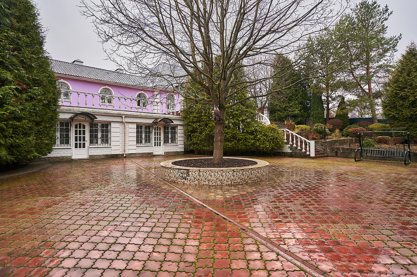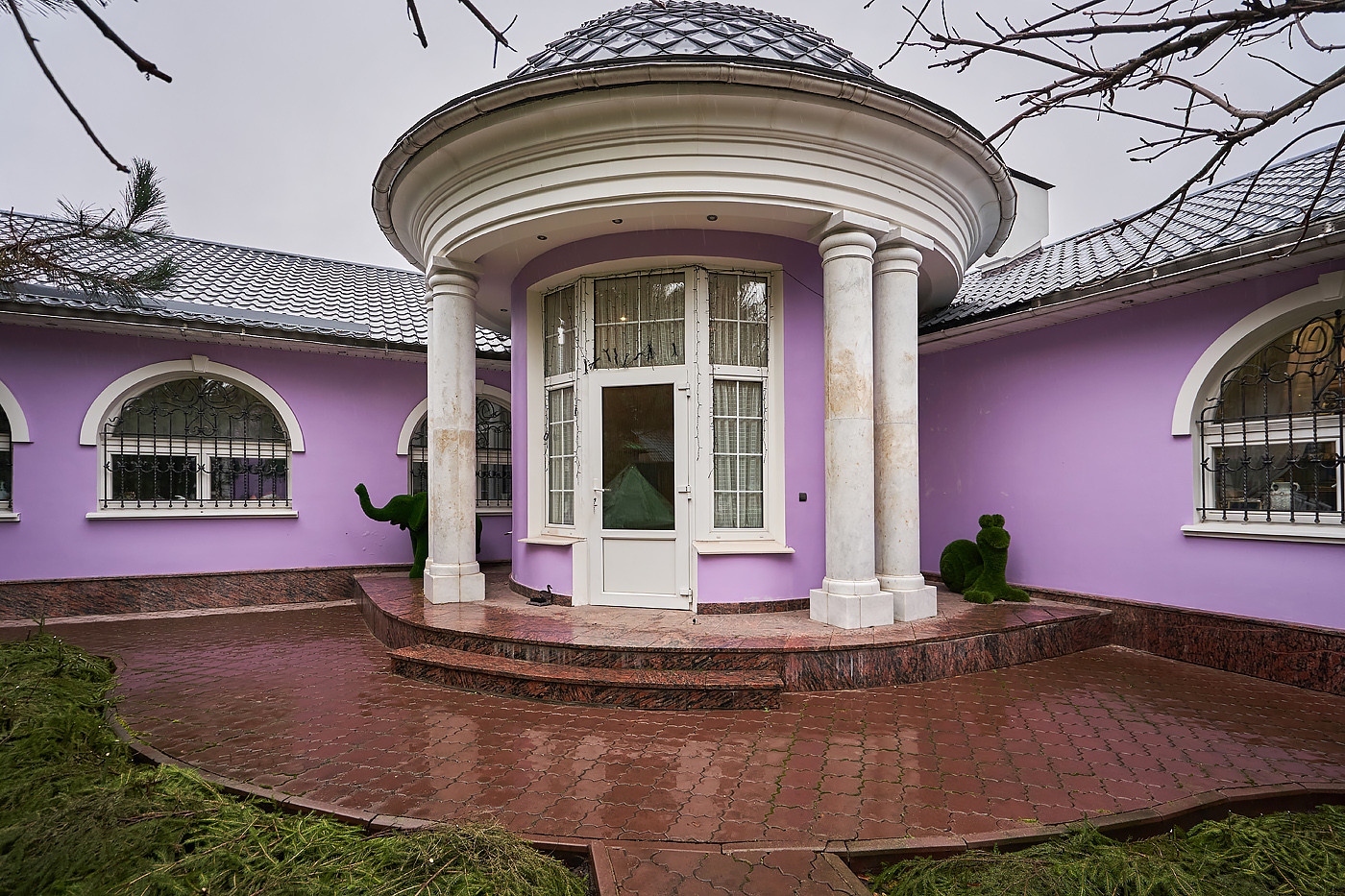 Внутренние интерьеры выполнены в классическом стиле. Двери фирмы "Мекран", лестницы премиум класса из натурального дерева, дубовый паркет, итальянская плитка керамогранит, финские деревянные арочные окна, бронированные двери фирмы "Belca" и тд. Установлены кондиционеры, система очистки и умягчения воды, вентиляционная система для обслуживания бассейна, котельная с газовыми котлами De Dietrich, автоматические гаражные ворота, установлена система автоматического полива газонов и клумб.