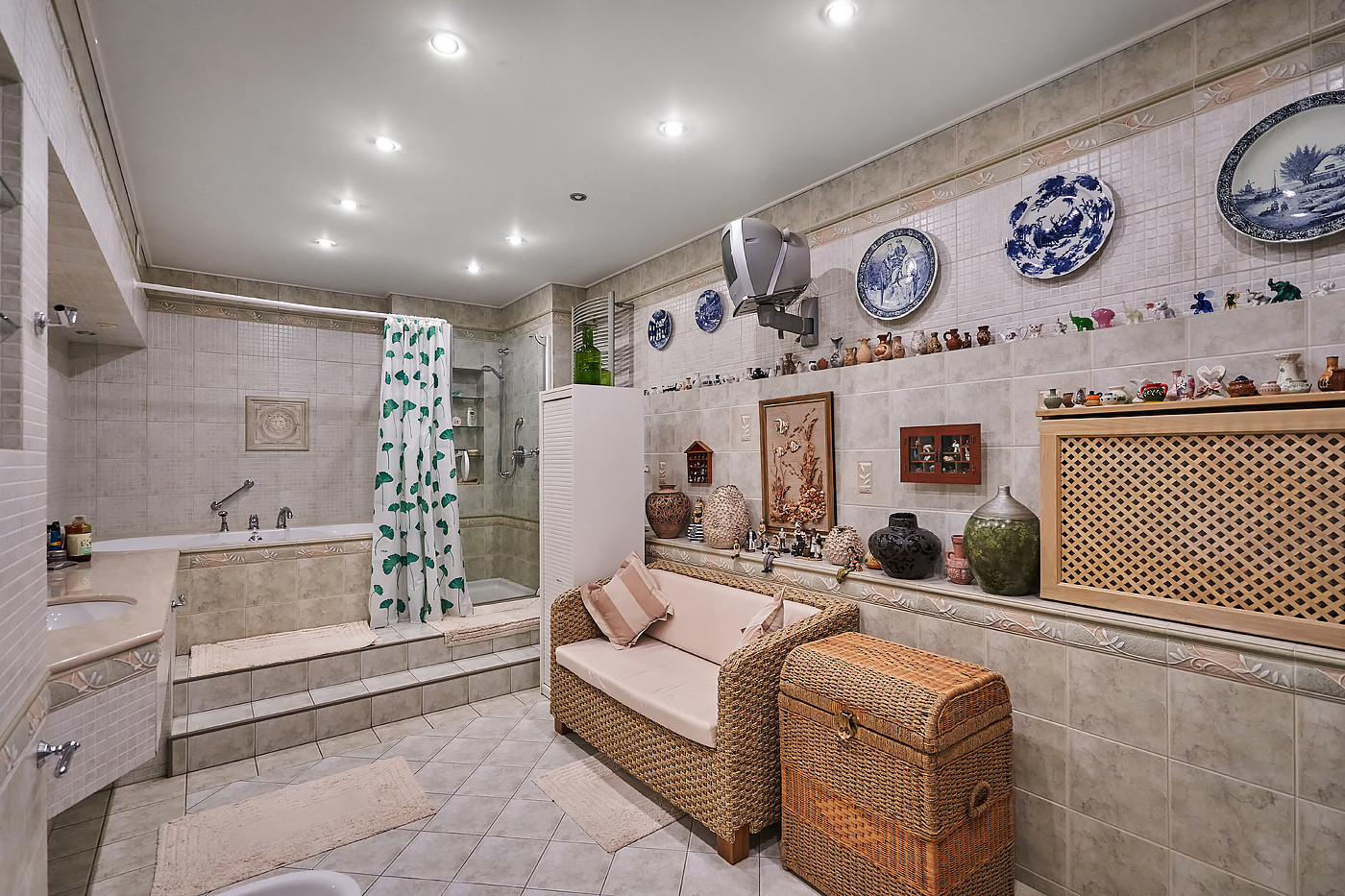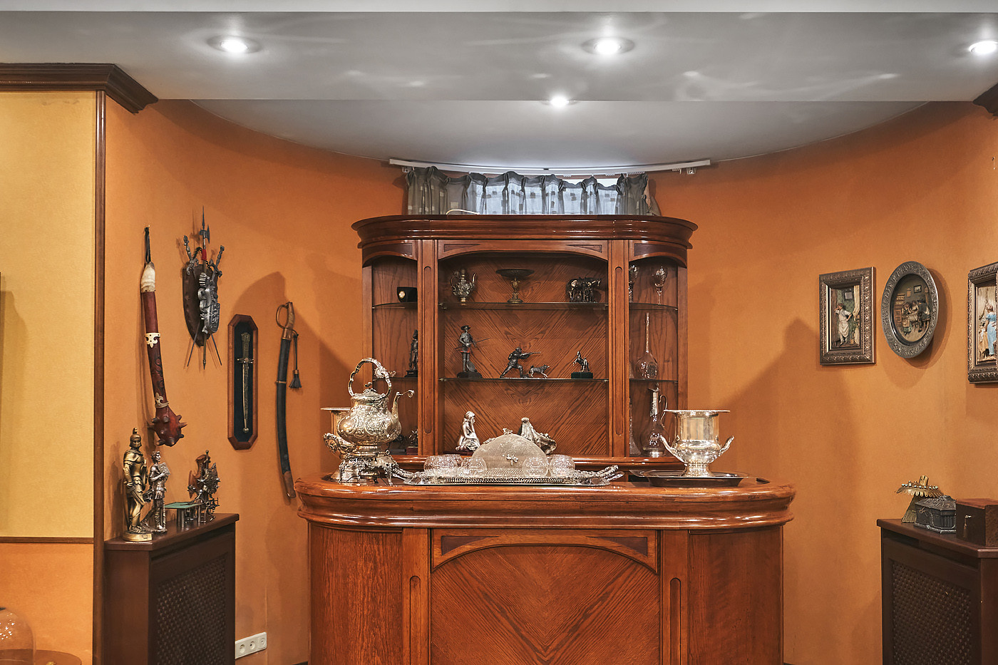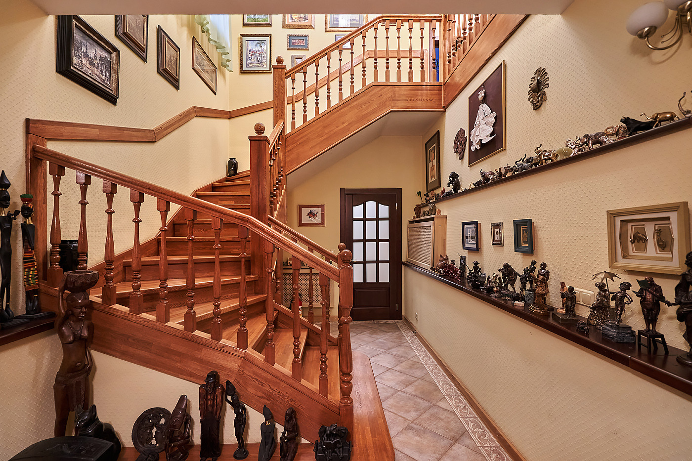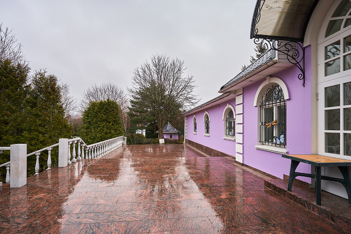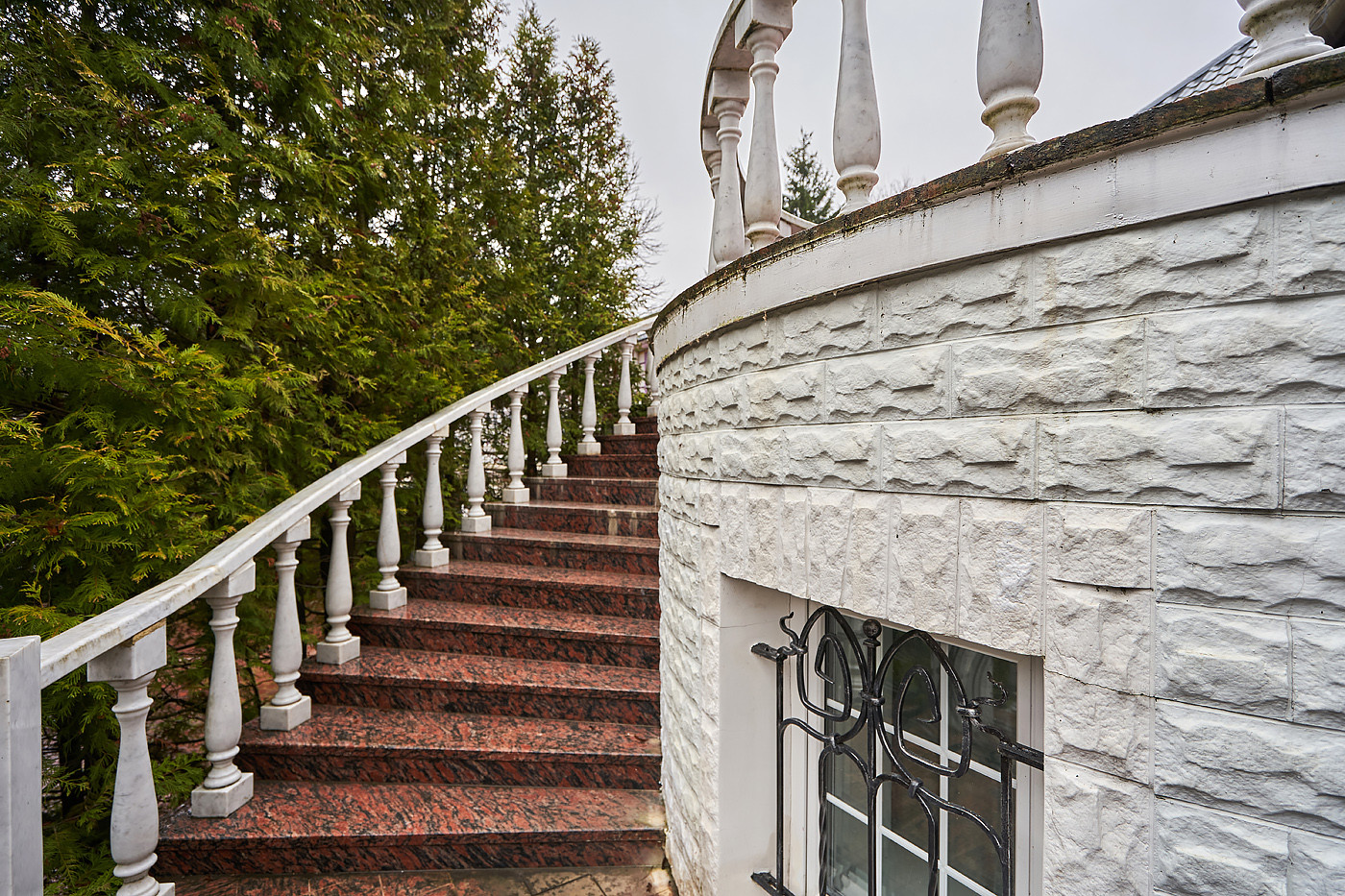 Внутренние интерьеры выполнены в классическом стиле. Двери фирмы "Мекран", лестницы премиум класса из натурального дерева, дубовый паркет, итальянская плитка керамогранит, финские деревянные арочные окна, бронированные двери фирмы "Belca" и тд. Установлены кондиционеры, система очистки и умягчения воды, вентиляционная система для обслуживания бассейна, котельная с газовыми котлами De Dietrich, автоматические гаражные ворота, установлена система автоматического полива газонов и клумб.