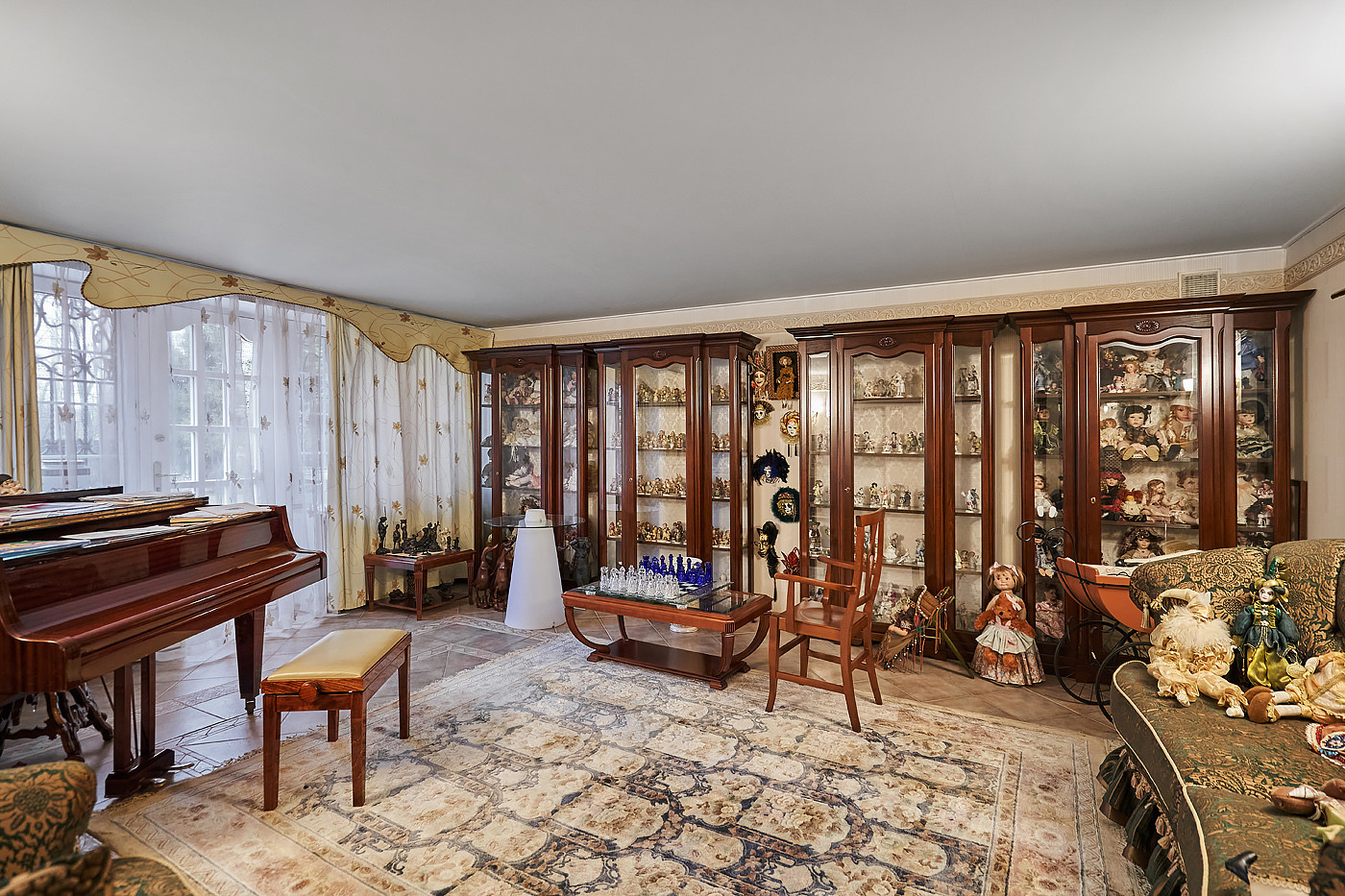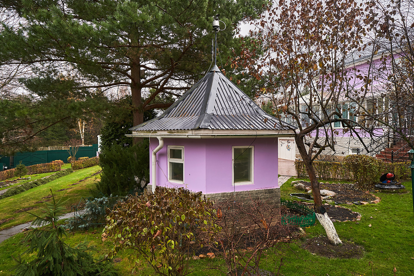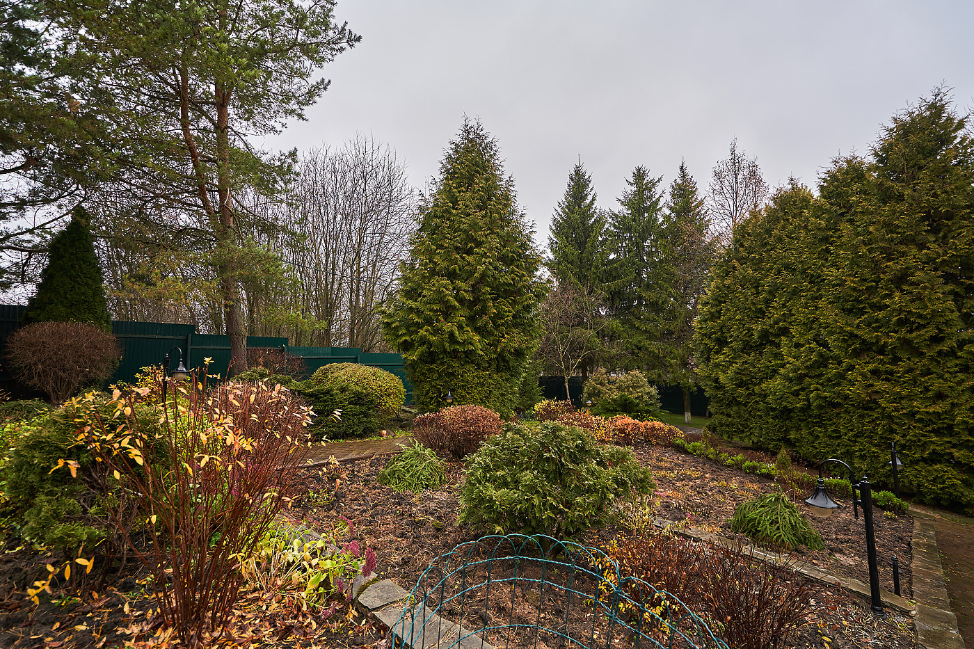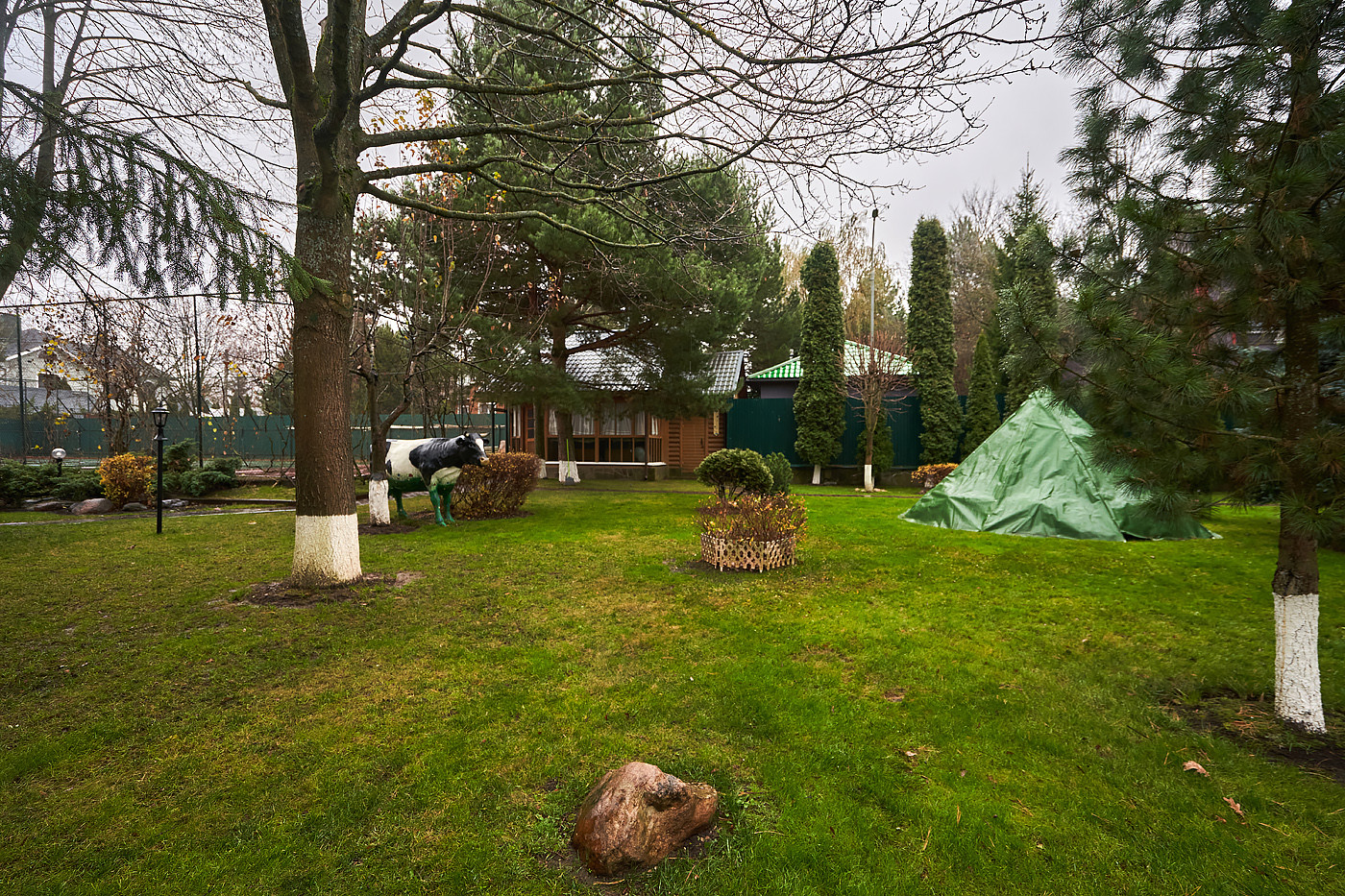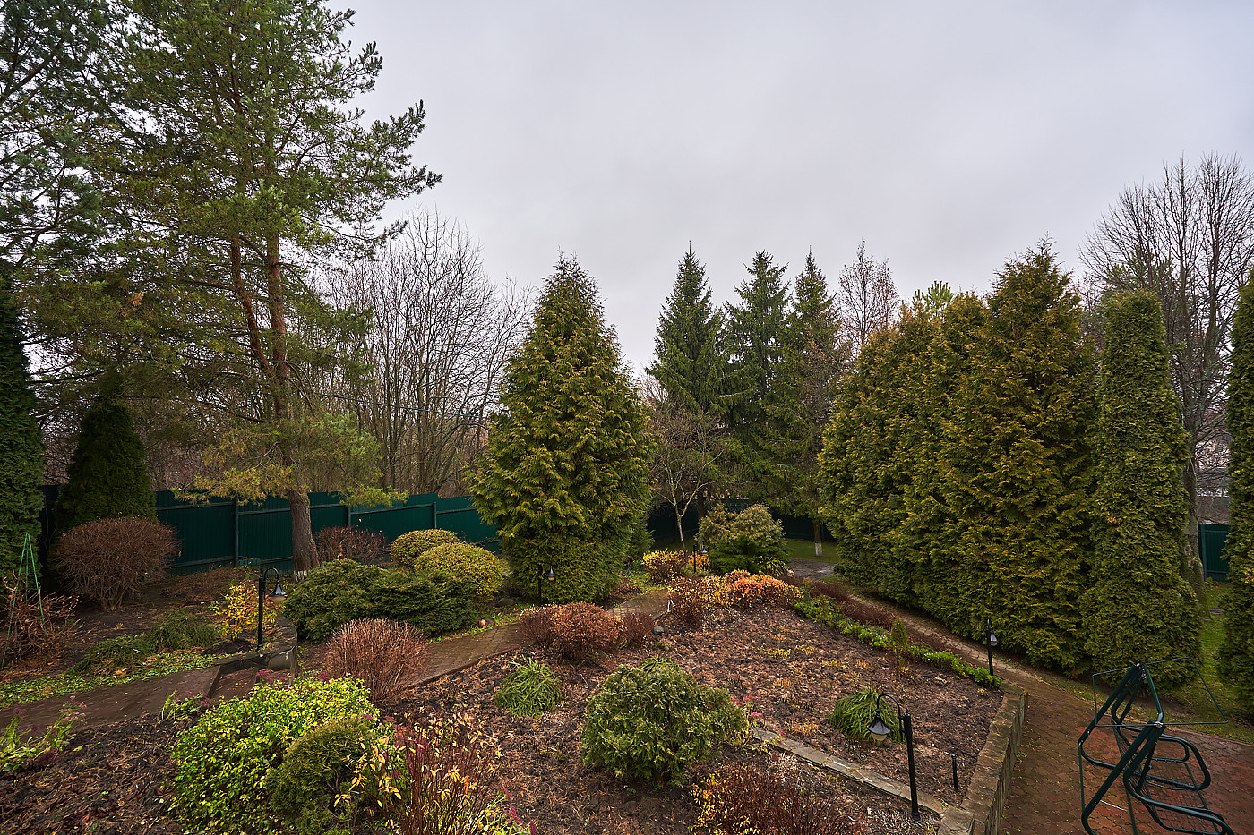 Дом полностью меблирован. Просторная гостиная- столовая с выходом на террасу, кухня, кабинет, холл, гардеробная комната, 3 с/у с душевыми и ванной, помещения технического и бытового назначения; 2 спальни, спортивный зал с бассейном 20 м ( ширина 4, глубина 2.5), библиотека, 3 комнаты отдыха с музыкальным залом, бильярдной и комнатой в китайском стиле с выходами в сад. Липовая аллея, дорожки с освещением, вдоль которых посажено 200 кустов роз необкновенной красоты, вековой дуб, фонтан и декоративный прудик, итальянский дворик.