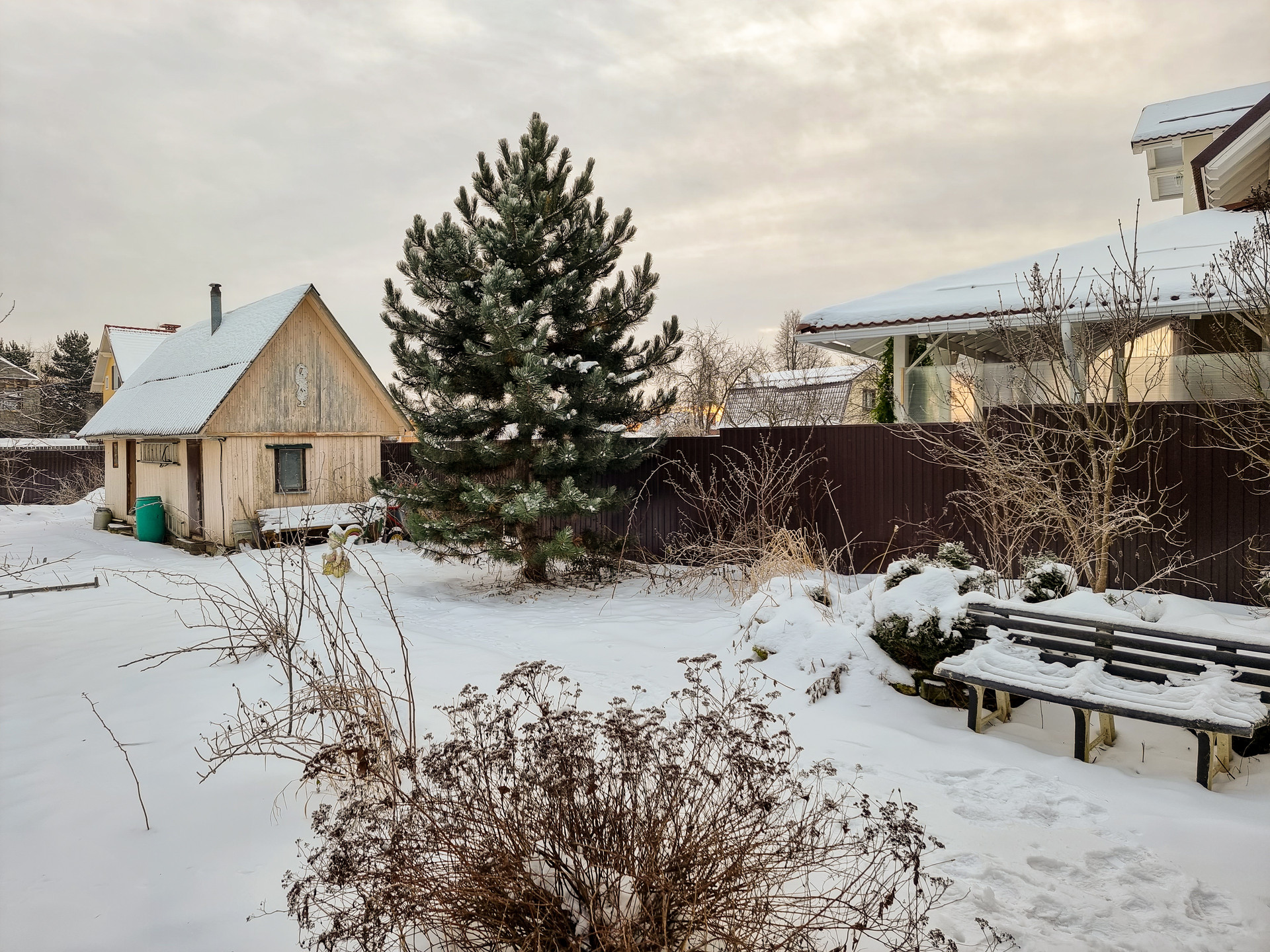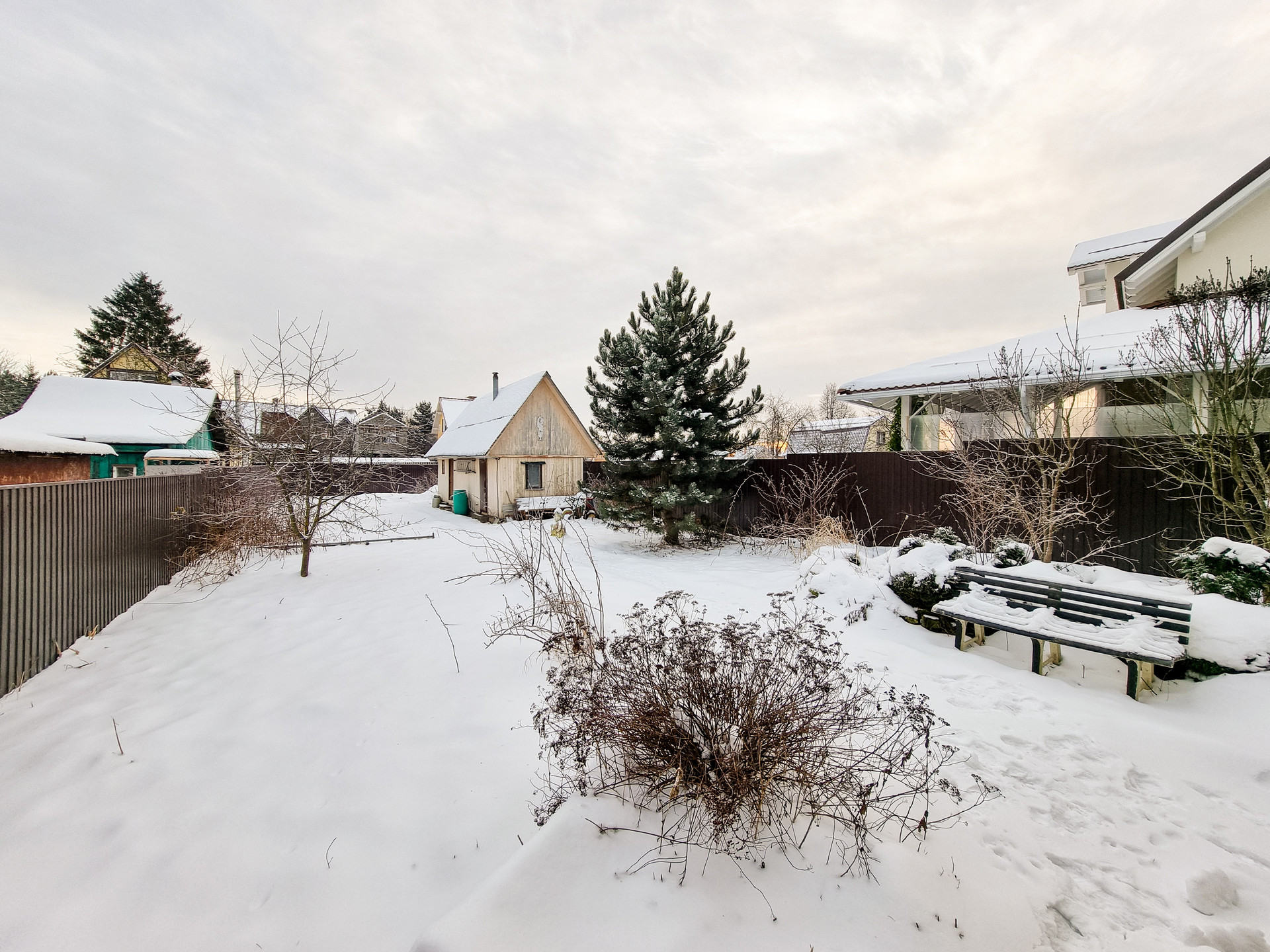 Участок ухожен, много плодовых деревьев и кустарников. В тёплый сезон зелено и красиво.