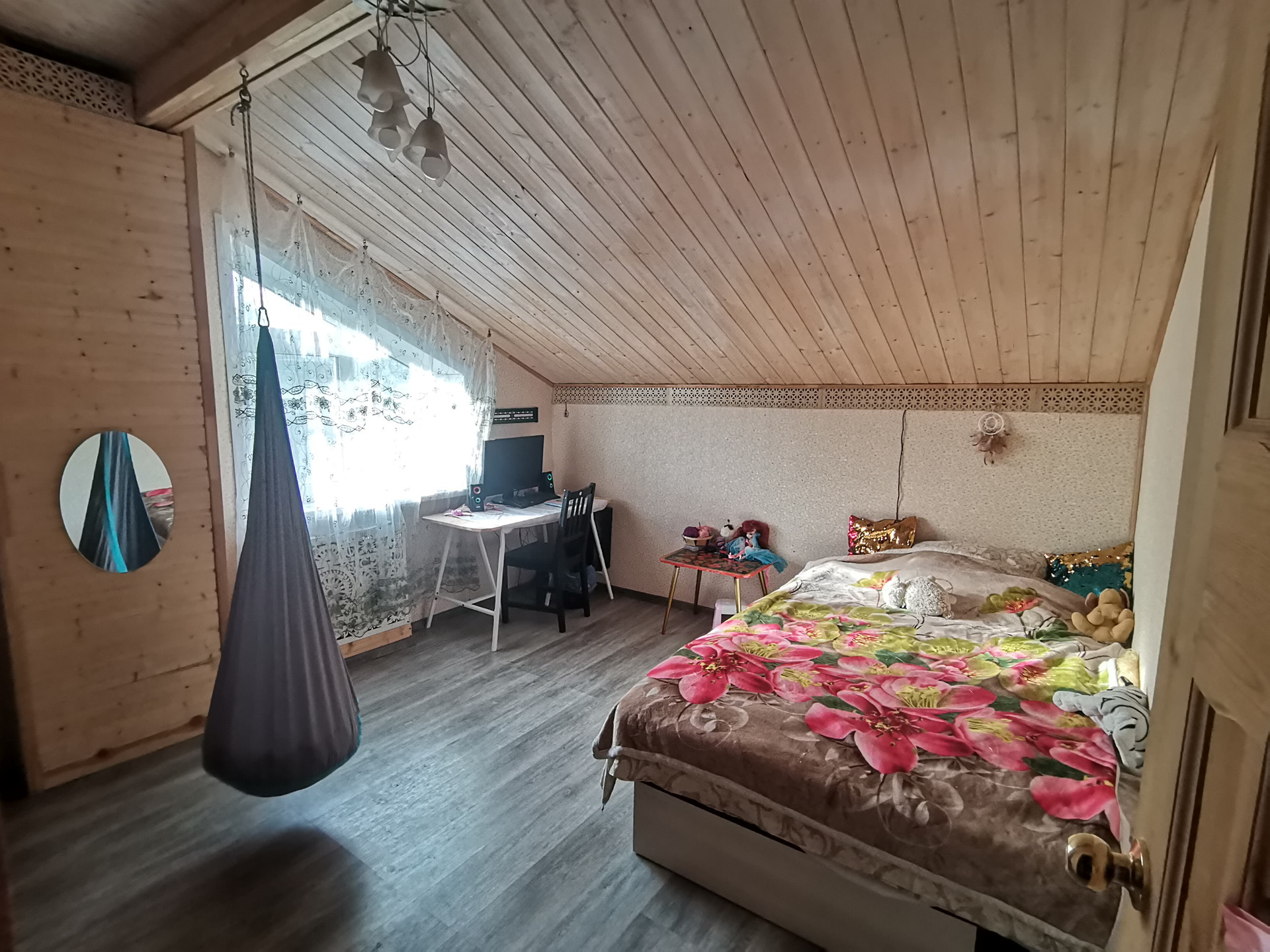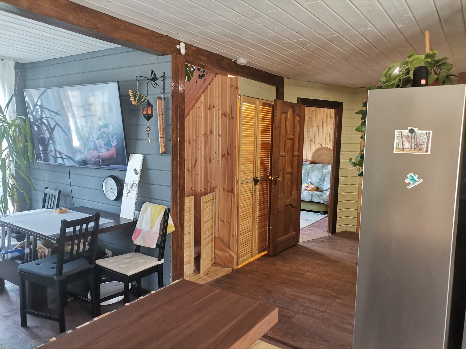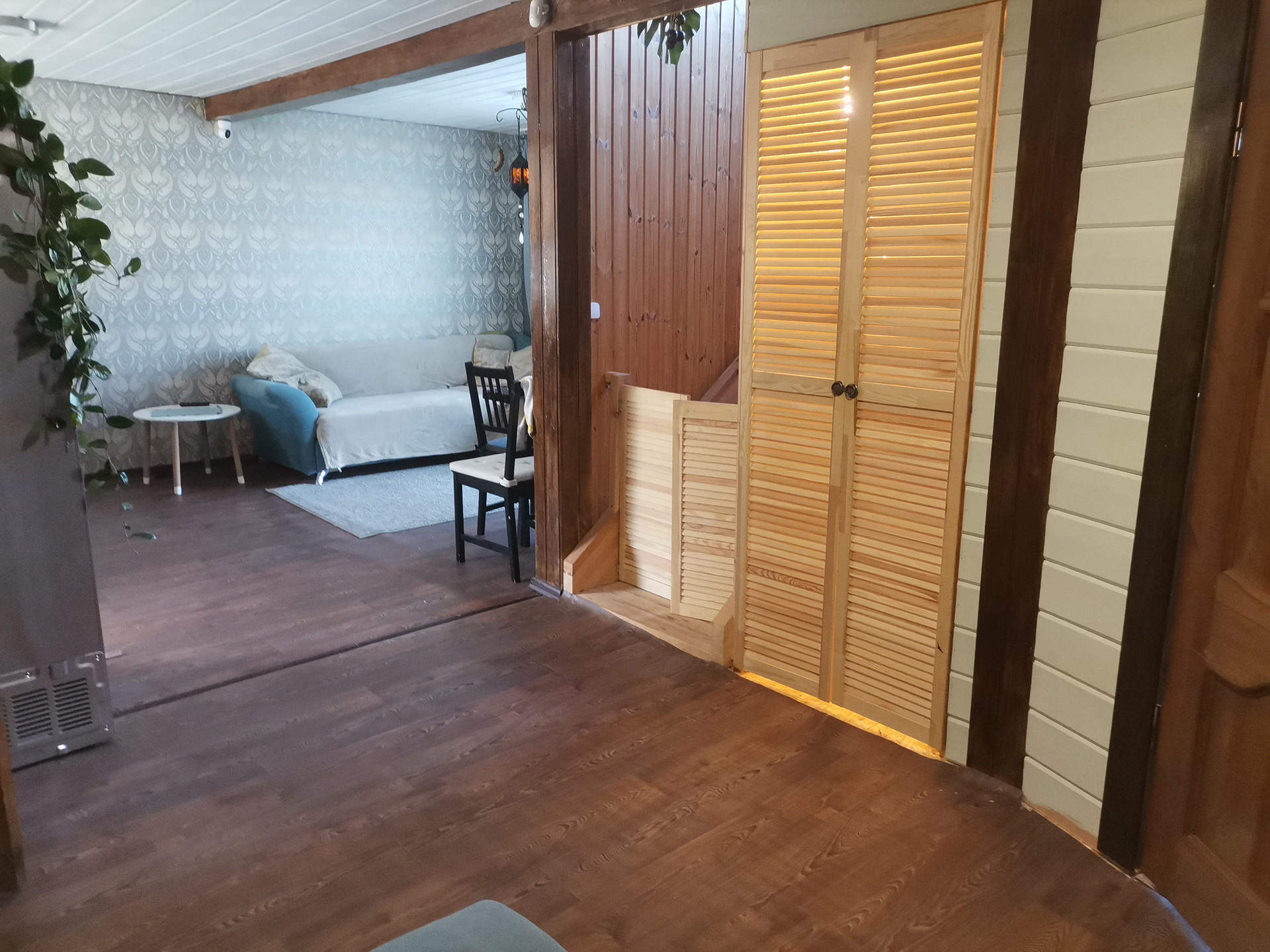 Кухня-гостиная 28 метров, с выходом на веранду. Детская игровая ( кабинет или гостевая). Туалет, прачечная. Просторная прихожая. Большая кладовка и шкаф. Под лестницей организовано место для хранения