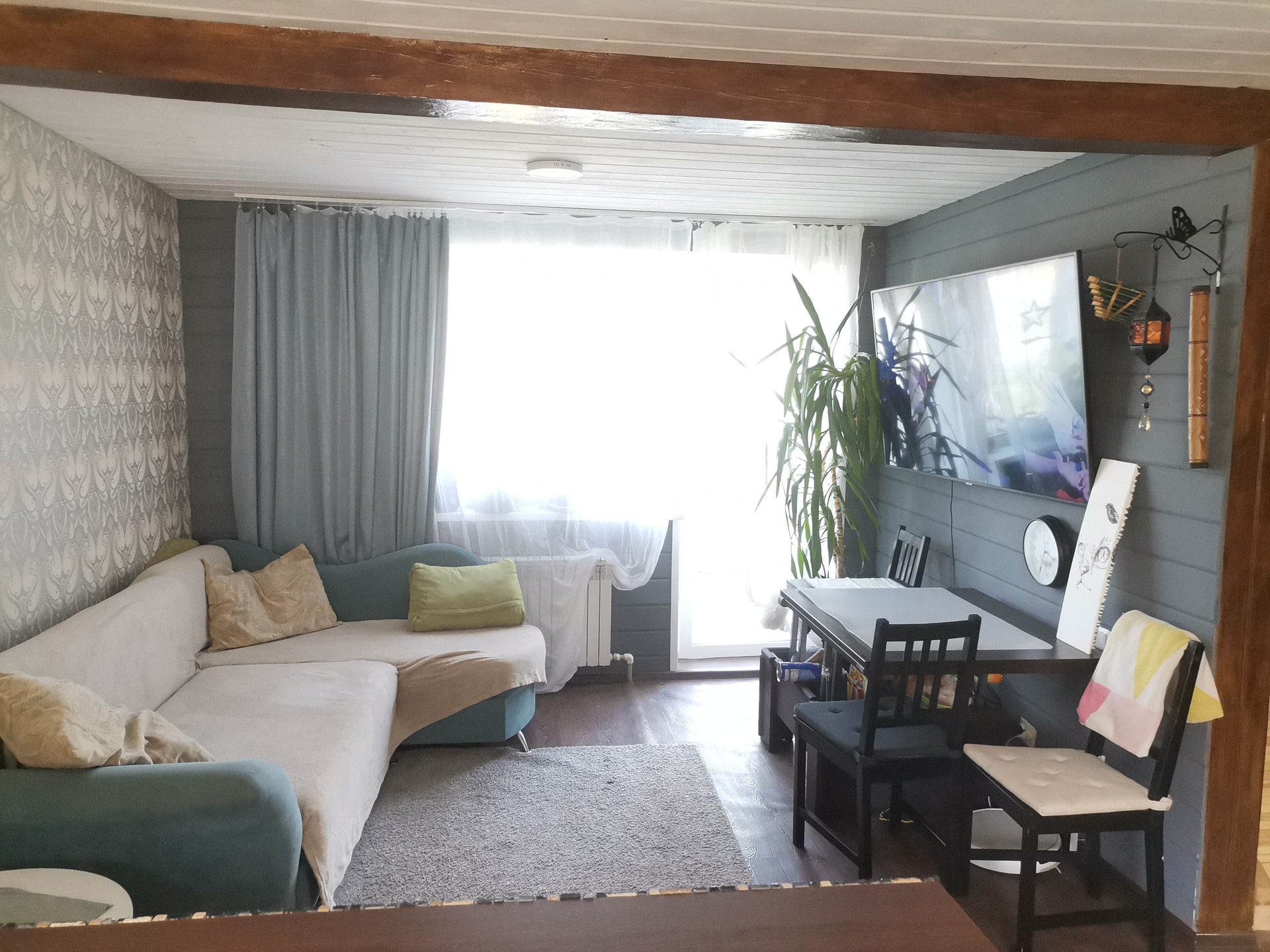 Застекленная веранда и деревянная терасса.