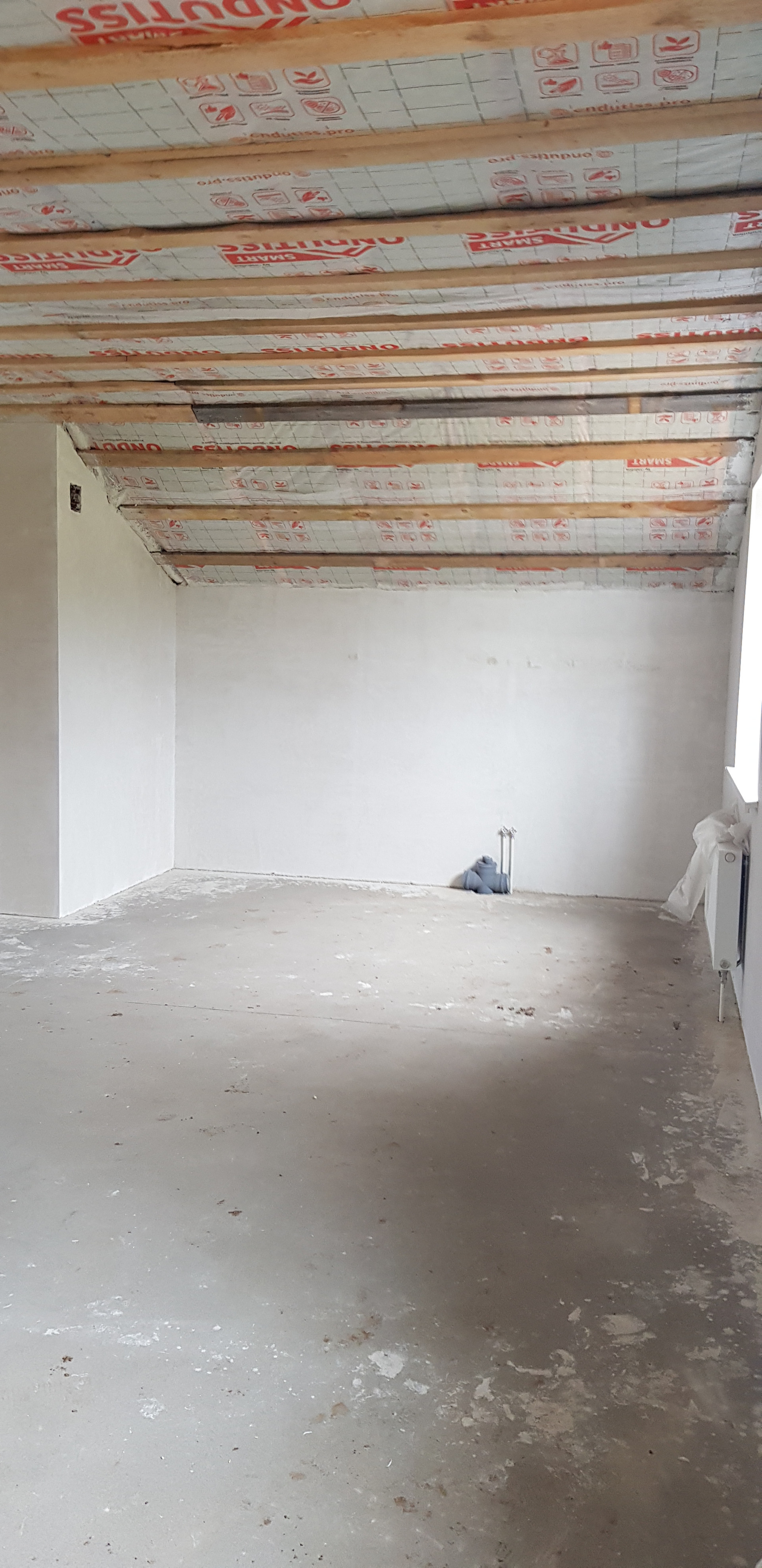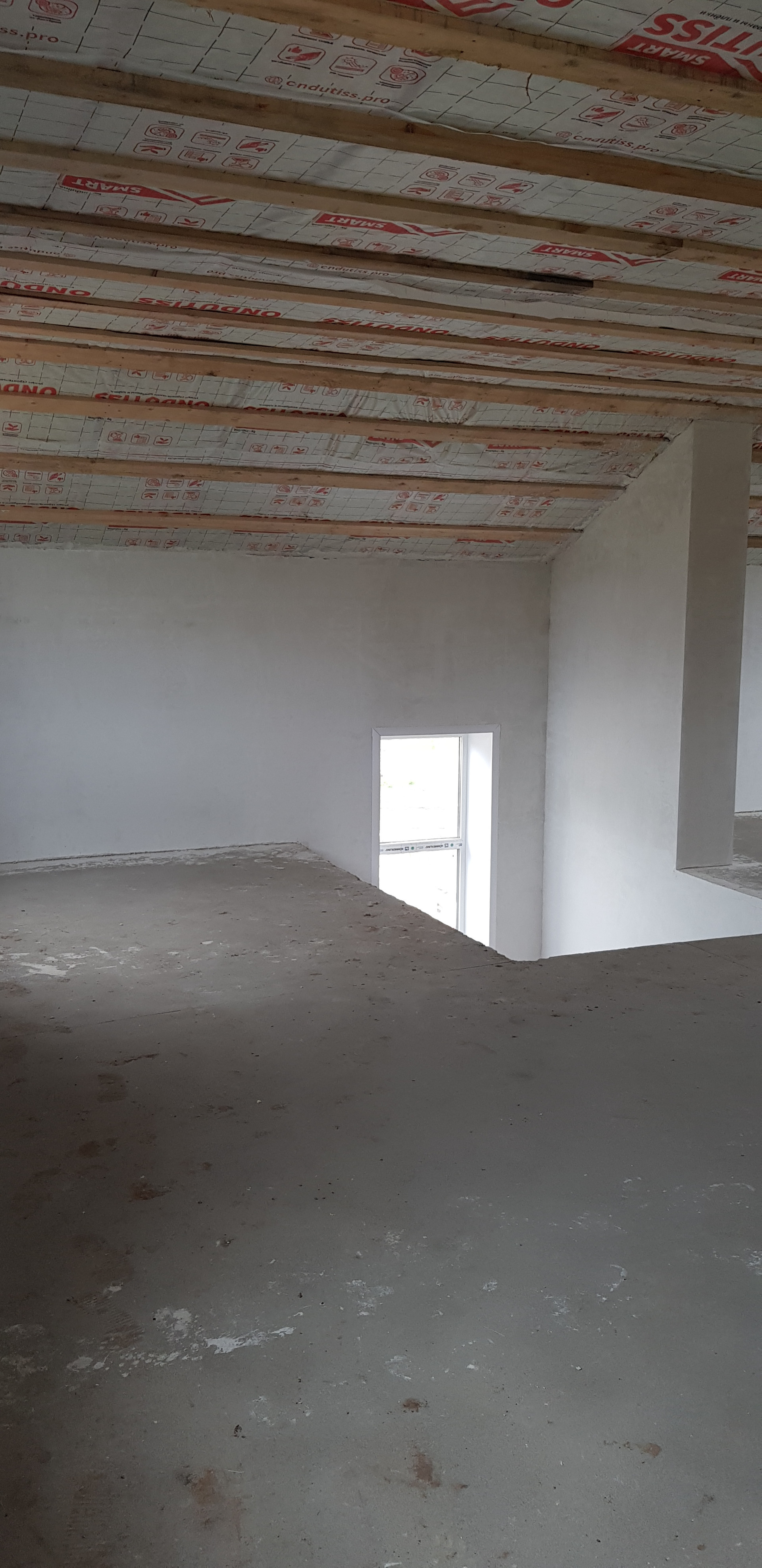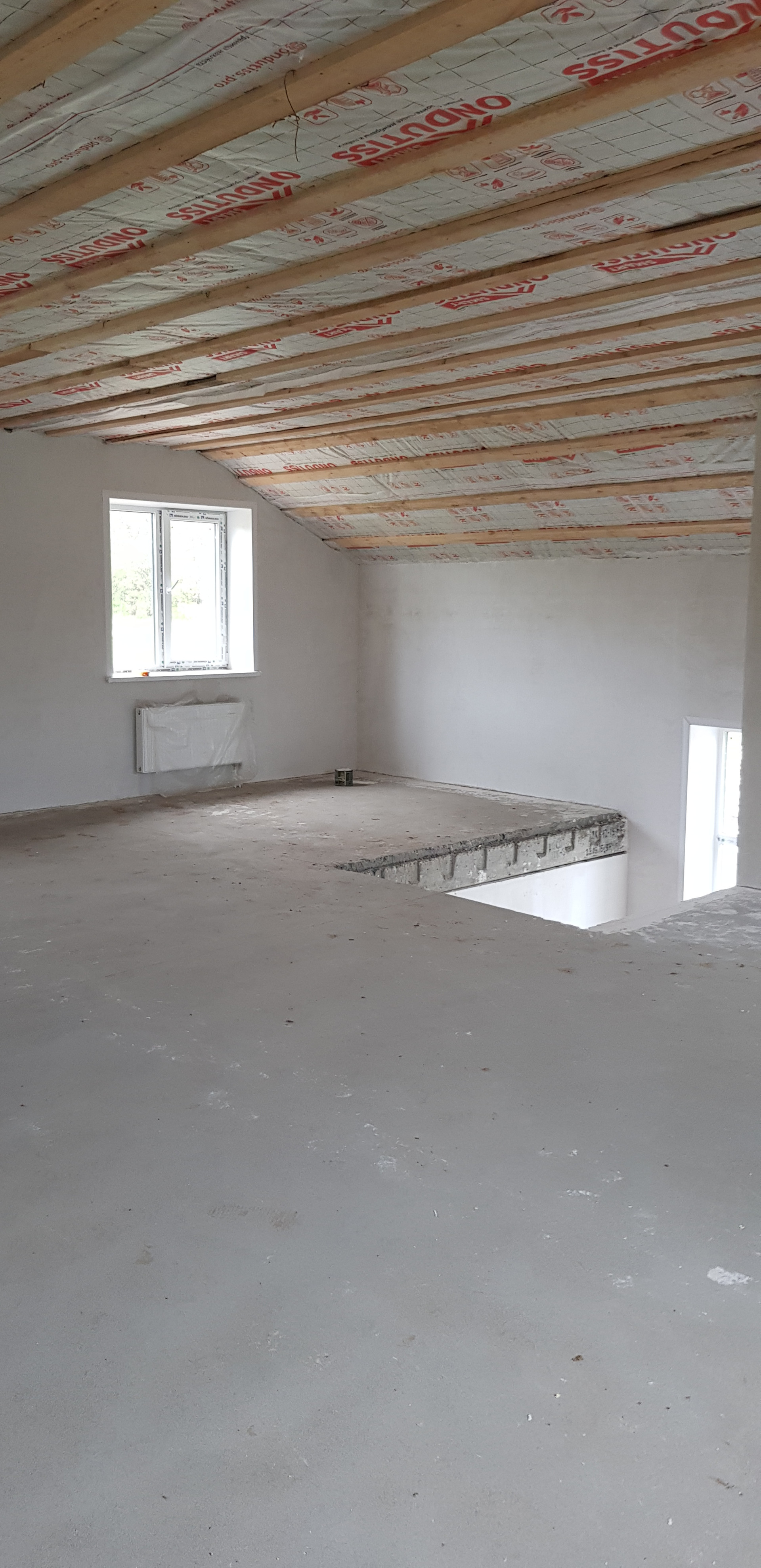 На втором этаже площадь свободная под ваши желания: можно разместить 3 комнаты и с/узел с окном (коммуникации под с/узел подведены)