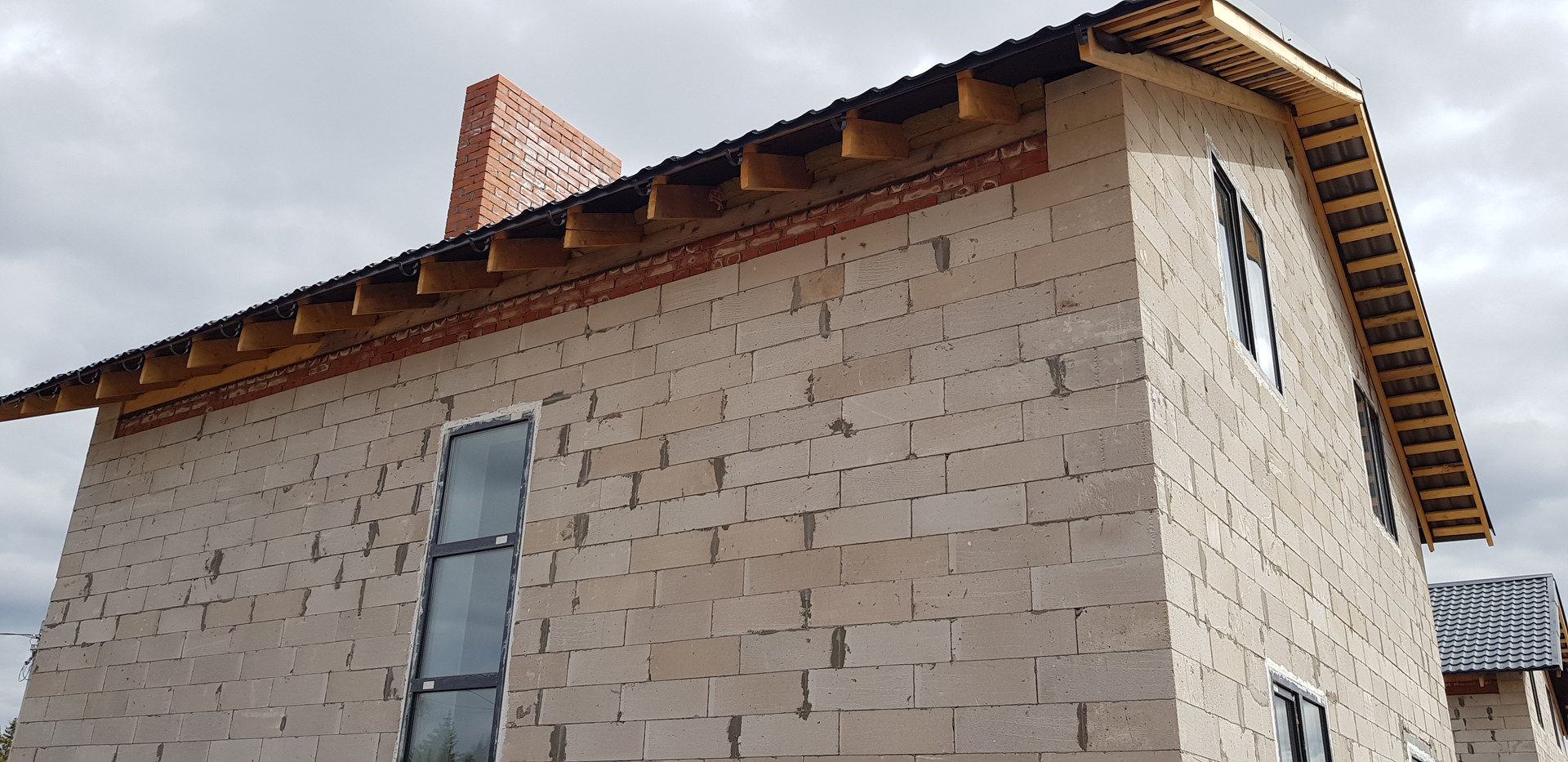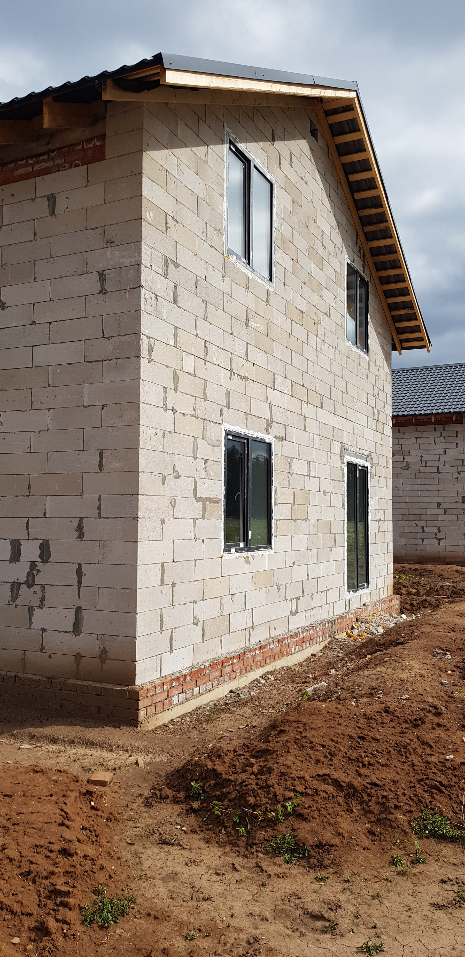 2. Стены несущие: автоклавный газобетон ПЗСП, толщина блока 400мм, метод укладки- на клей, армирование- каждые 3 ряда металлической арматурой d8мм.