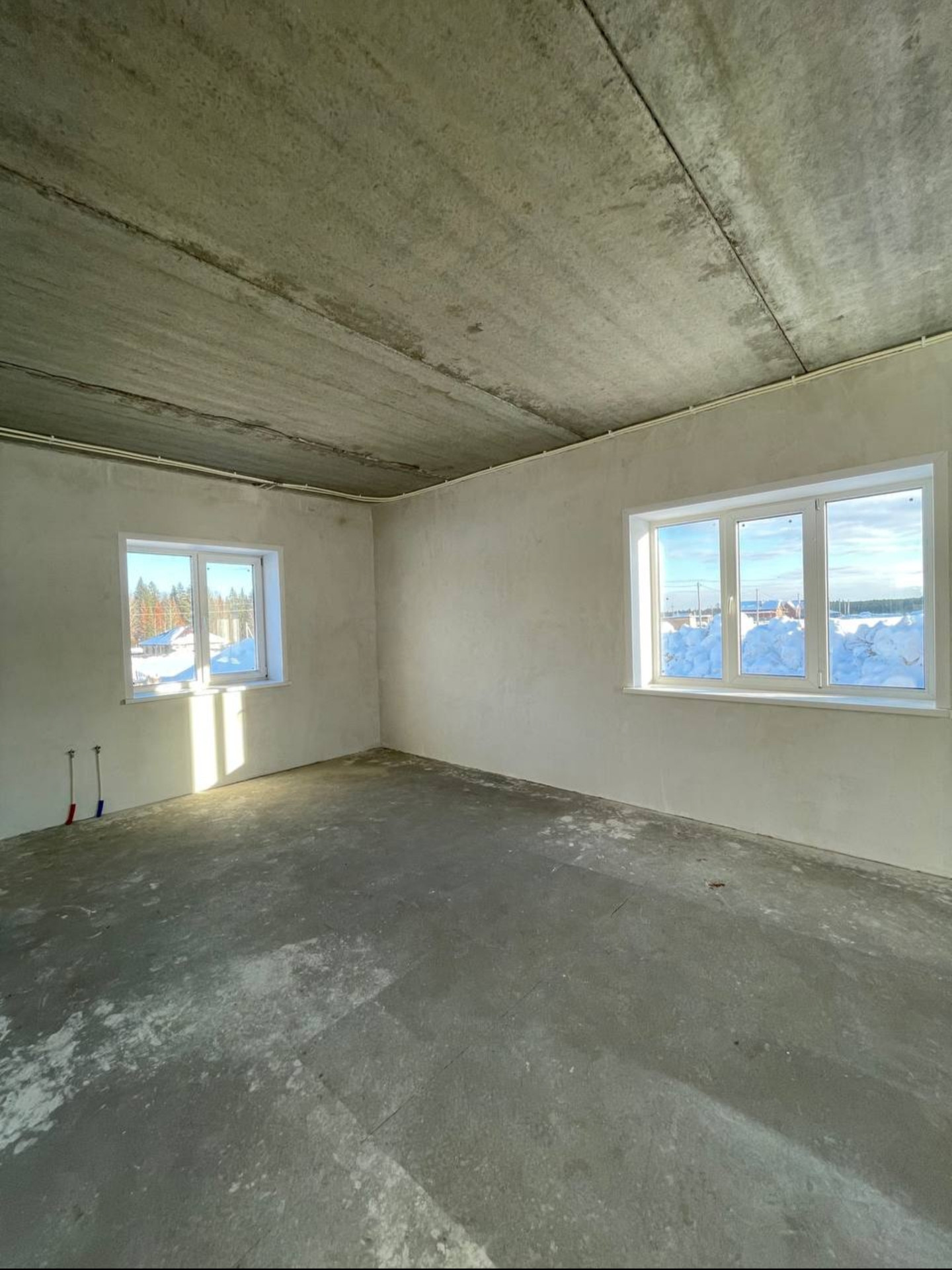 Перегородки выделены на первом этаже: просторная кухня-гостиная 35 кв.м, спальня, прихожая, с/узел, котельная