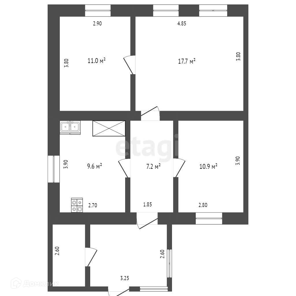 Общая площадь 56.9 м2