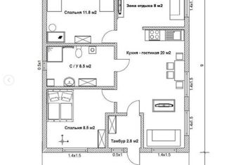 Общая площадь: 60 м2