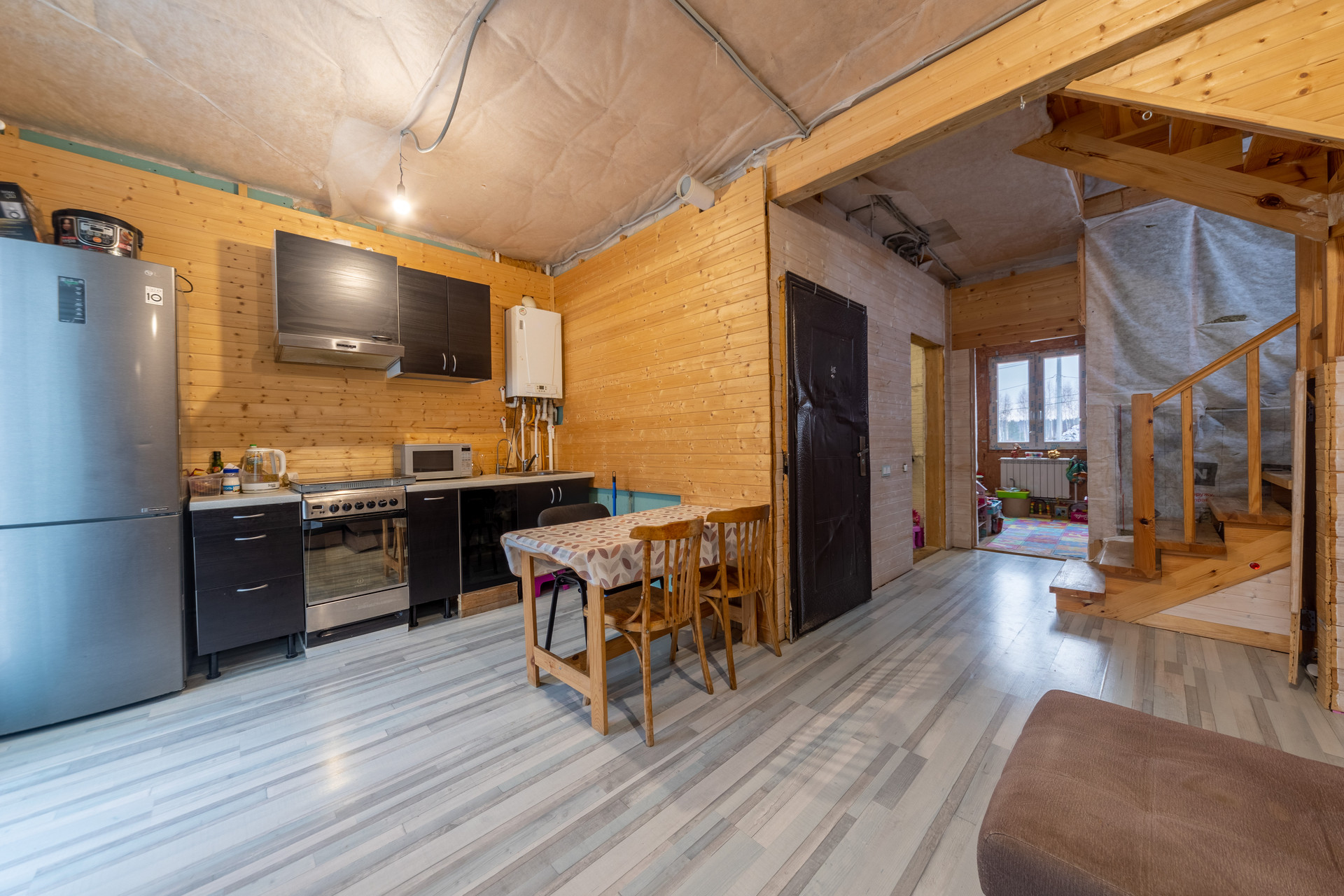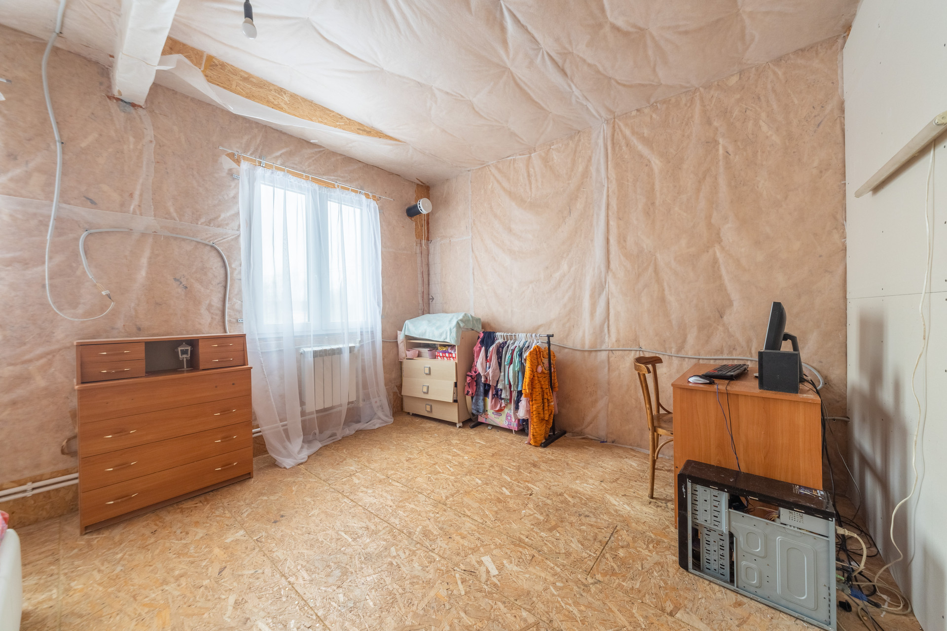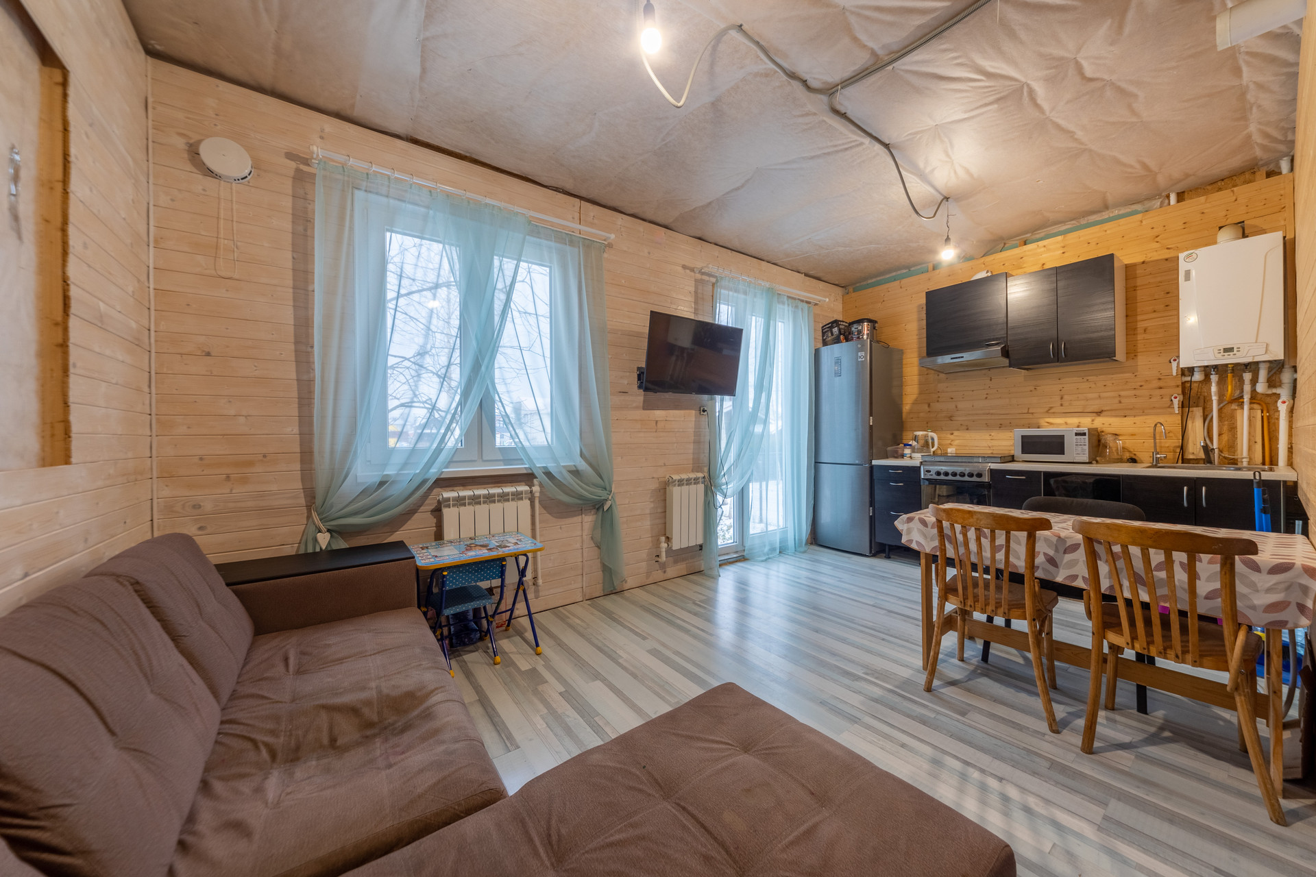 В доме сделан частичный ремонт: произведены черновые работы, полностью сделана кухня-гостиная, разведены все инженерные системы (вода, электричество, отопление). Требуется косметический ремонт спален. Дом пригоден для проживания в текущем состоянии. Можно заехать жить и параллельно доделывать ремонт.