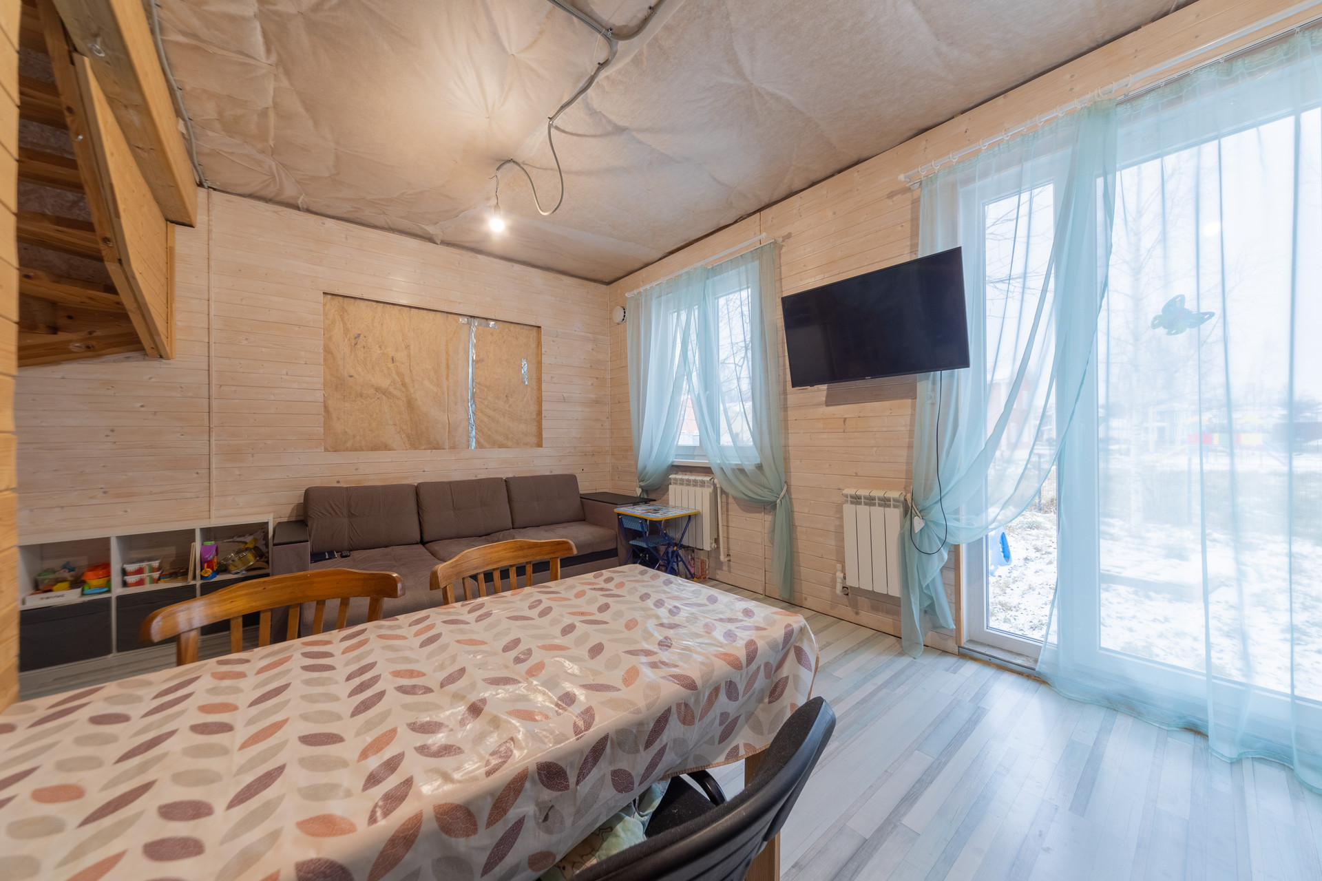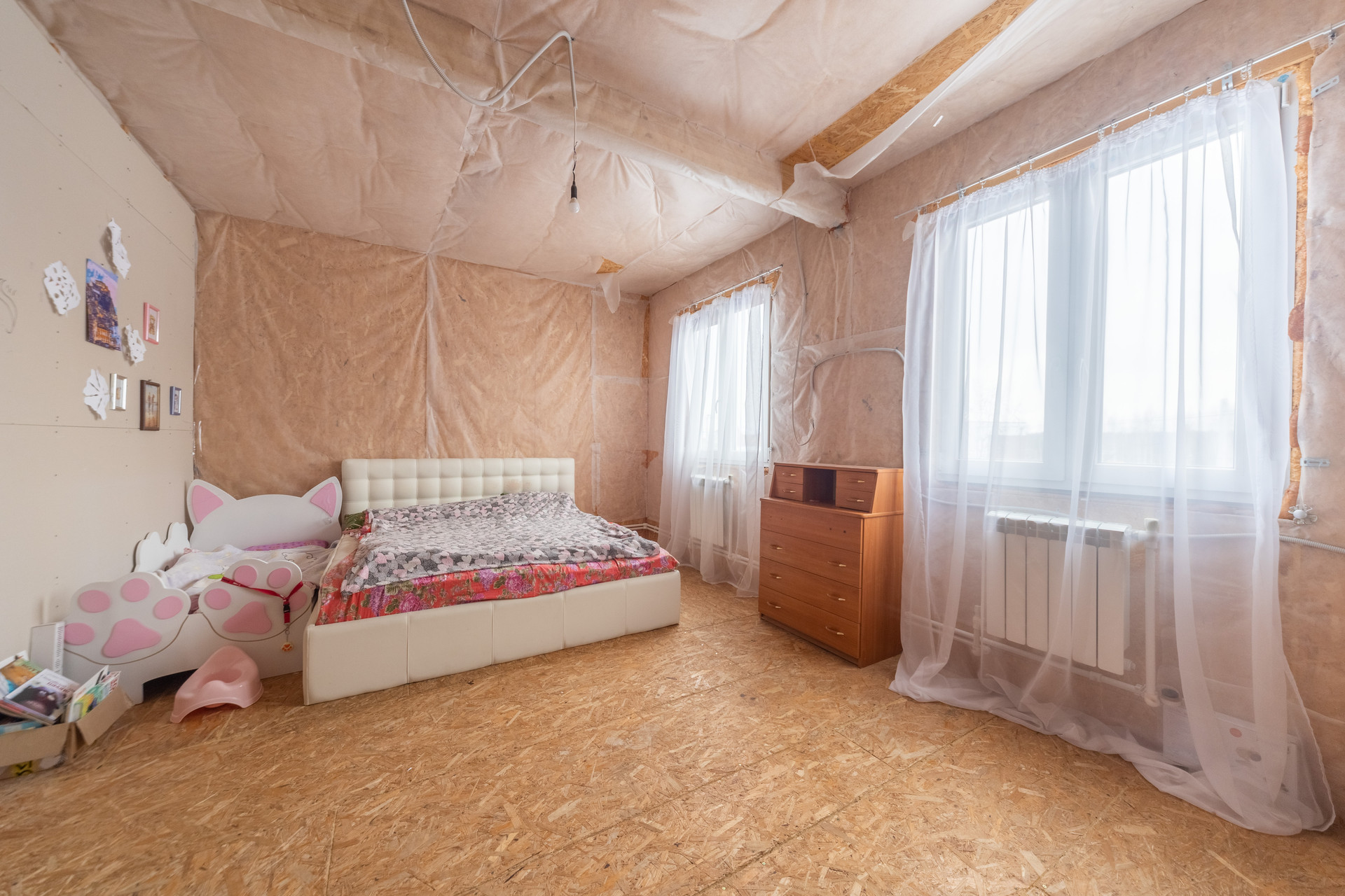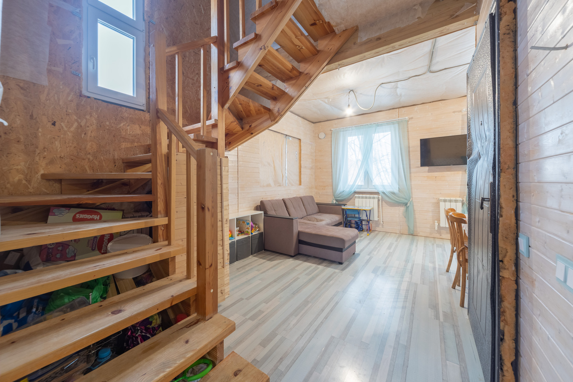 В доме сделан частичный ремонт: произведены черновые работы, полностью сделана кухня-гостиная, разведены все инженерные системы (вода, электричество, отопление). Требуется косметический ремонт спален. Дом пригоден для проживания в текущем состоянии. Можно заехать жить и параллельно доделывать ремонт.