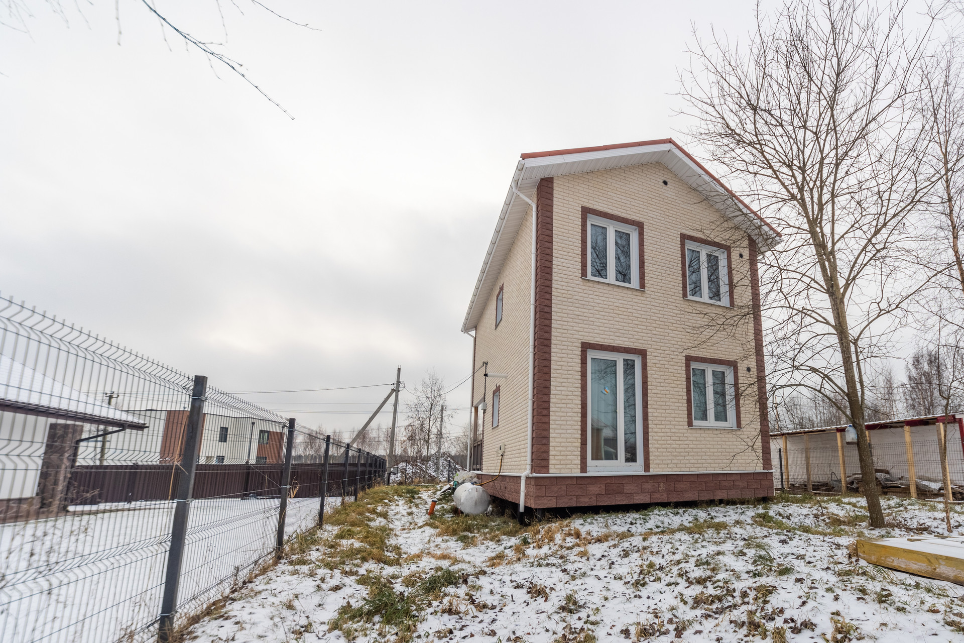 Общая площадь дома – 95,5 м2. Земельный участок – 366 м2. Два санузла. Вода - городской водопровод, электричество разведено по всему дому, газгольдер, проводной интернет, утепленные трехкамерные окна, парковка на два автомобиля.