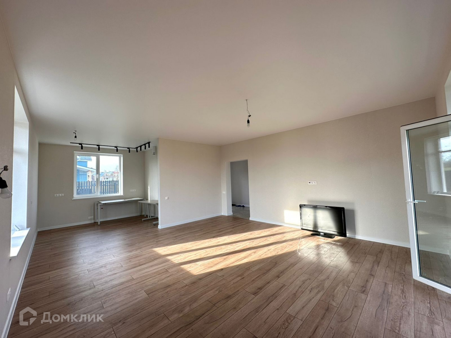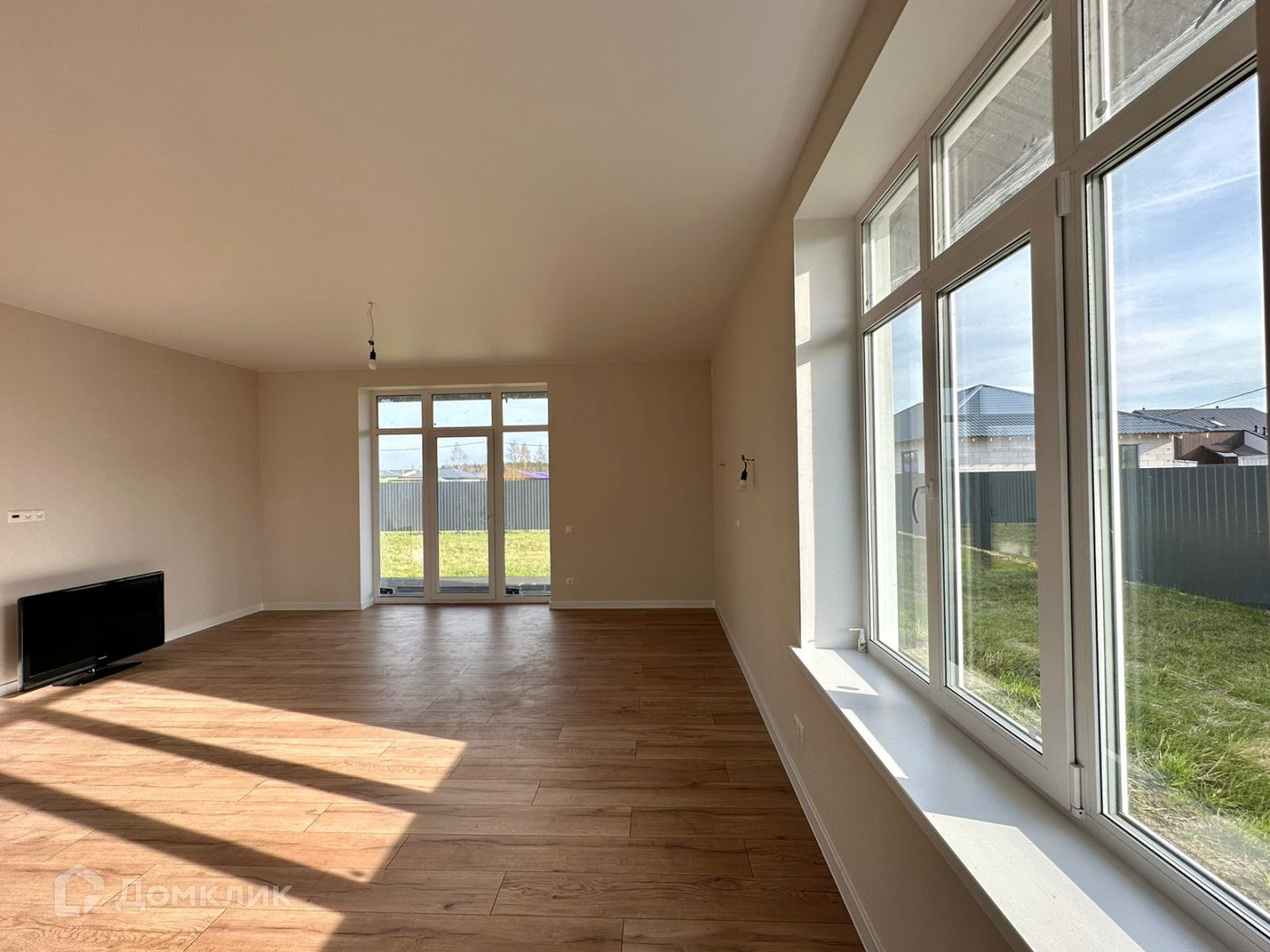 Просторная очень светлая кухня-гостиная с панорамными окнами. Из кухни-гостиной выход на террасу.