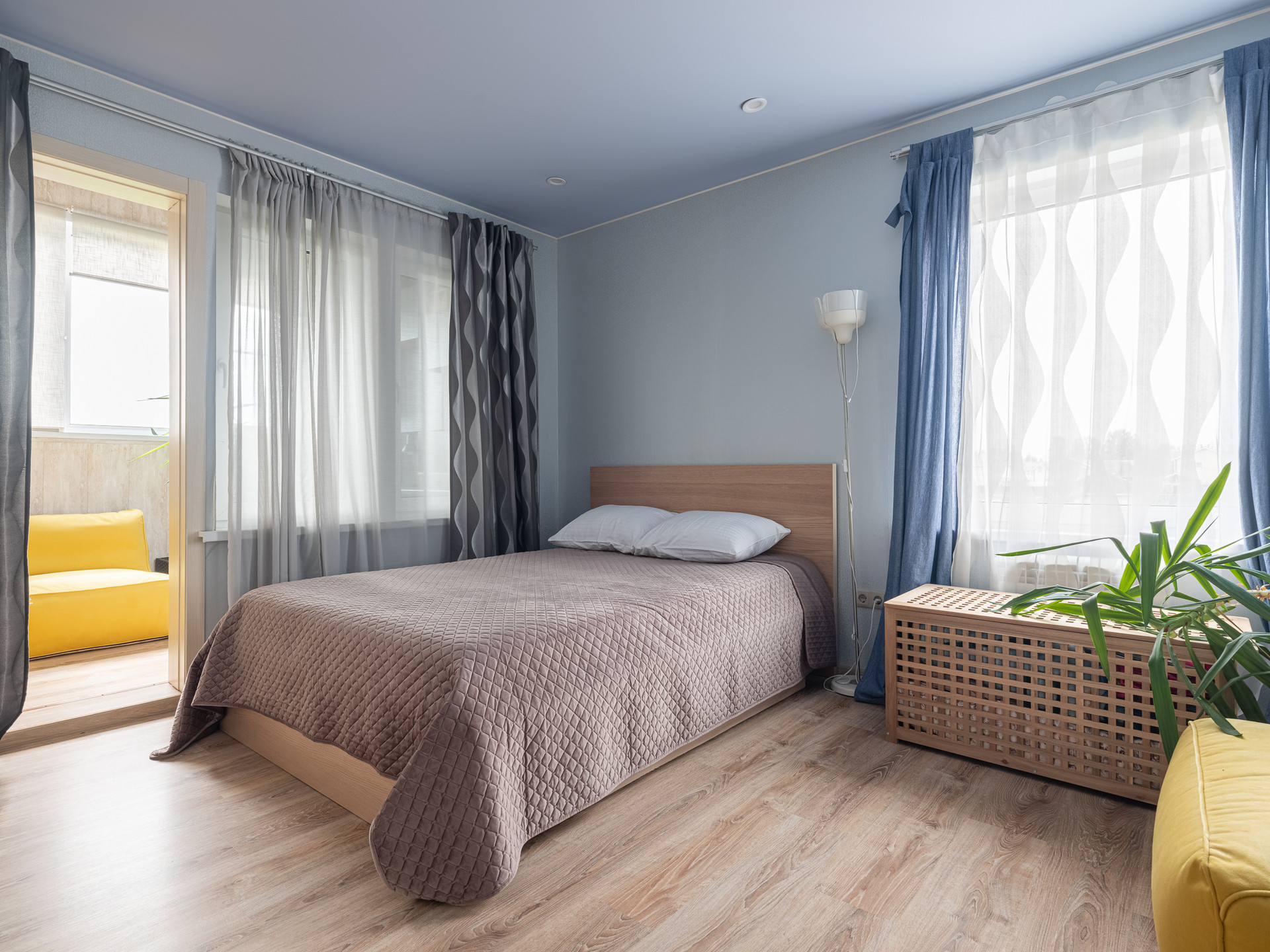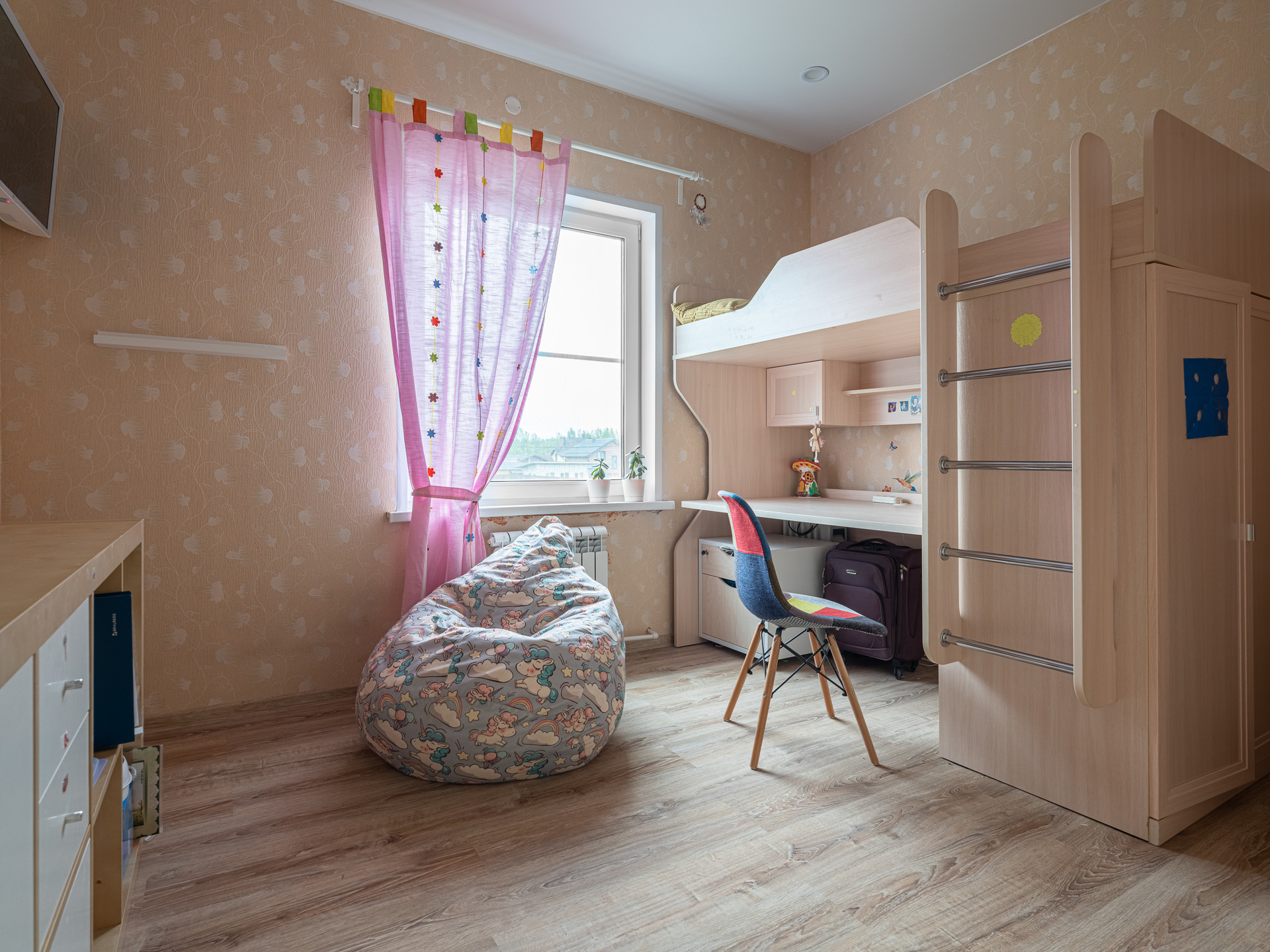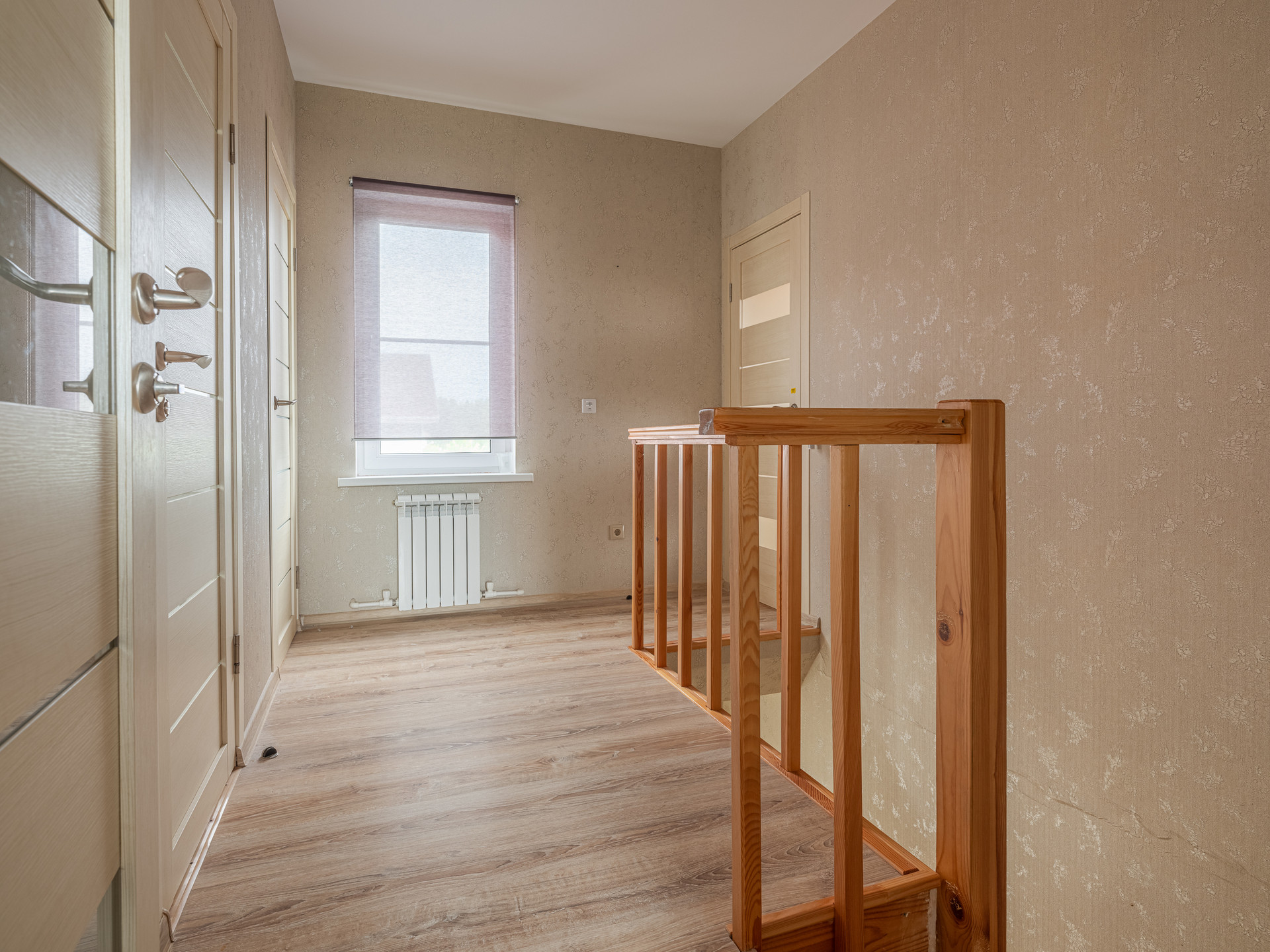 На 2 этаже: 2 спальни, кладовая, сан. узел с ванной. Балкон утеплен и сделан рабочий кабинет. 1 спальня с гардеробной для родителей, 1 спальня детская.