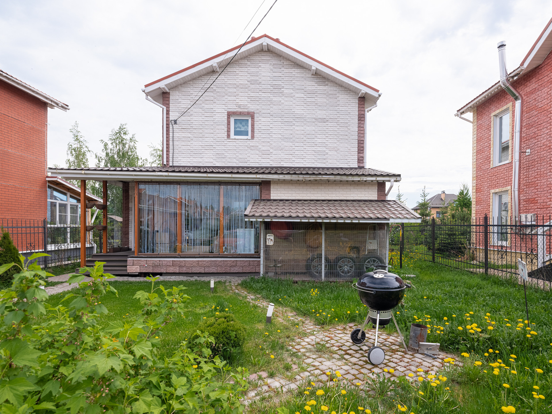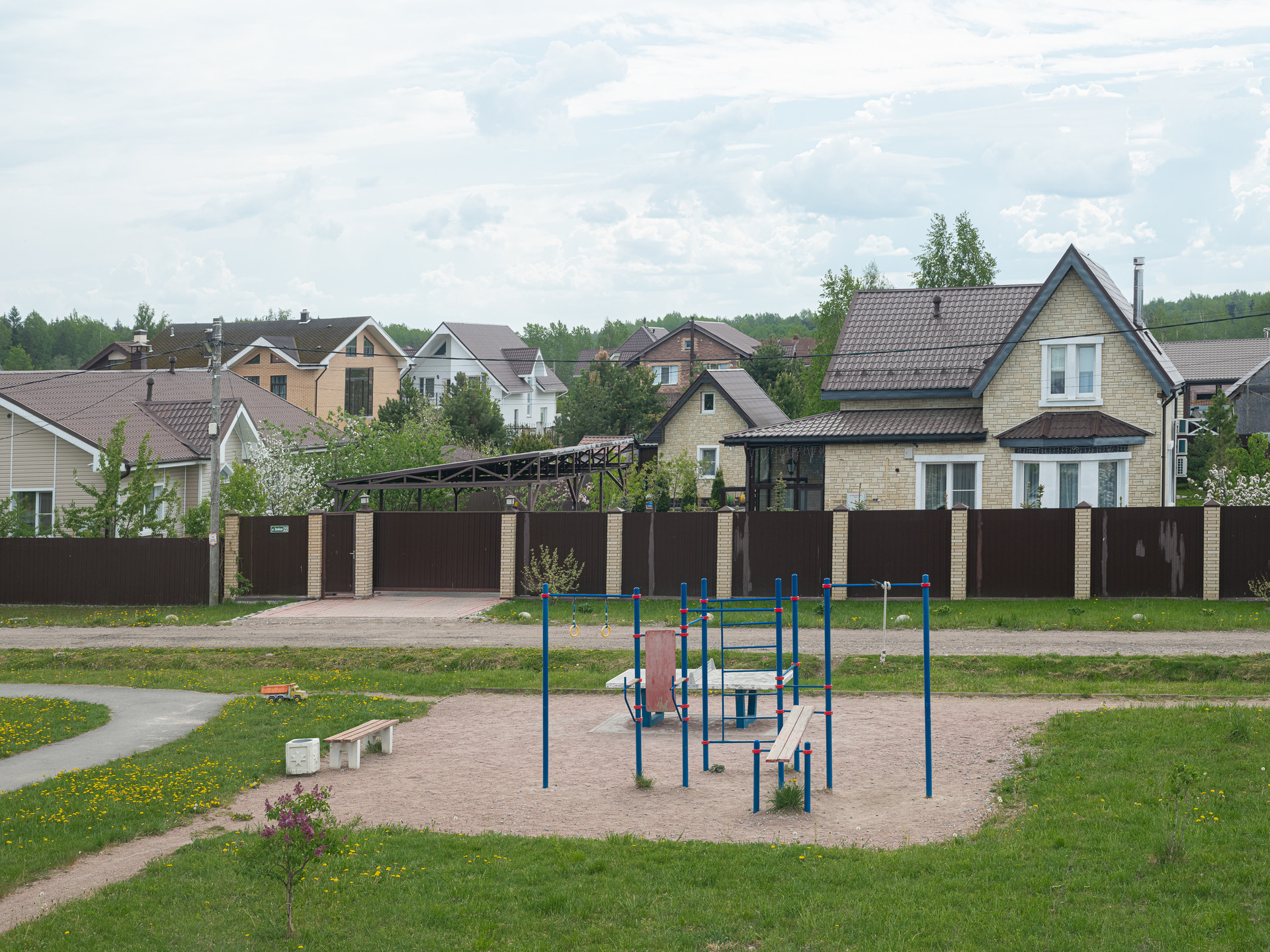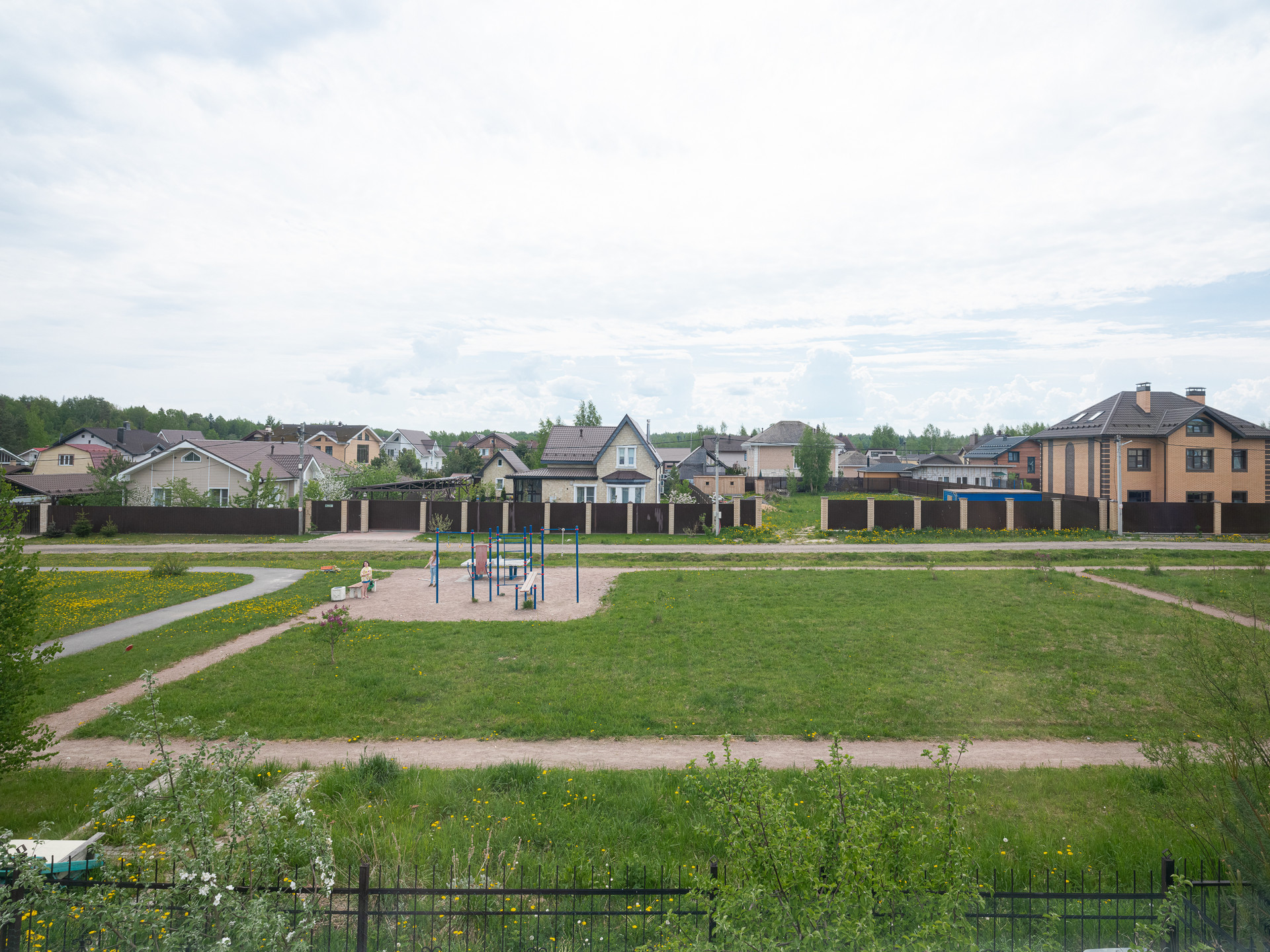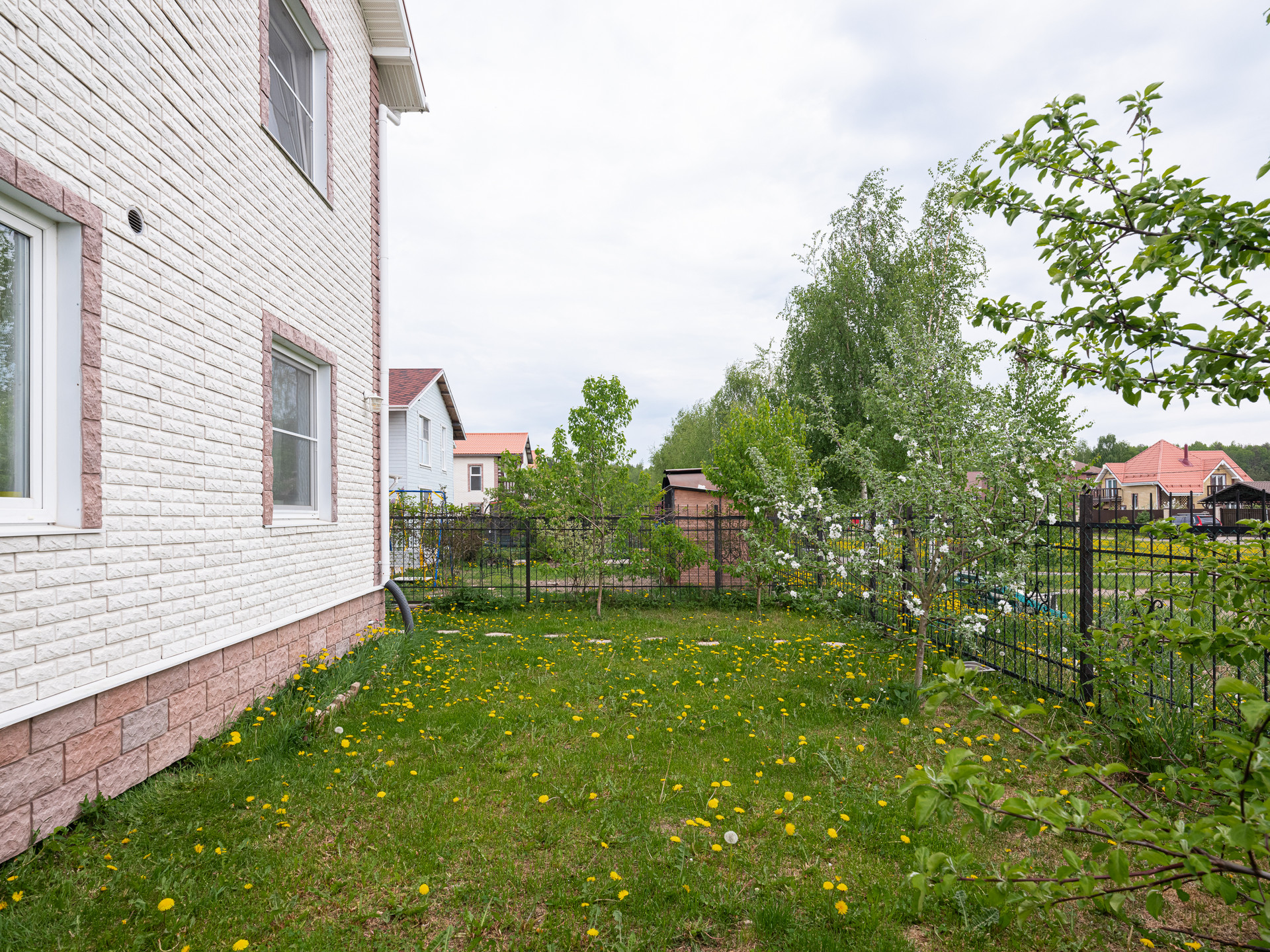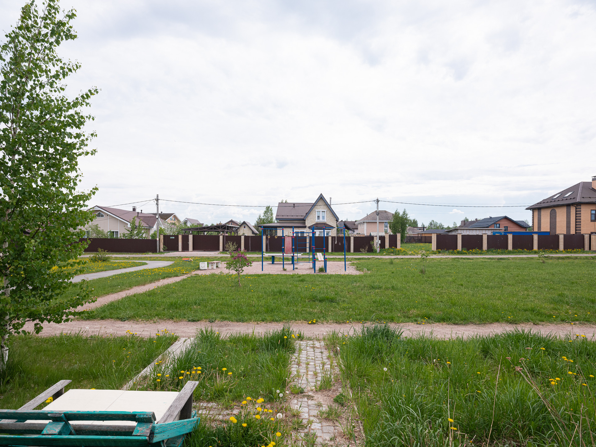 Рядом с домом находится зеленая зона с детской площадкой и спортивной площадкой. Есть выход из участка прям к этой зоне.