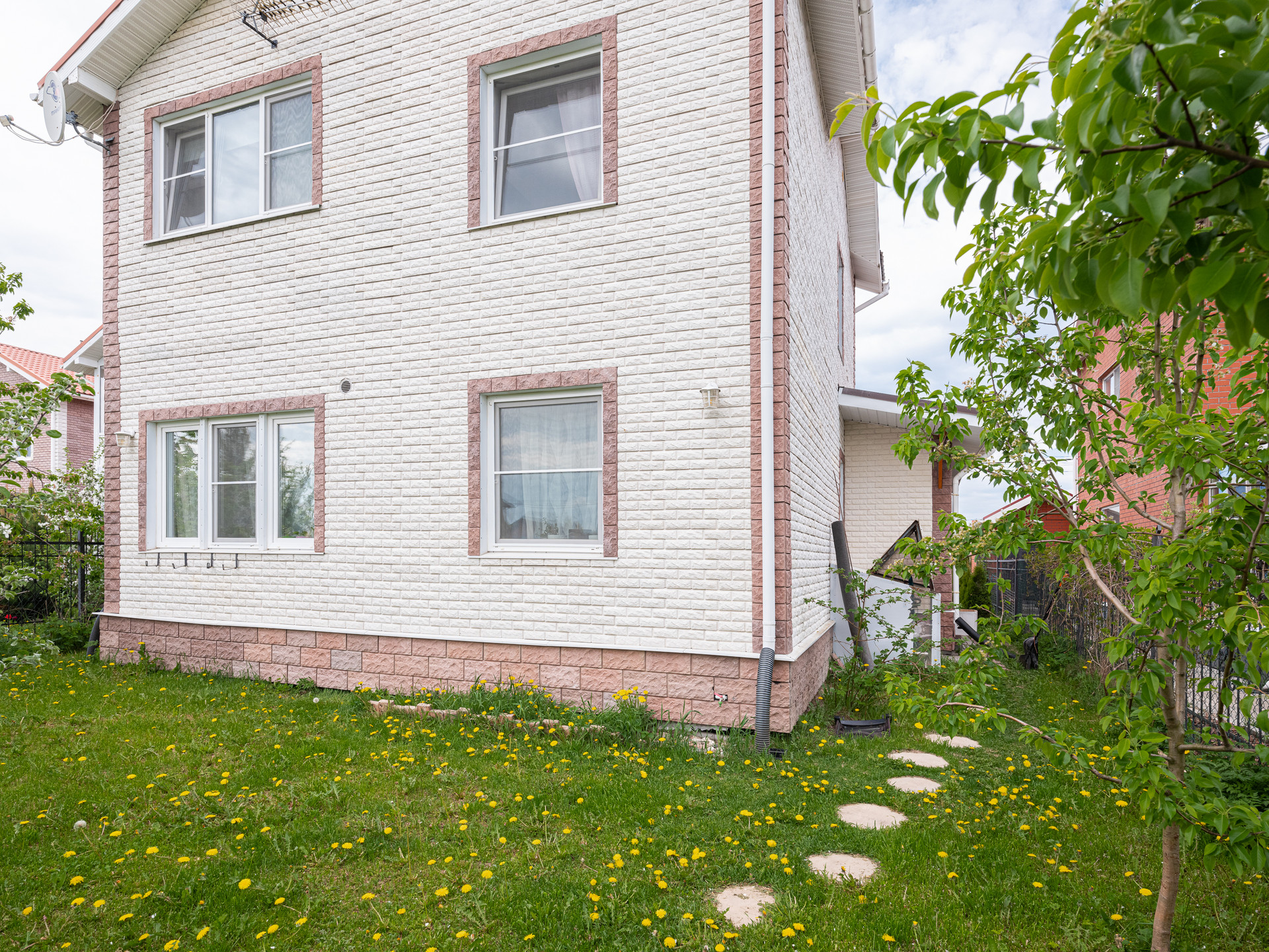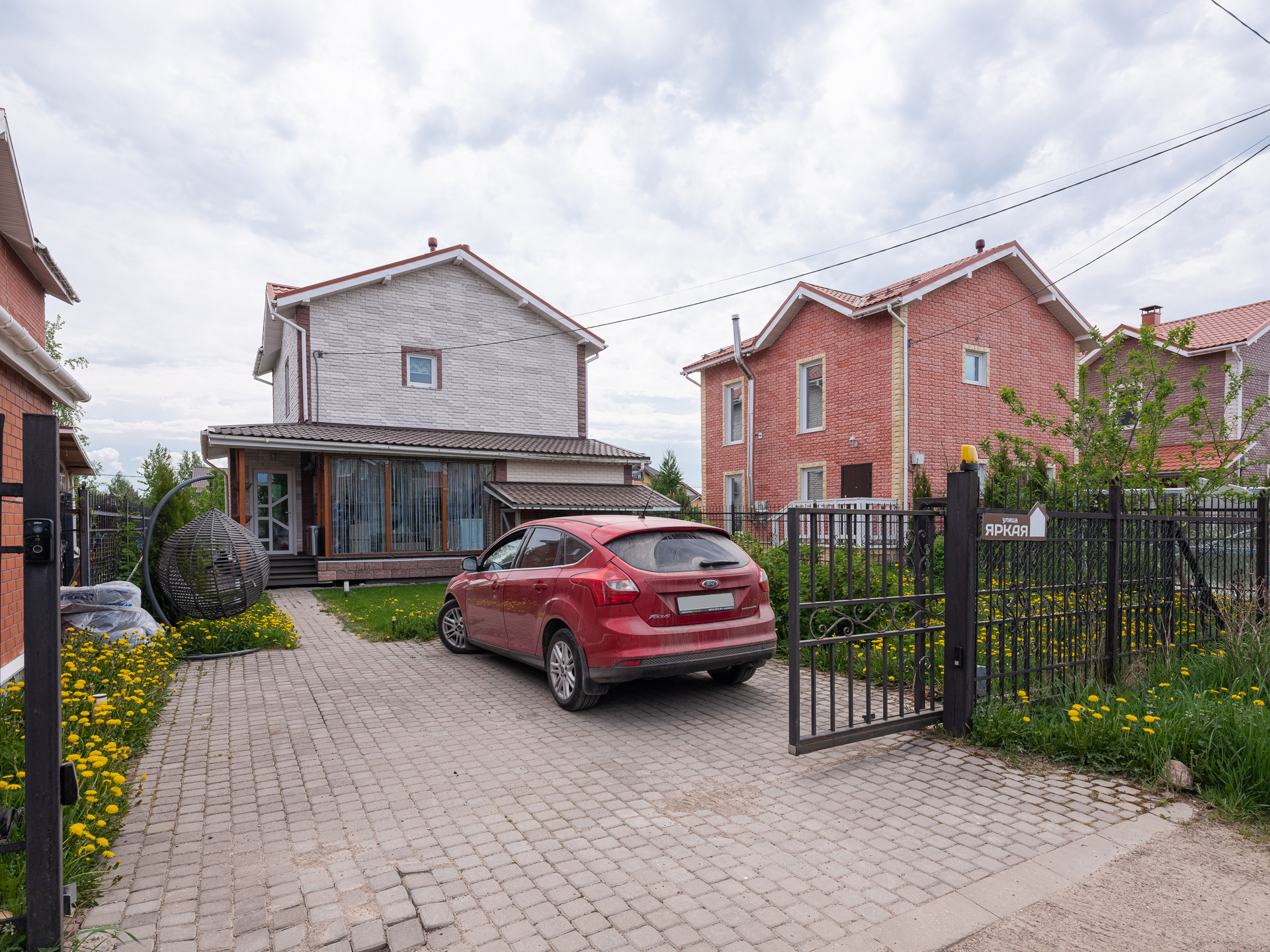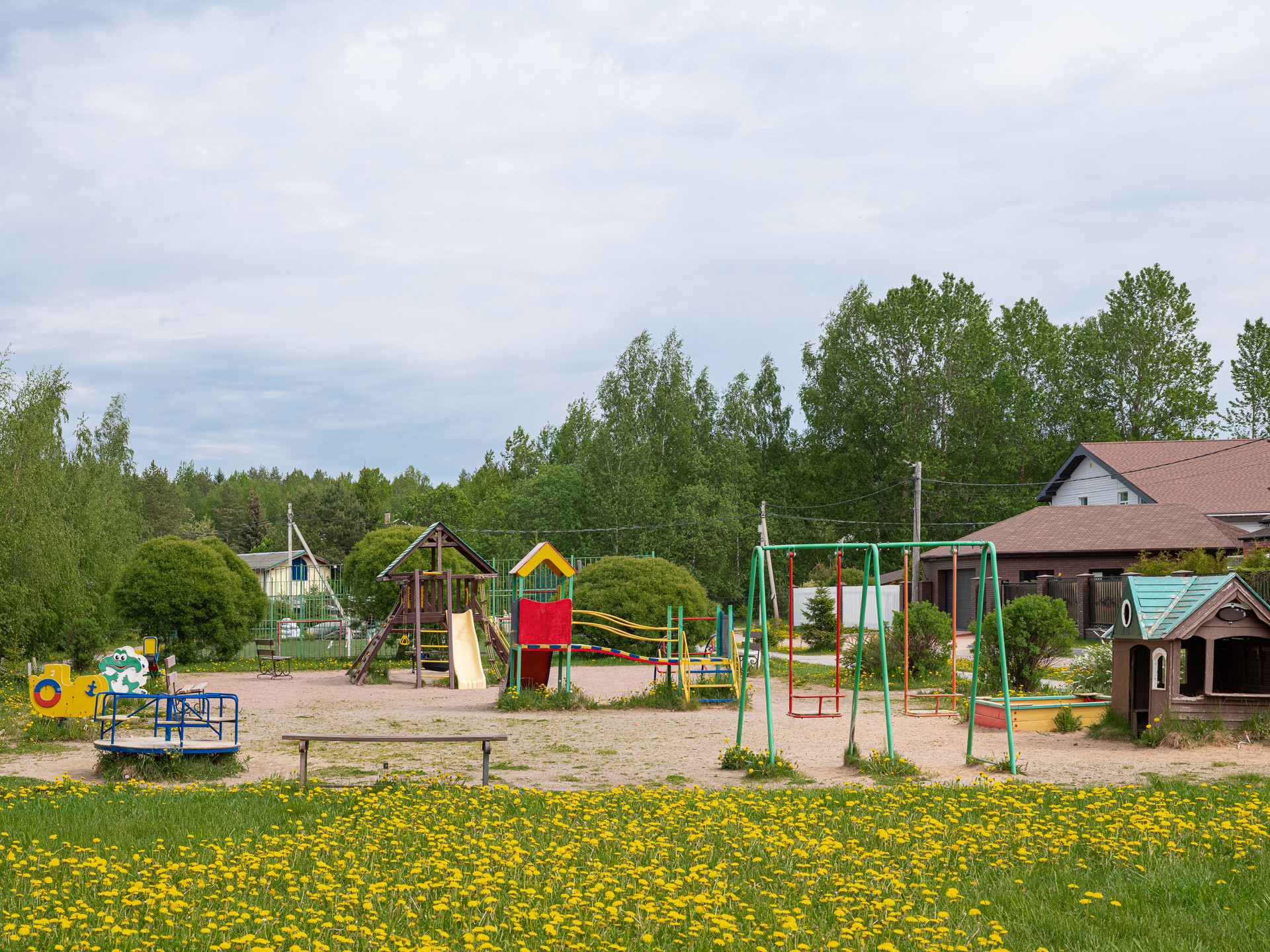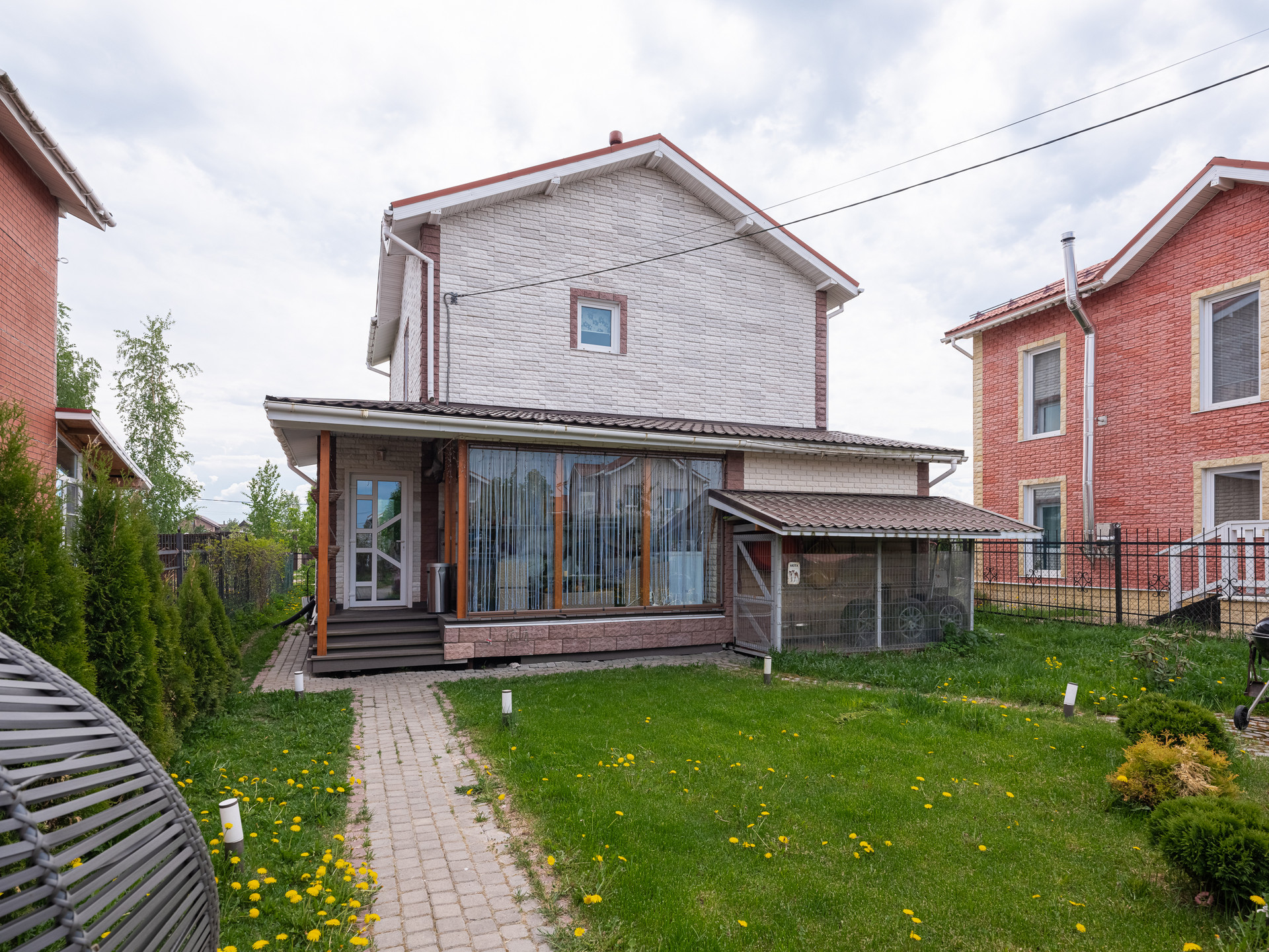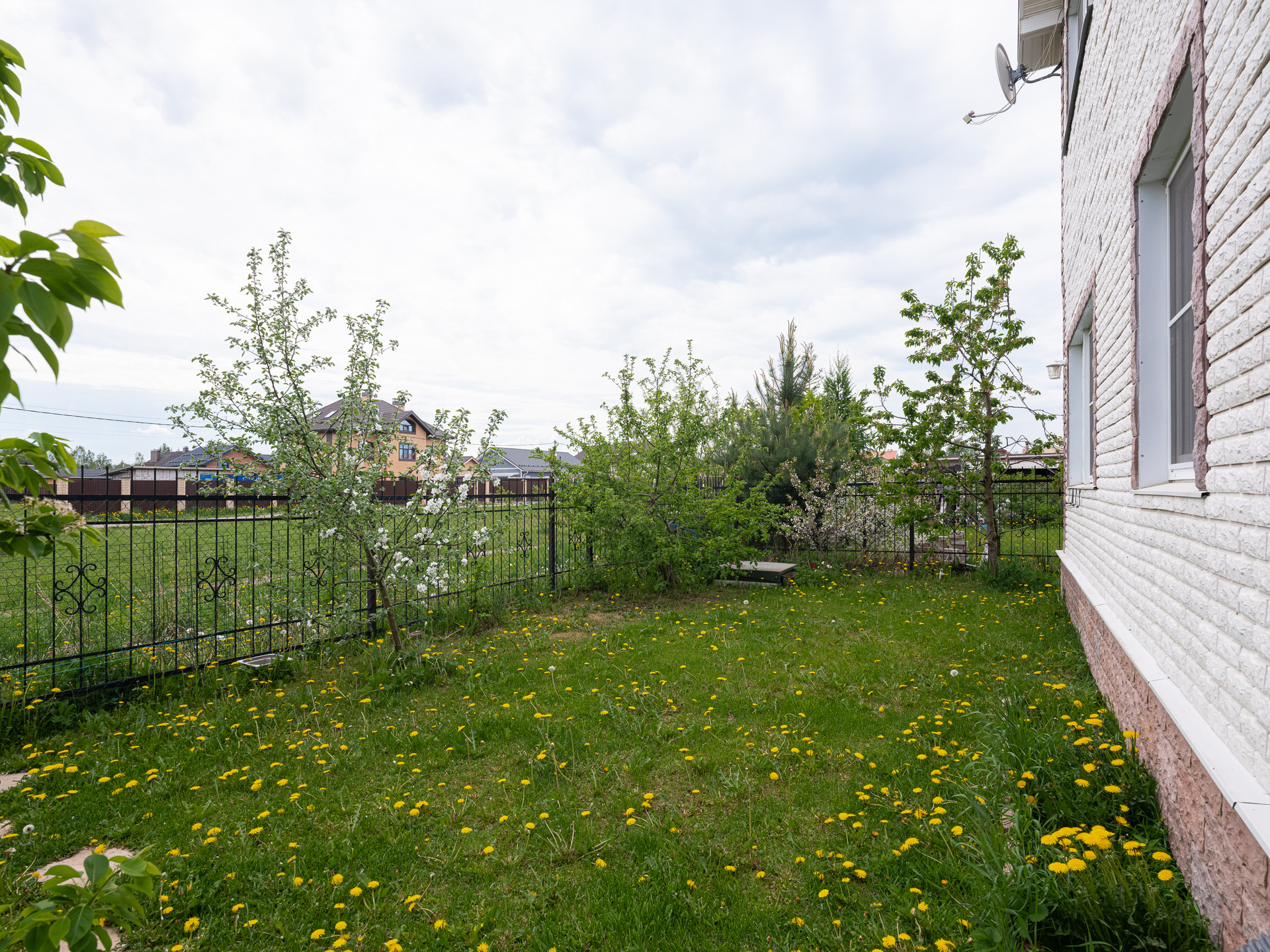 Рядом с домом находится зеленая зона с детской площадкой и спортивной площадкой. Есть выход из участка прям к этой зоне.