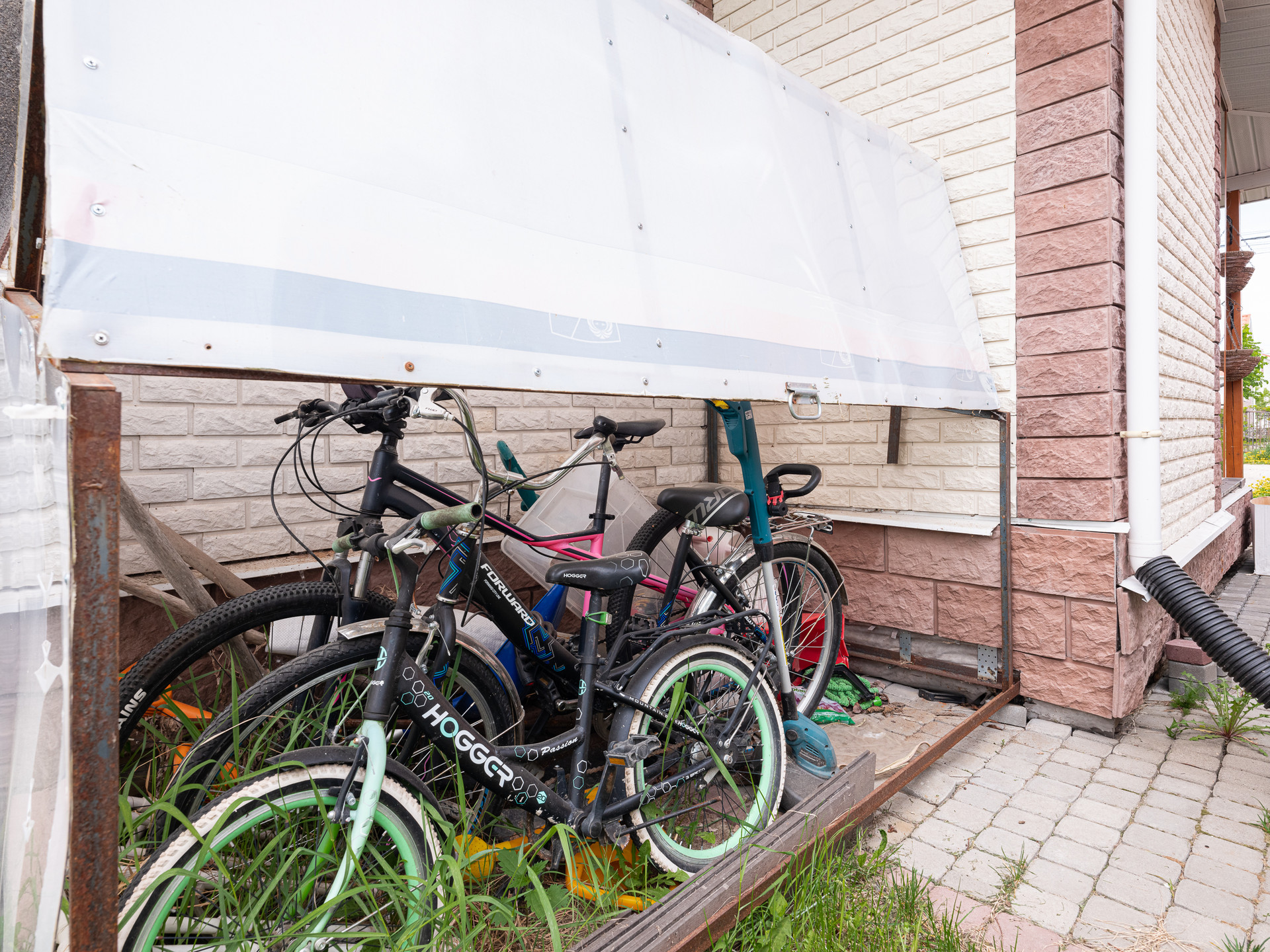 На участке оборудовано место под велосипеды. Есть возможность поставить детский бассейн. Оборудовано место под мангал или гриль барбекю.