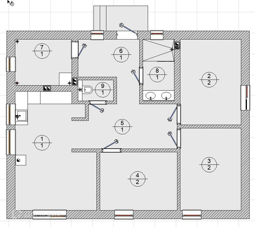 Хорошо продуманная и удобная планировка - просторная кухня-гостинная 19 кв.м, три изолированных спальни, ванная комната 4,5 кв.м, прихожая 6,8 кв.м, туалет 1,7 кв.м, котельная 6 кв.м.