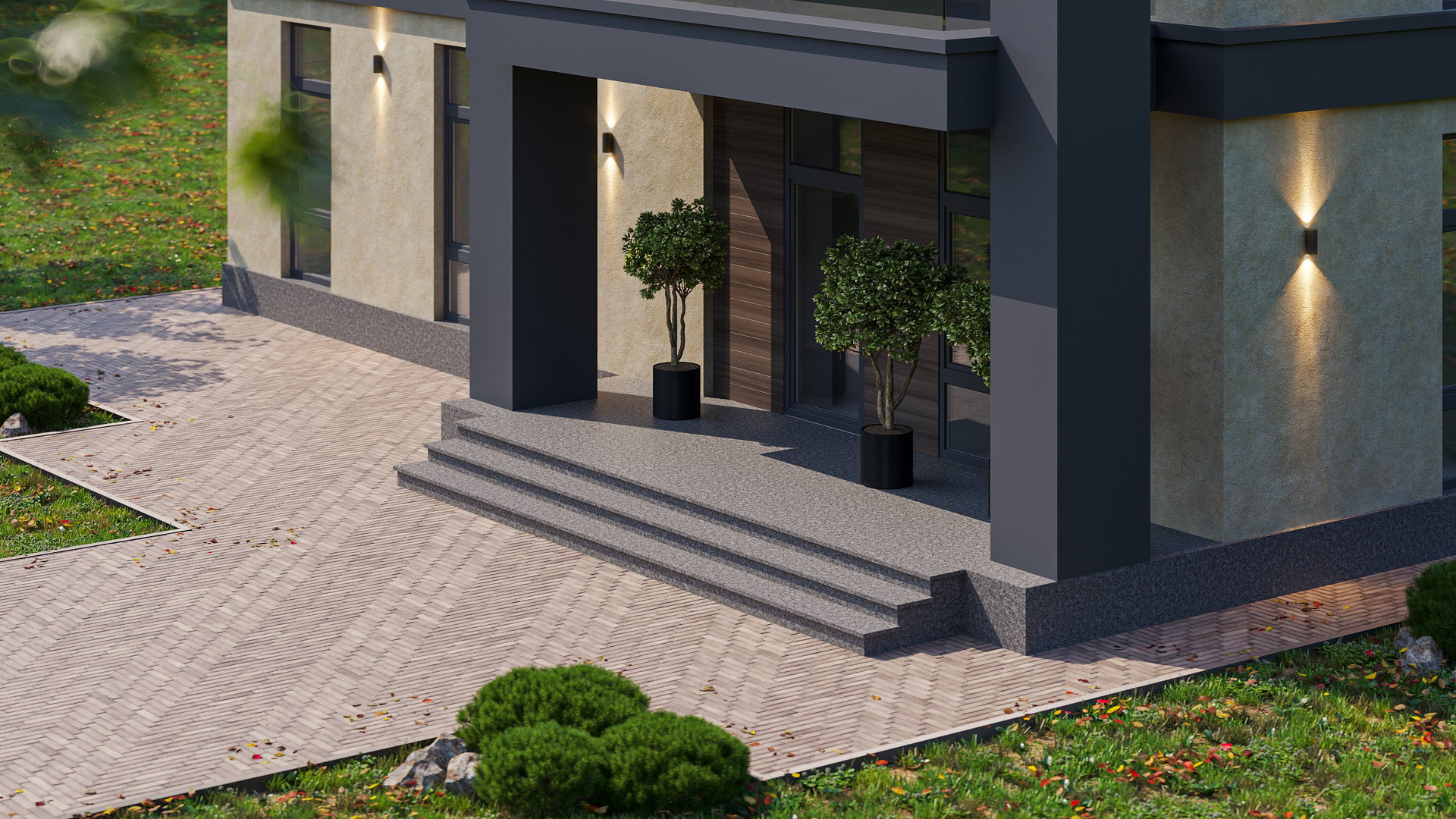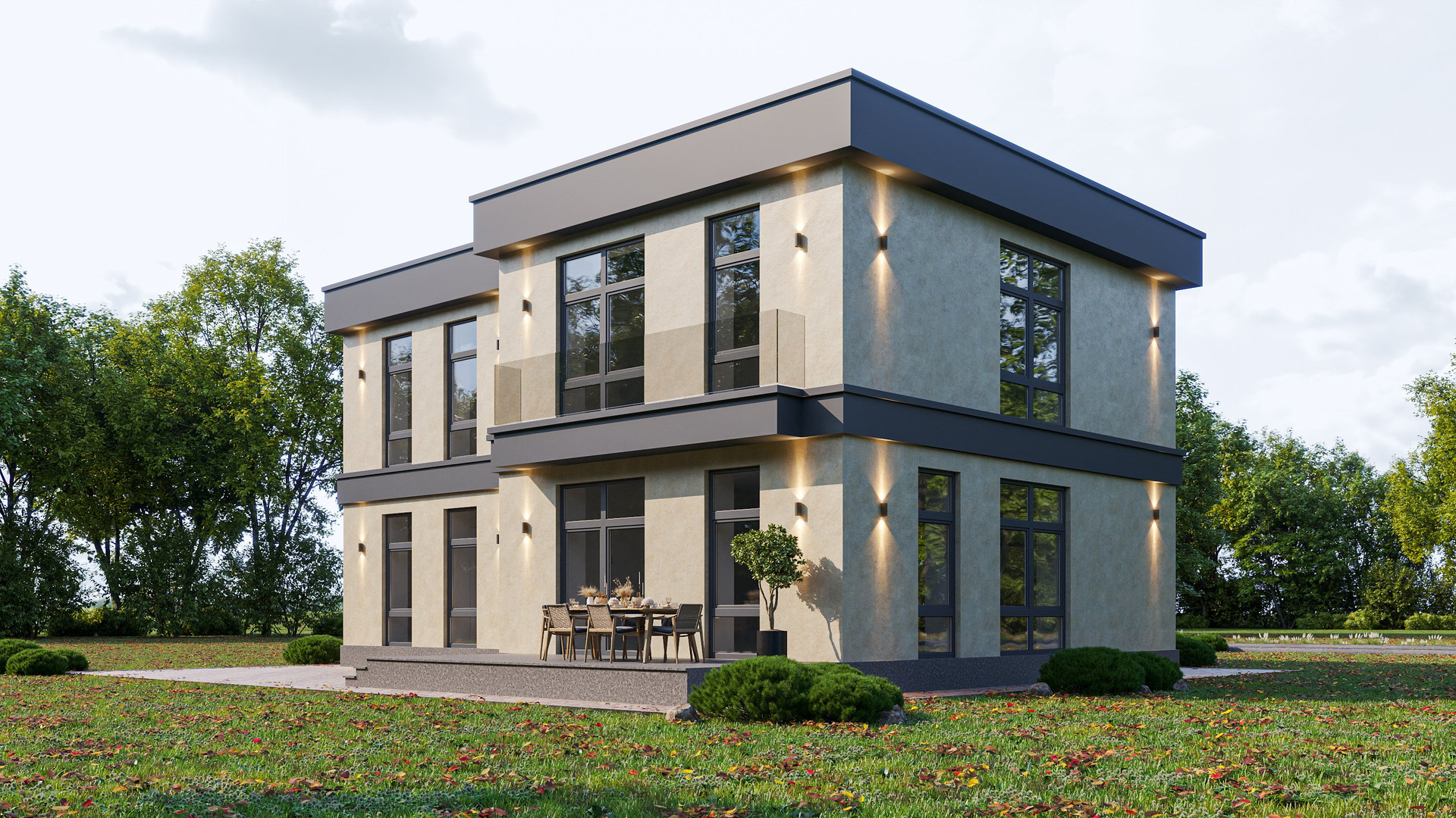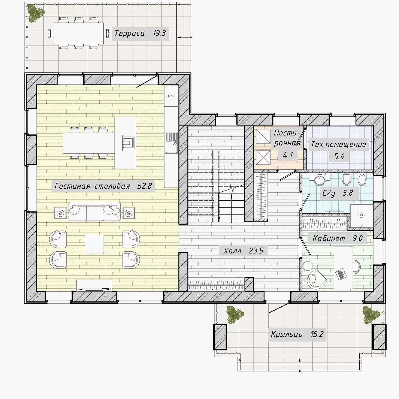 -Наружные стены выполнены из керамических блоков Wienerberger POROTHERM 44 -Фасадная штукатурка, покраска