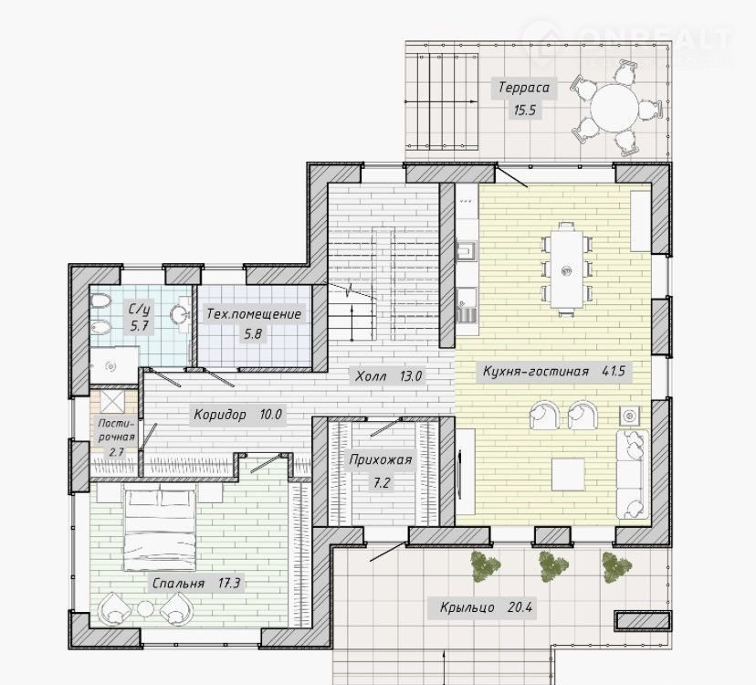 -отделка фасада (натуральный камень и клинкерный кирпич Real Brick);