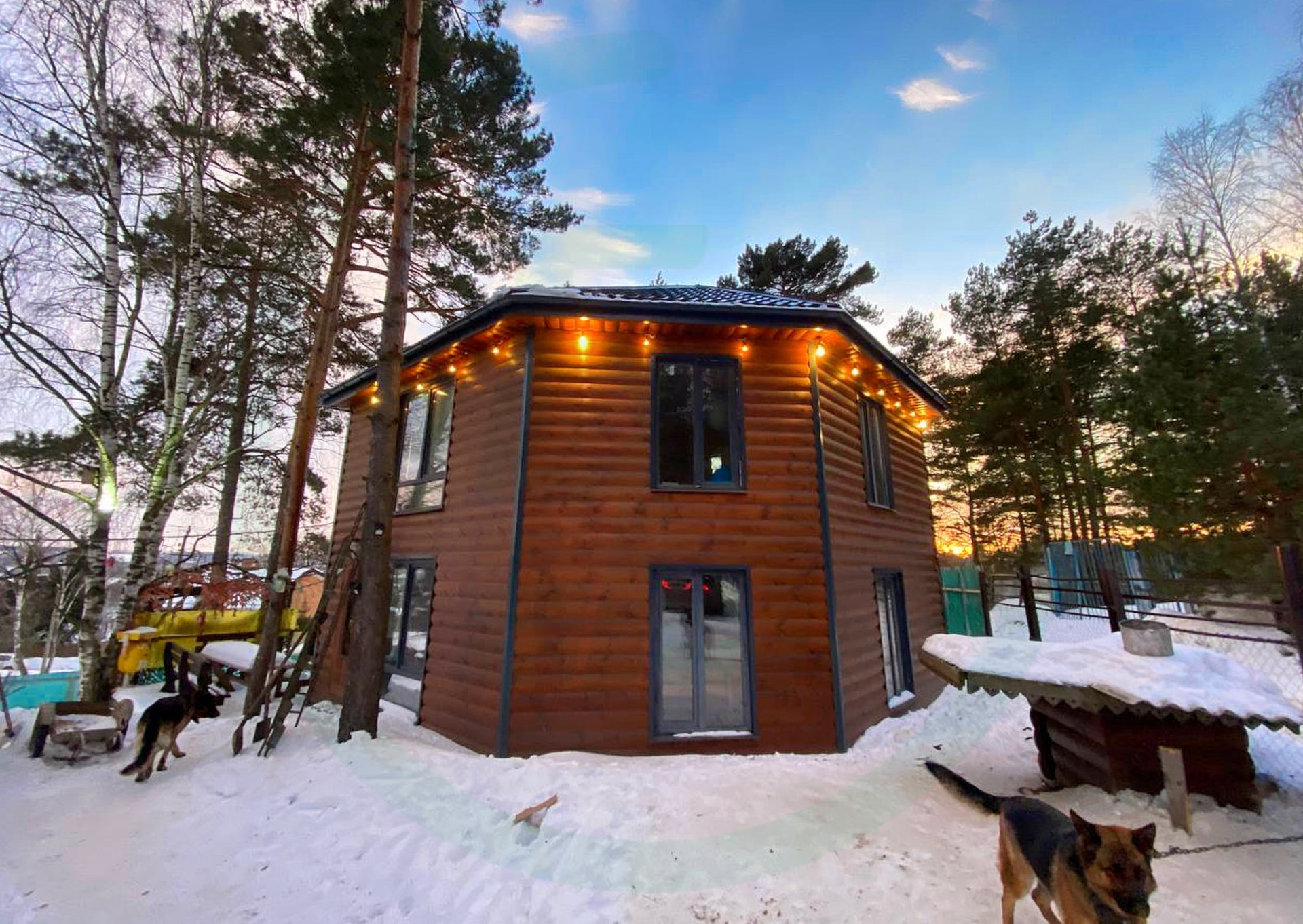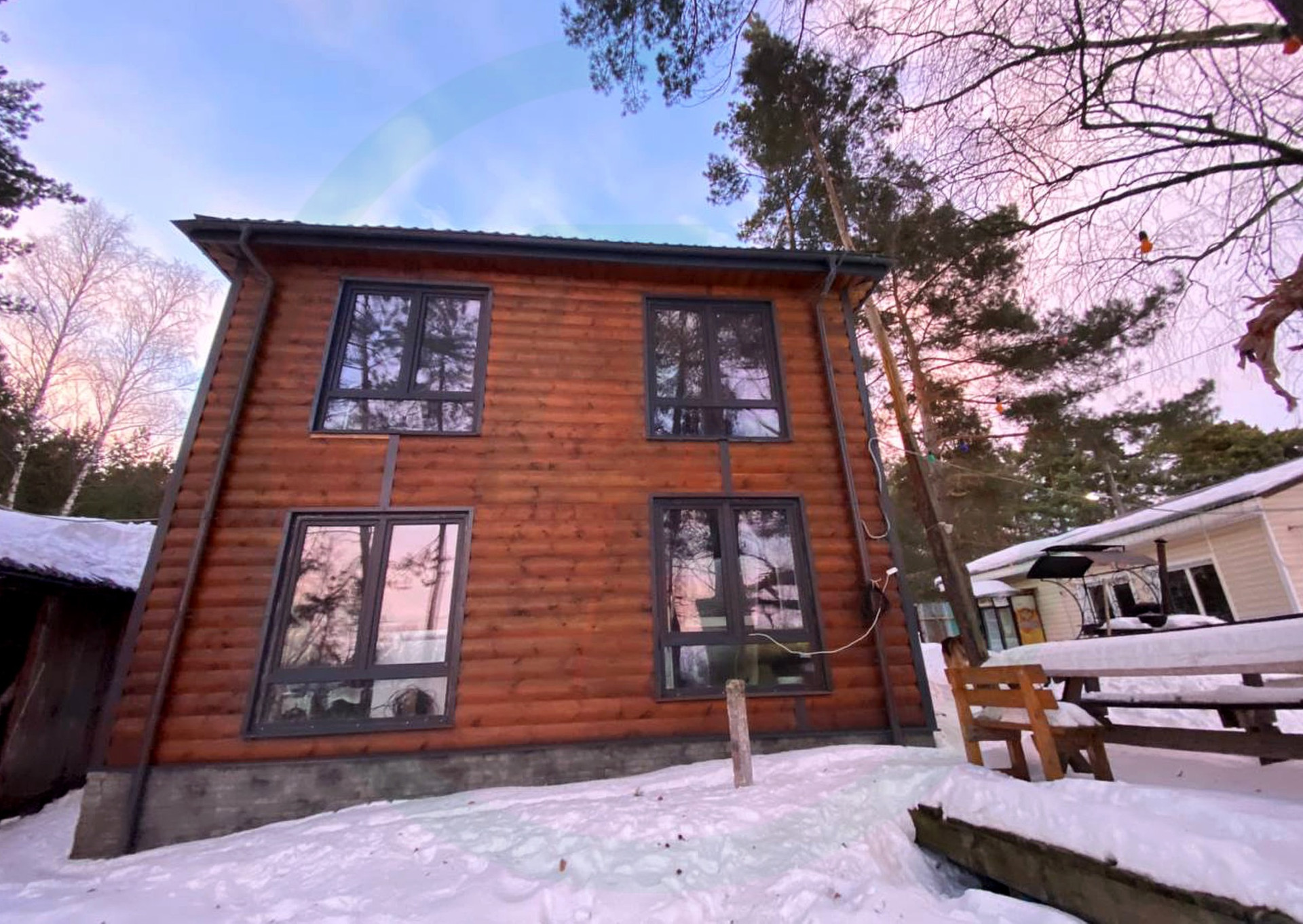 Второй дом состоит из большой гостиной, сауны, сан. узла на первом этаже, холла и двух изолированных комнат на втором этаже.