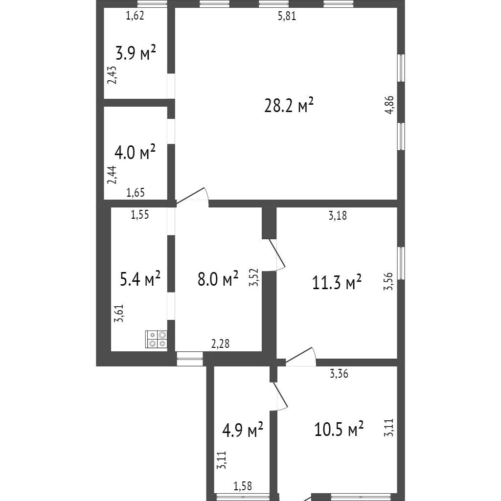 Общая площадь 90.1 м2