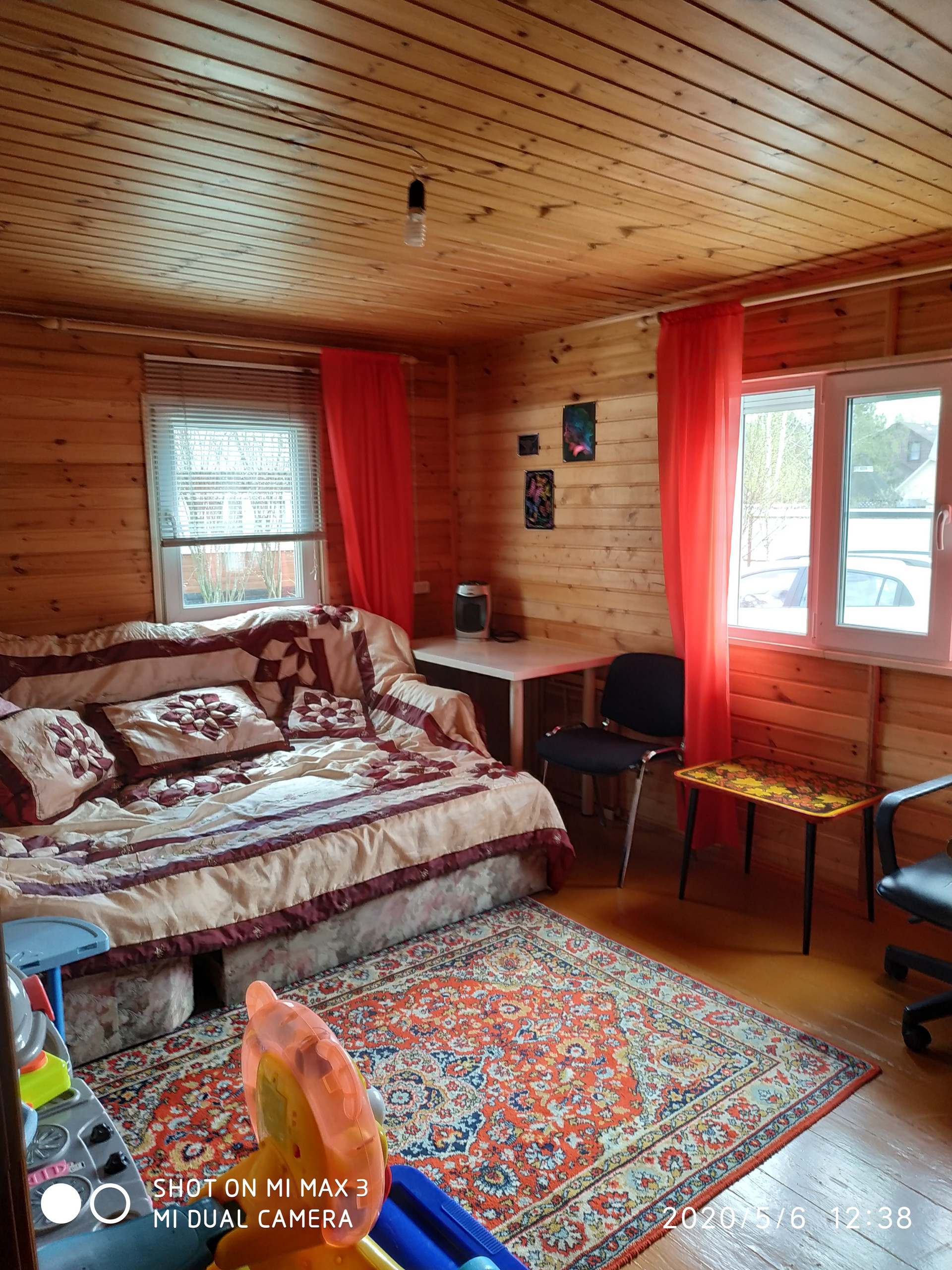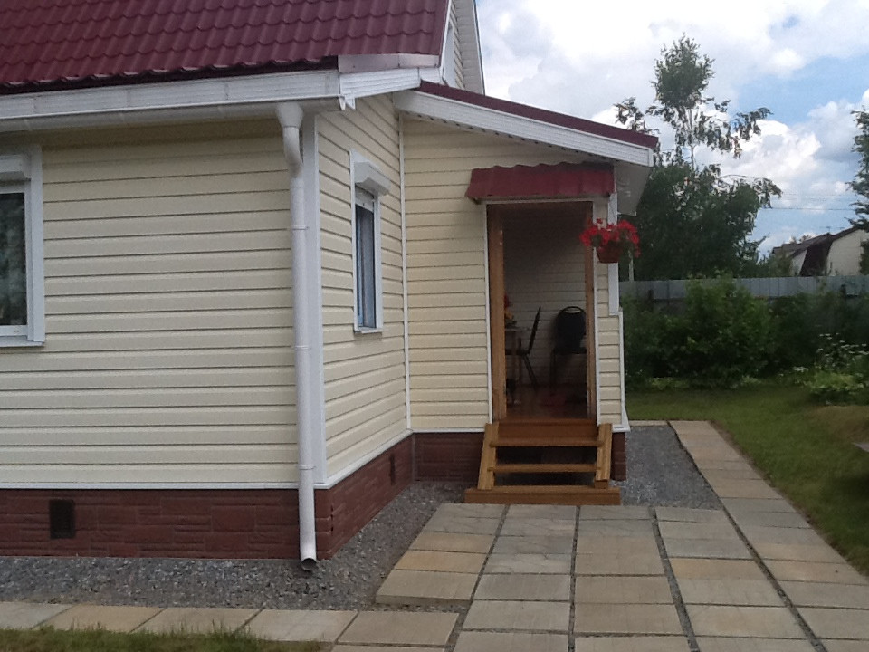 Дом брусовой (180 кв. м), 2 этажа, потолки из обшивочной вагонки, высота потолков 2,7 м, внутренняя отделка – евровагонка, ветро-влагозащитная пленка; наружная – утеплитель, ветро-влагозащитная пленка и сайдинг; окна – 2-хкамерные стеклопакеты ( 1 этаж с рольставнями); полы – шпунтованная доска 40 мм, ламинат, ветро-влагозащитная пленка, утеплитель; крыша – ветро-влагозащитная пленка, металлочерепица; чердак утепленный; фундамент ленточный, бетонный, глубина заложения 0,9 м; цоколь (из пескоцементных блоков) 0,9 м, междуэтажные перекрытия утеплены "изовером".