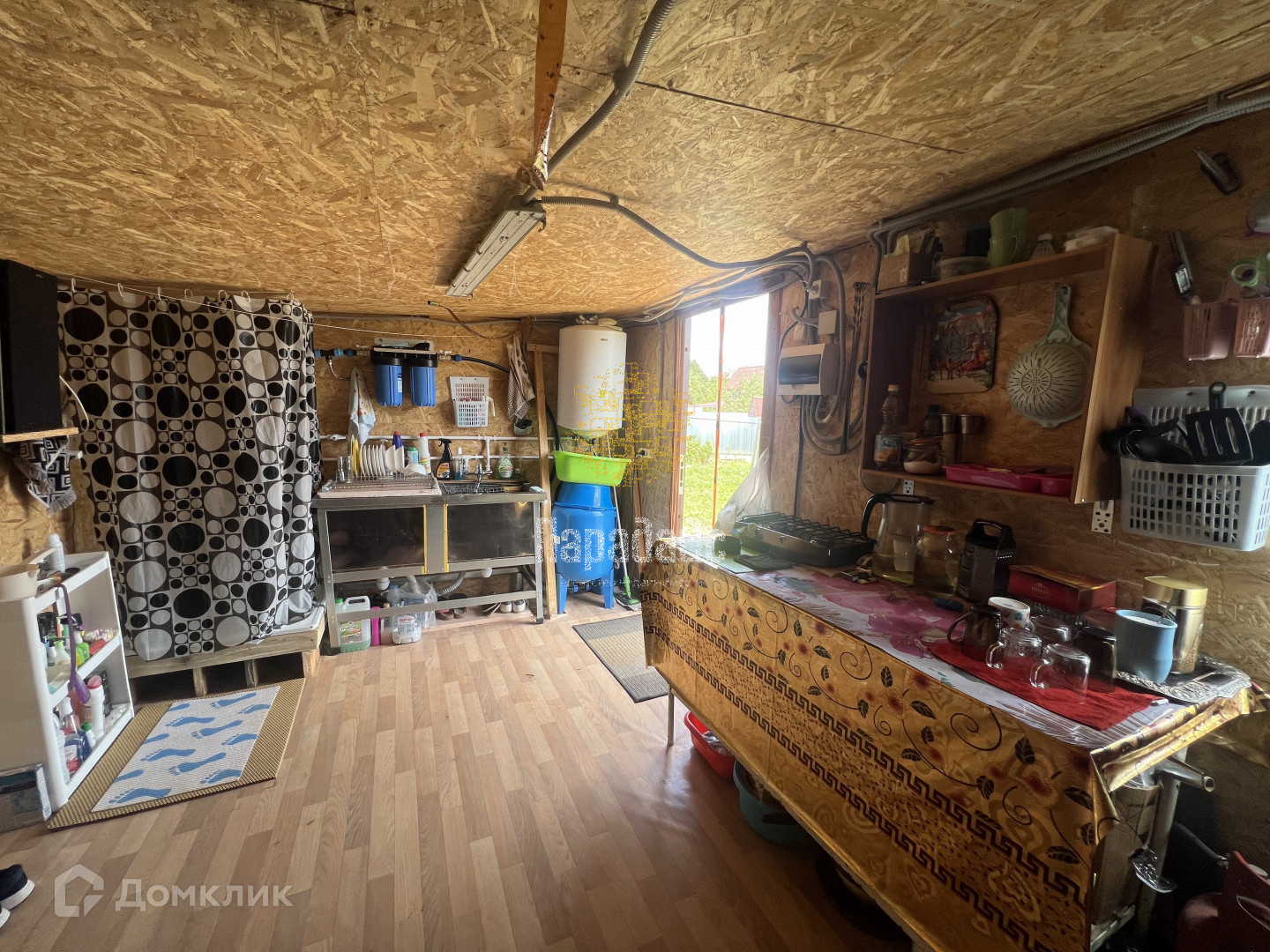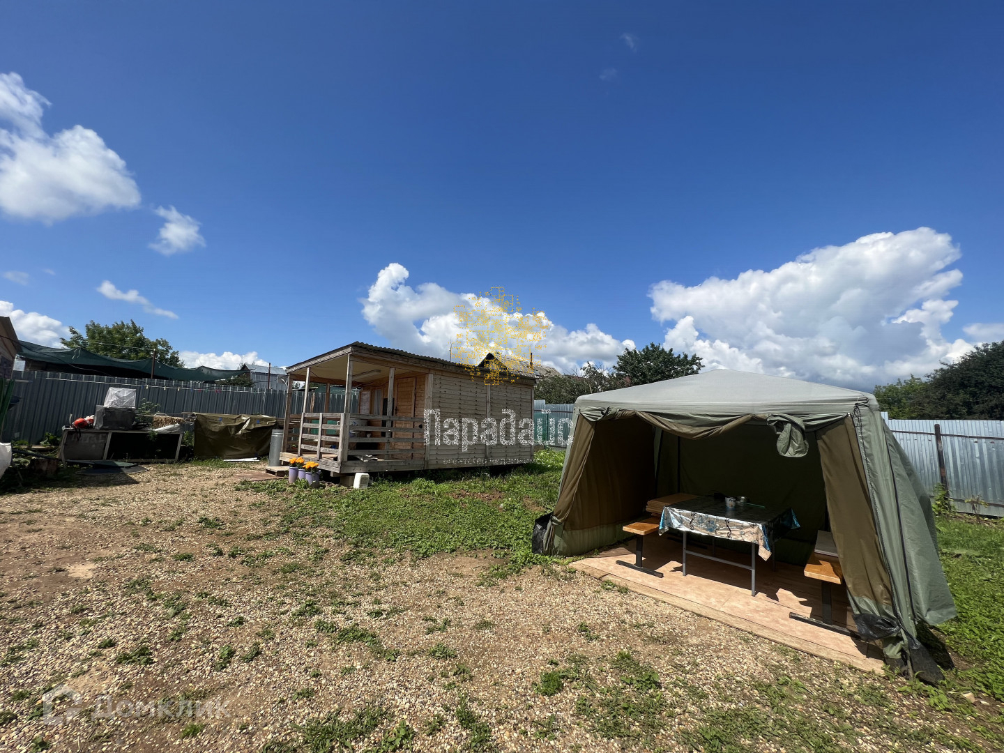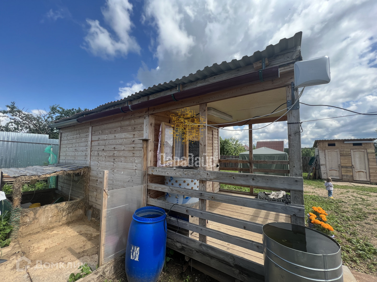 Имеются три хозяйственных постройки, в первой: курятник или хозяйственный блок, во второй: летняя кухня, холодильник, душ, зона отдыха, в третьем домике находятся спальные места для отдыха, так же на улице дополнительно имеется шатер и туалет с душем.