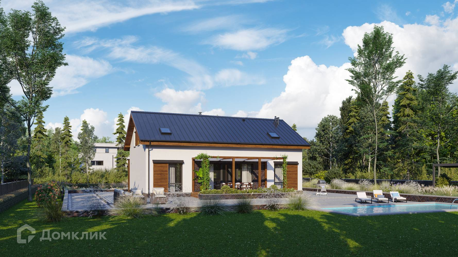 Строящийся кирпичный коттедж, площадью 211 м² на участке с лесными деревьями в коттеджном поселке Пятница CLUB.  Коттеджи сдаются с подключенными коммуникациями. Ипотека от 2,5% годовых. Первоначальный взнос от 20%.