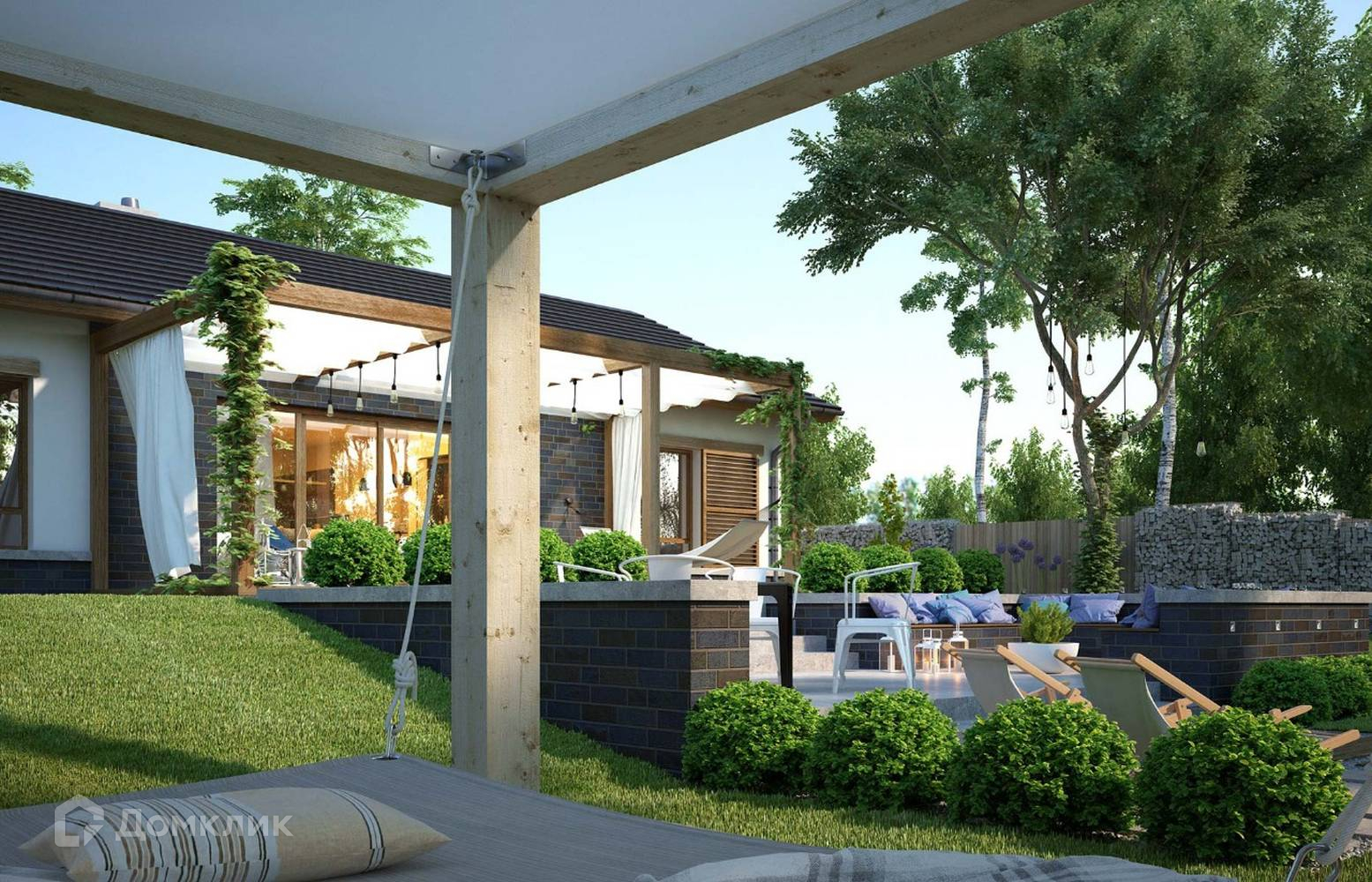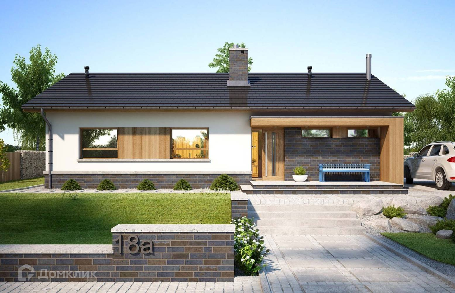 Одноэтажный строящийся кирпичный коттедж, площадью 133 м² на участке с лесными деревьями в коттеджном поселке Пятница CLUB.  Коттеджи сдаются с подключенными коммуникациями. Ипотека от 2,5% годовых. Первоначальный взнос от 20%.